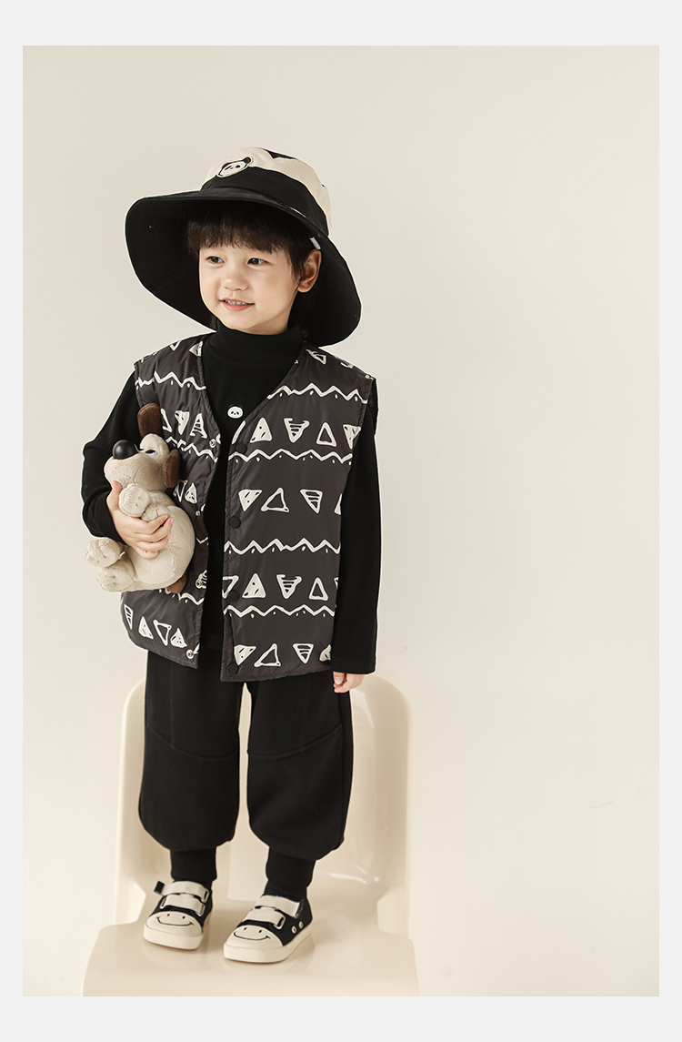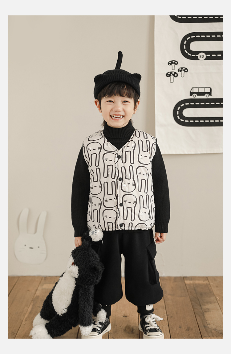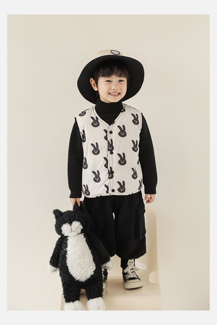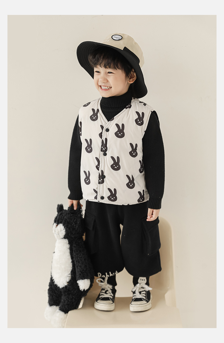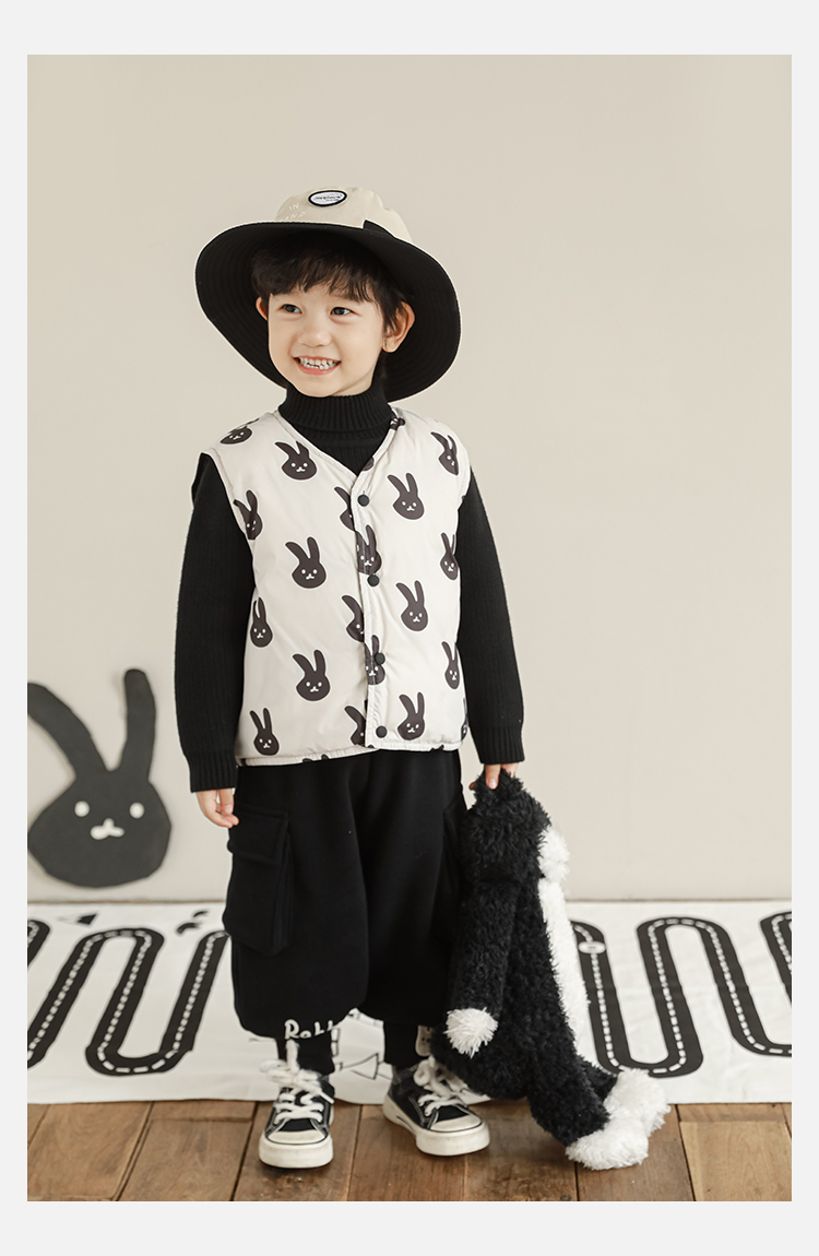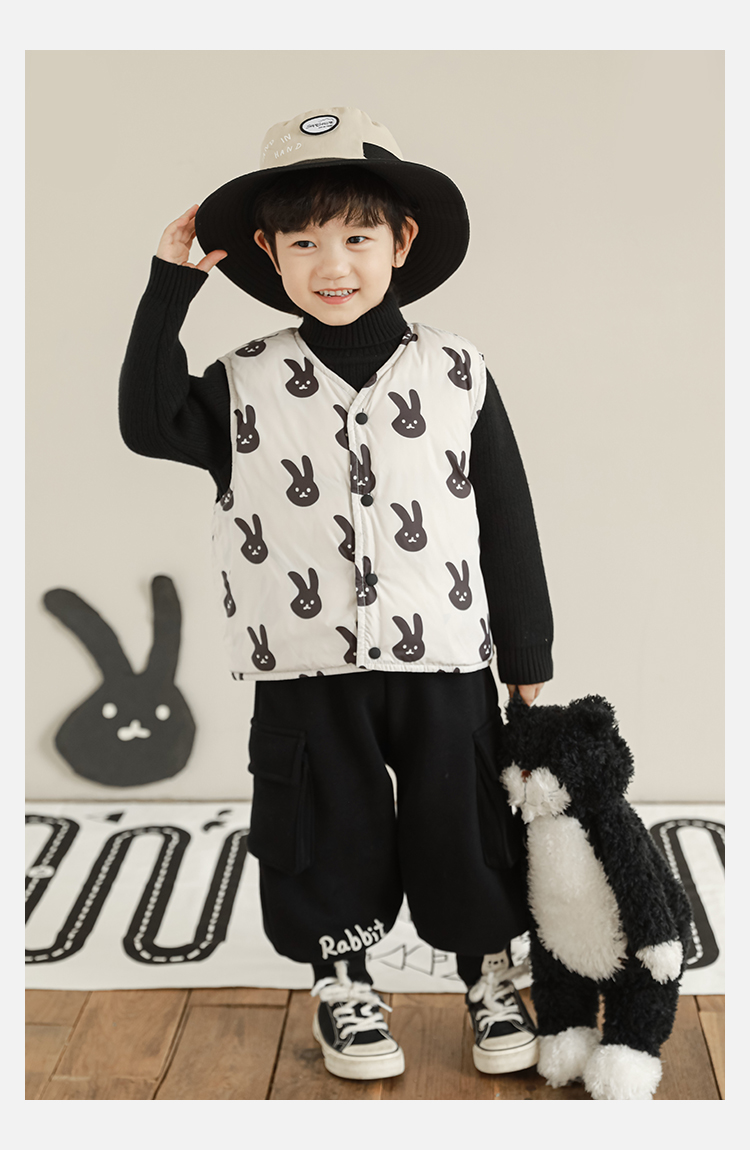 Wulibuyi 소년 2025 새로운 만화 낙서 양면 조끼 겨울 어린이 귀여운 따뜻한 조끼 재킷