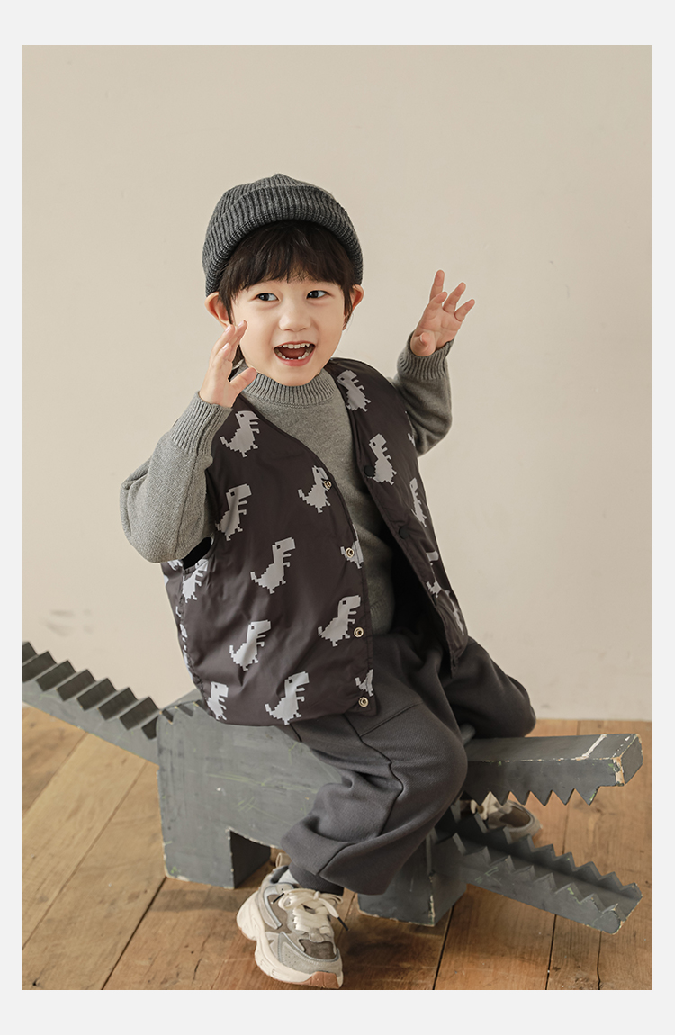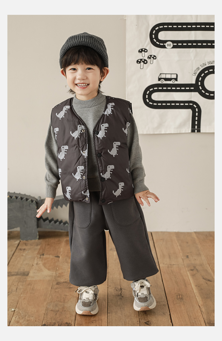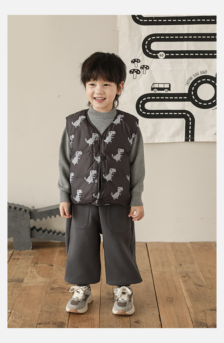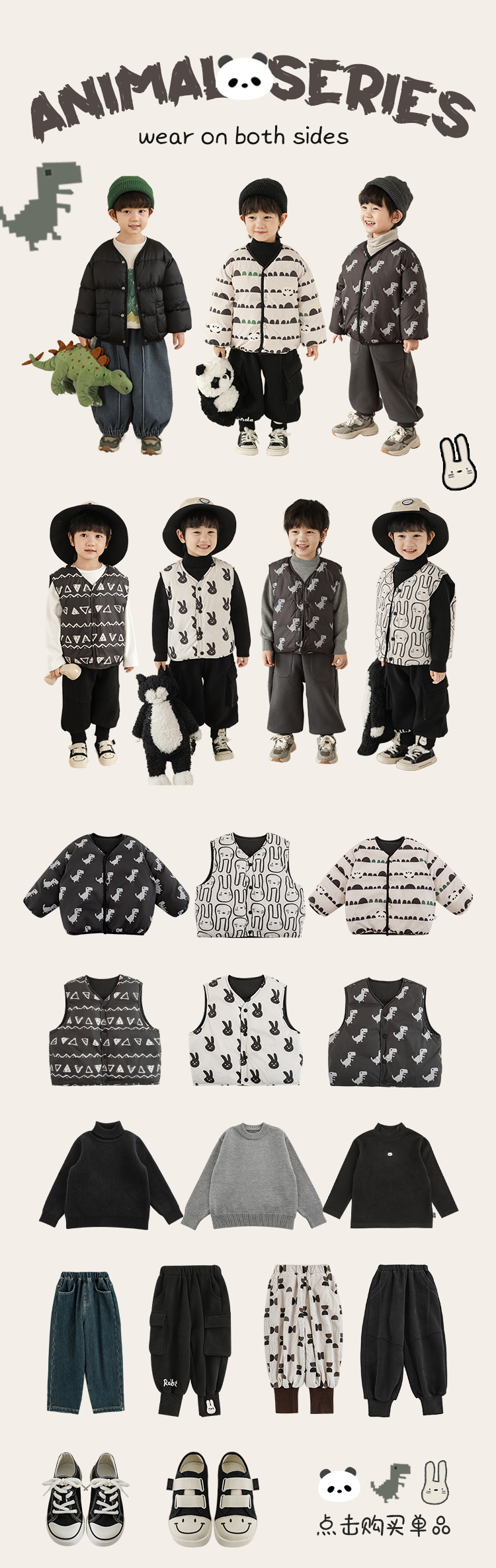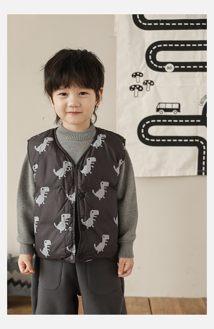 Wulibuyi 소년 2025 새로운 만화 낙서 양면 조끼 겨울 어린이 귀여운 따뜻한 조끼 재킷스토어 가기