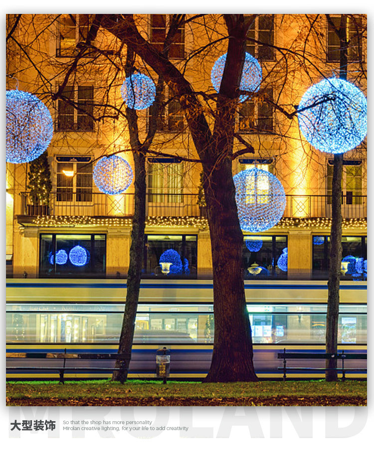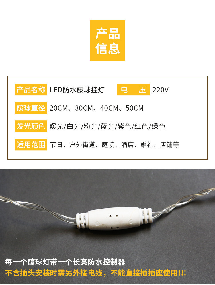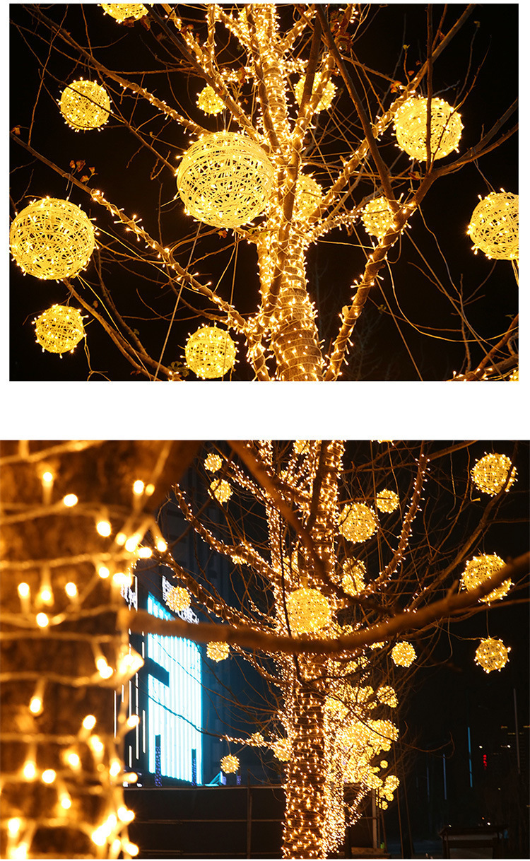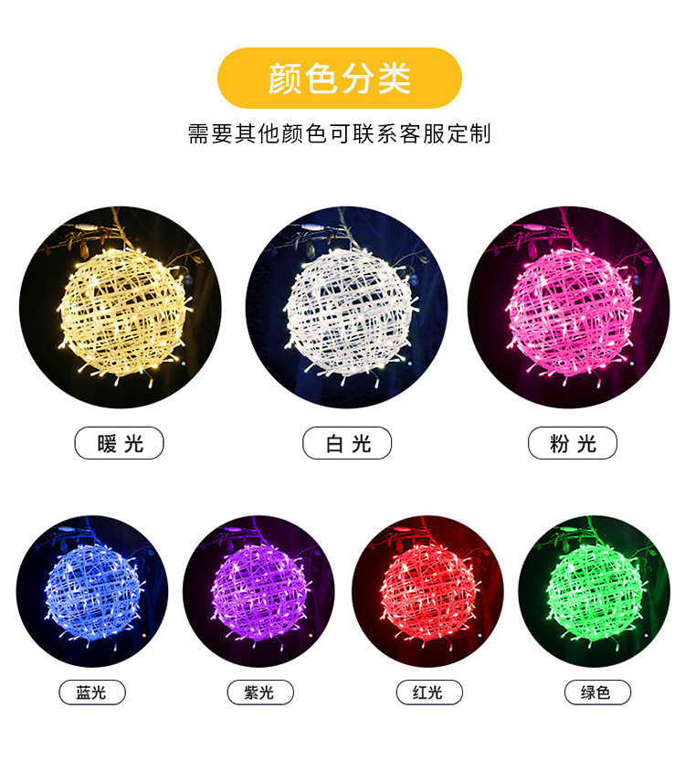 LED 등나무 공 조명, 야외 방수 휴일용 원형 공형 조명, 거리 공사 조명 장식 조명, 컬러 조명, 태양광 조명