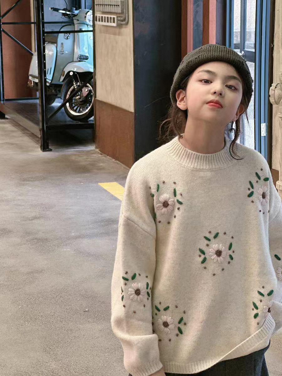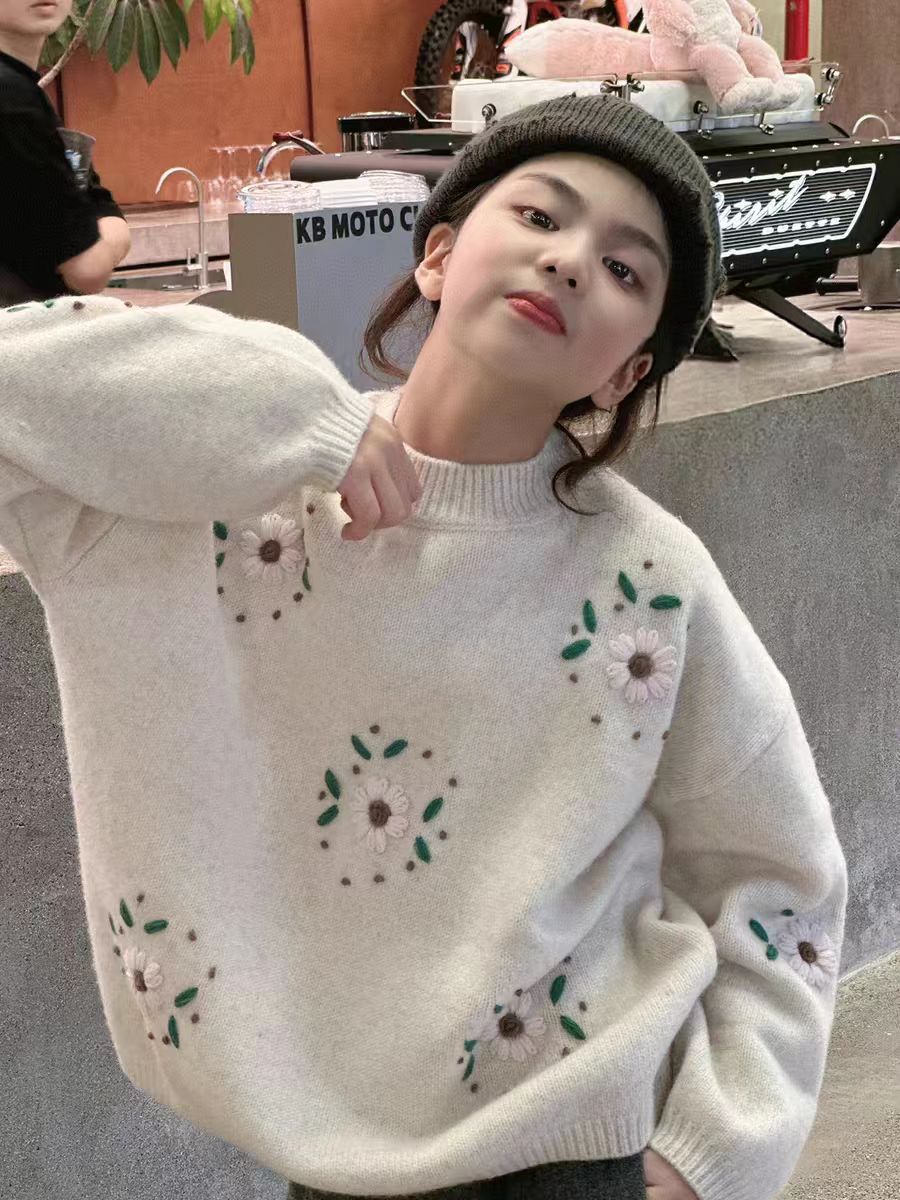 아동복 걸스 봄과 가을 스웨터 어린이 니트 베이스 셔츠 2024 가을 새 소녀의 세련된 패션 탑스토어 가기