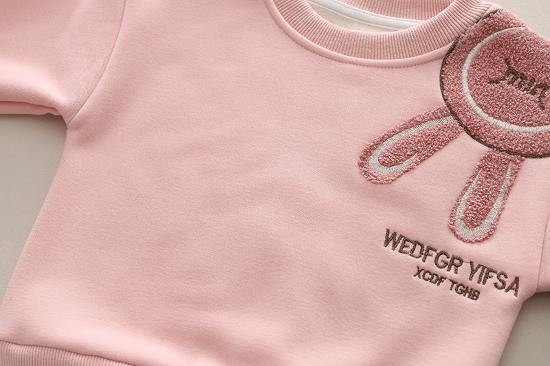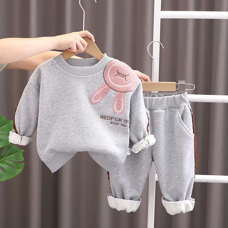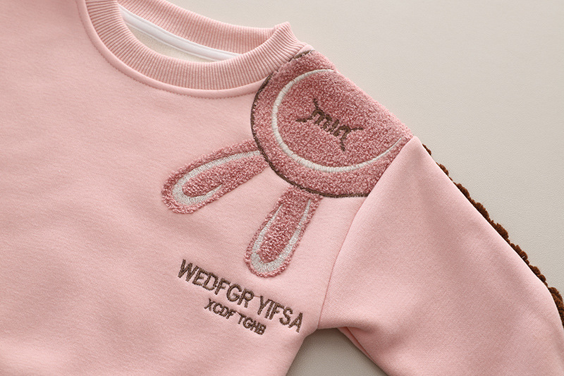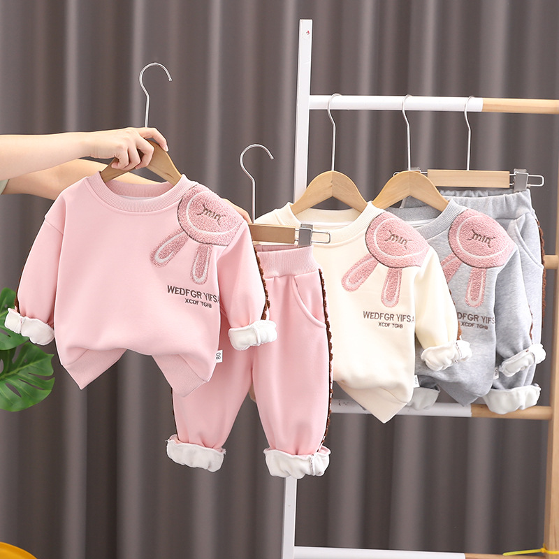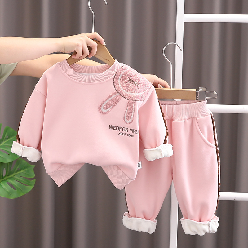 가을과 겨울 새로운 2024 한국 아동복 기모 토끼 투피스 가을 긴소매 소녀 어린이 세트