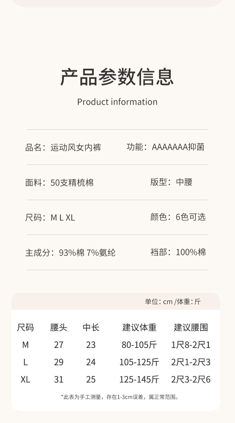가을과 겨울 새로운 스포츠 스타일 여성의 순수 코튼 속옷 중간 허리 트레이드리스 편안한 7A 항균 크로치 백 힙합 브리프