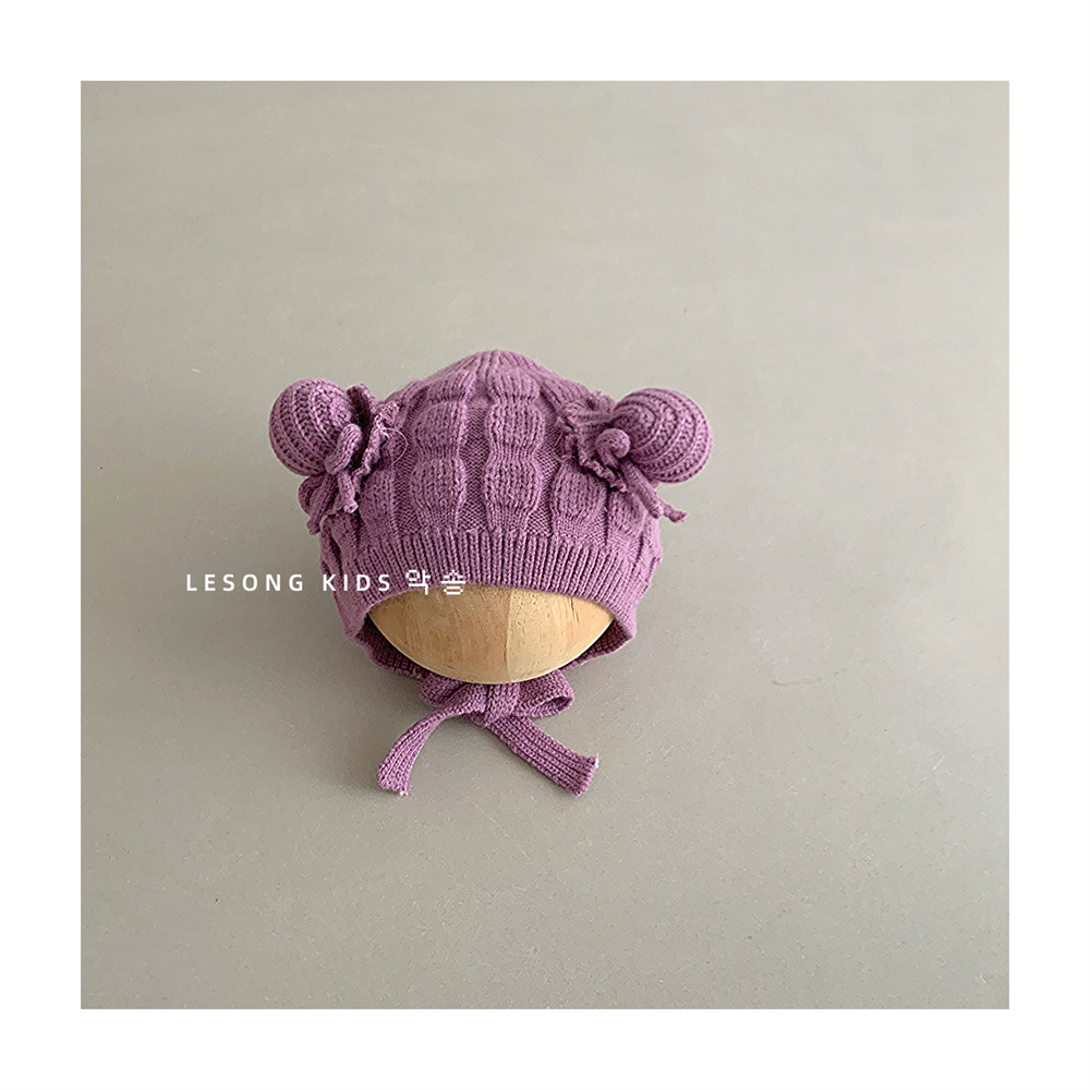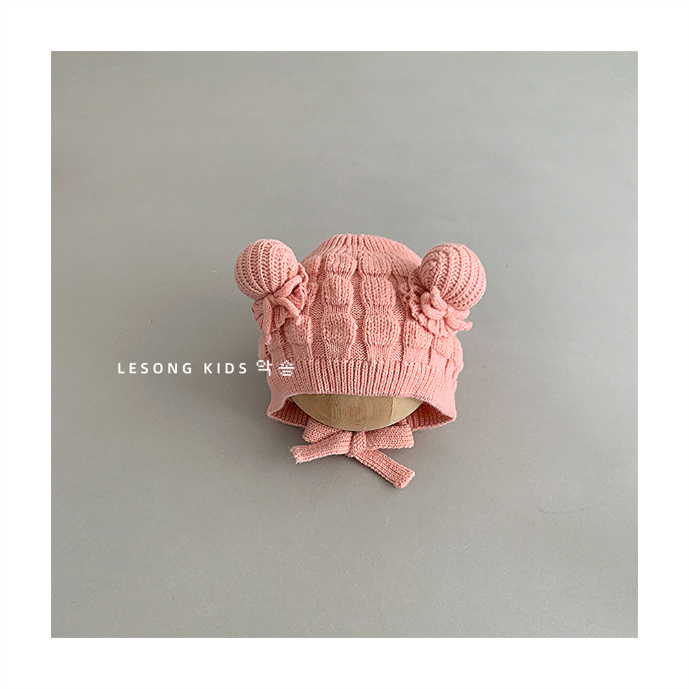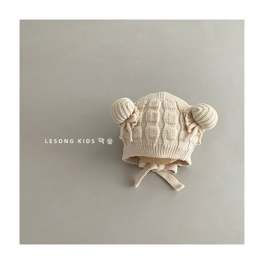 아기 가을과 겨울의 울 모자 귀여운 미트볼 네 모자 따뜻한 두꺼운 니트 모자 귀 보호 모자 소년 소녀스토어 가기