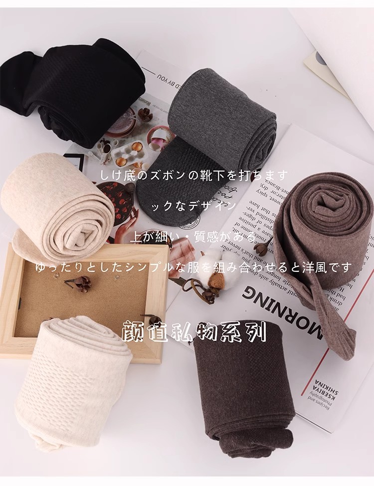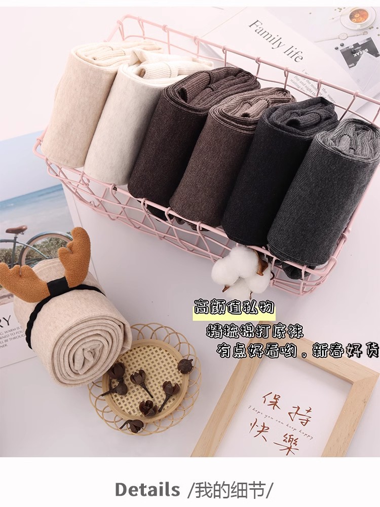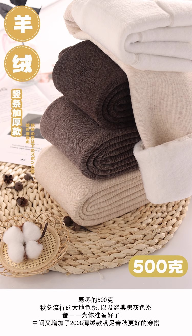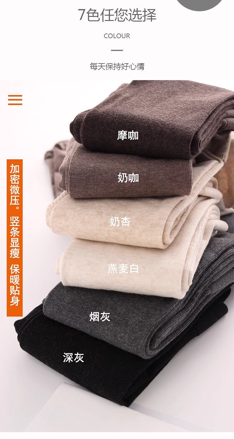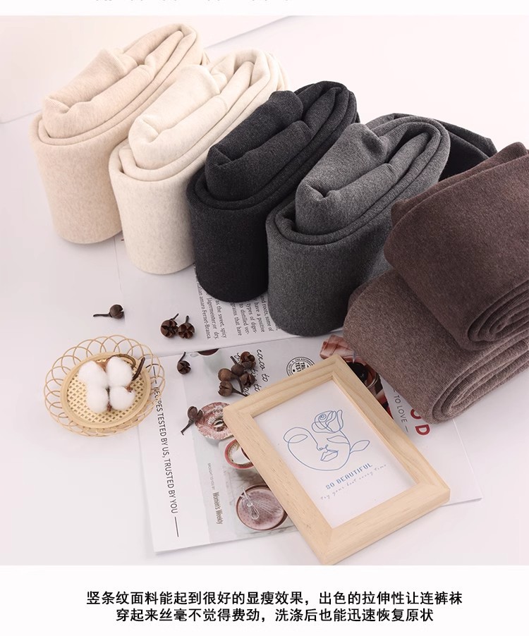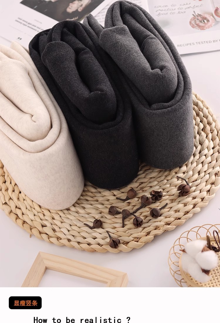 가을과 겨울 기모 두꺼운 레깅스 여성의 높은 허리 일본 스타일 수직 스트라이프 라이트 베이지 팬티 스타킹 따뜻한 코튼 팬츠 자른스토어 가기