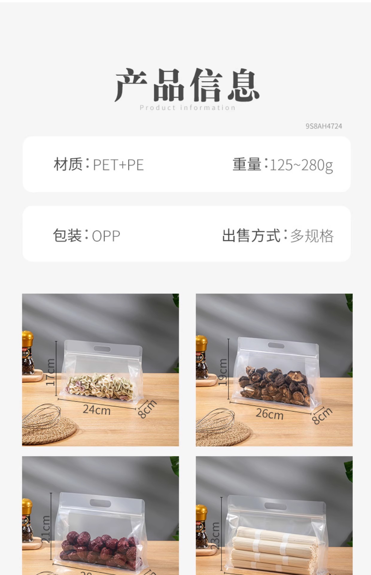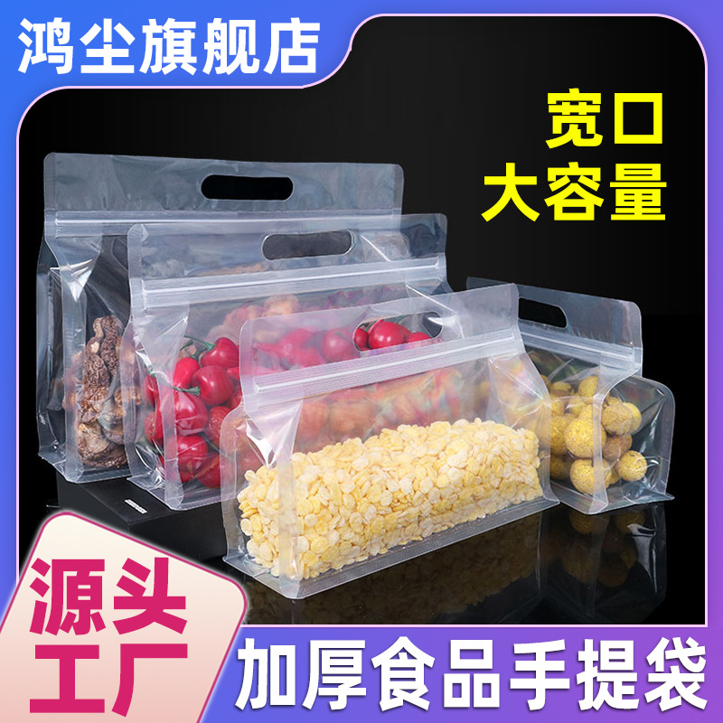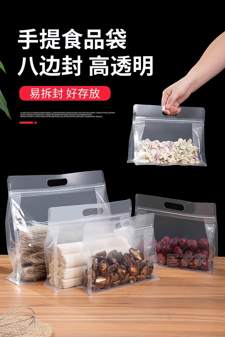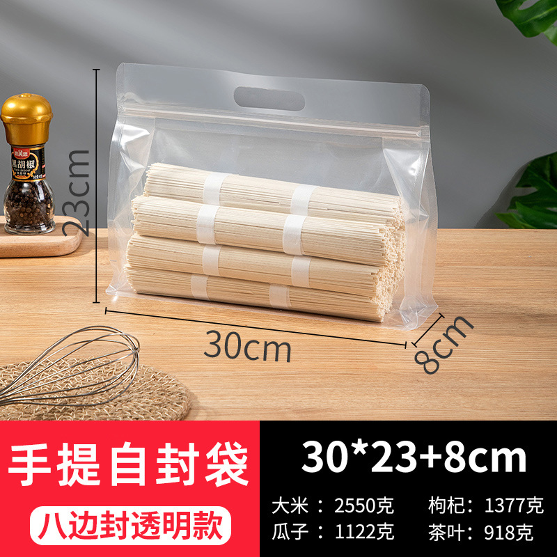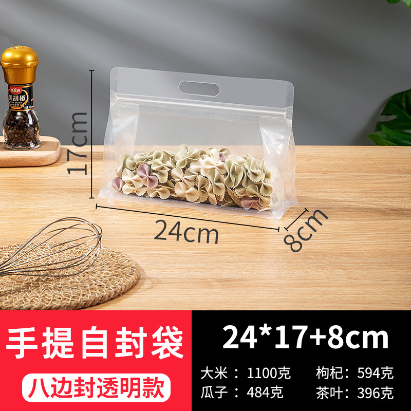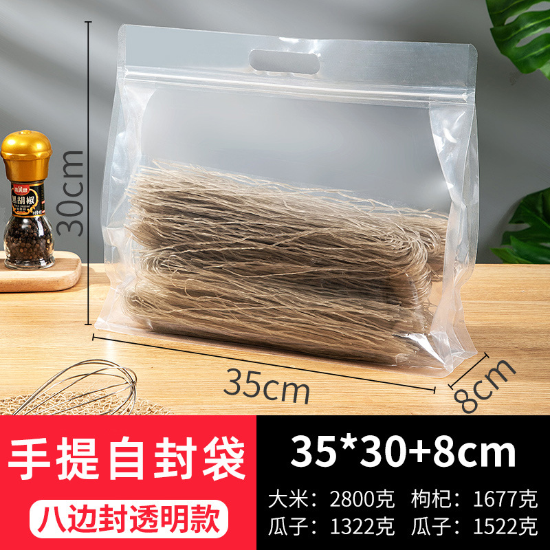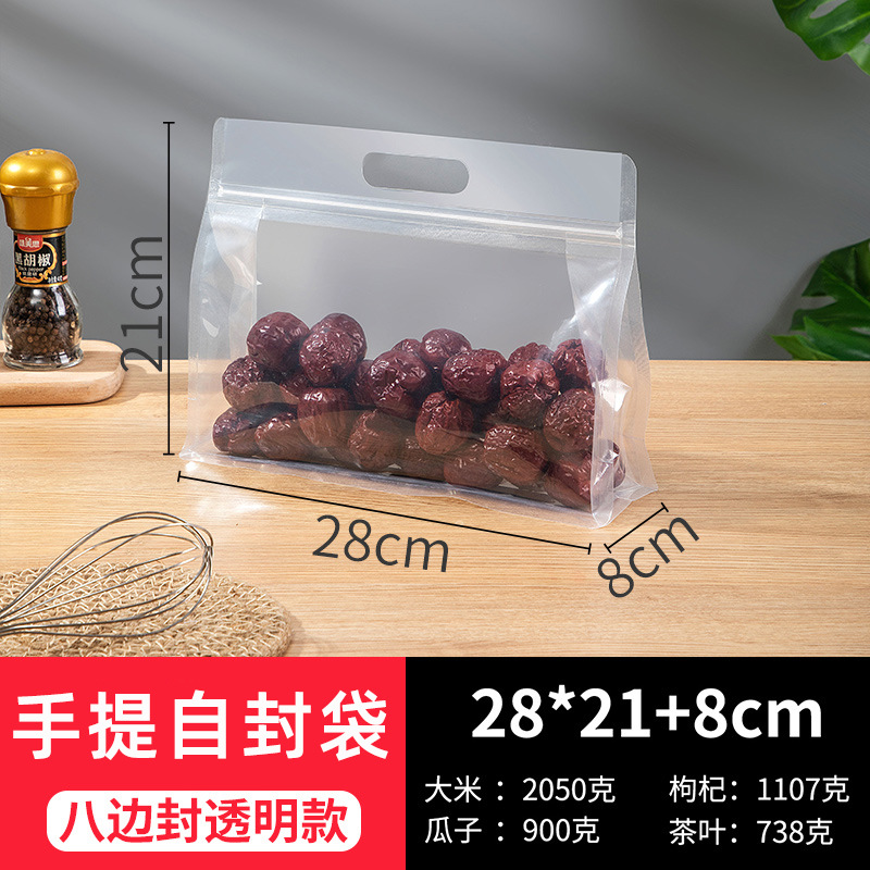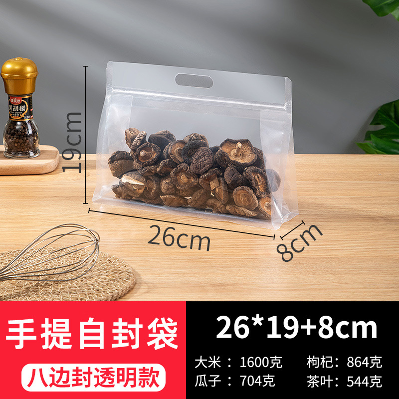 [두꺼운 식품 자체 밀봉 봉인 가방] 투명한 휴대용 자립 가방 간식 거친 곡물 8 면 밀봉 포장 가방