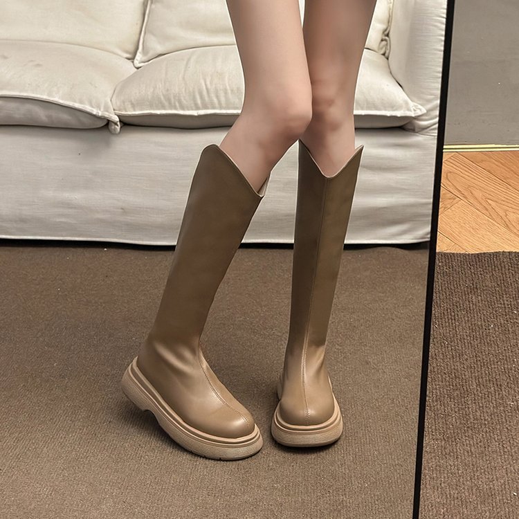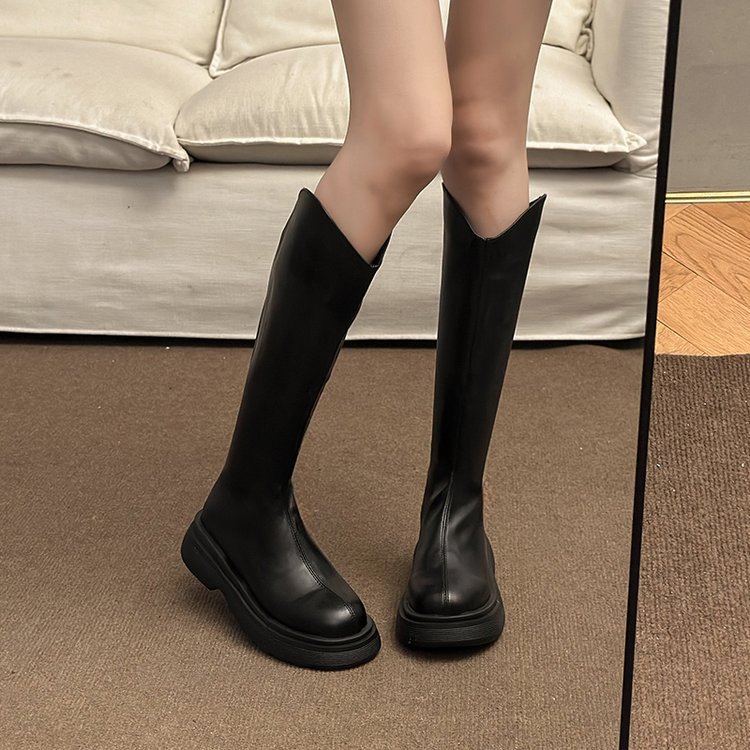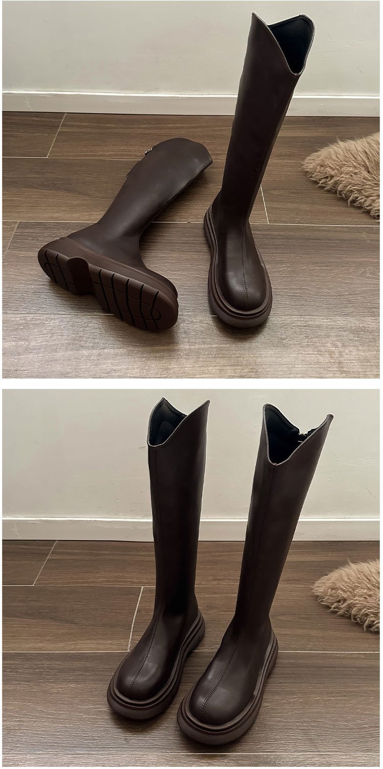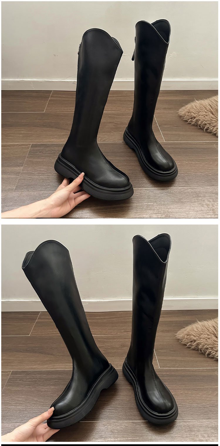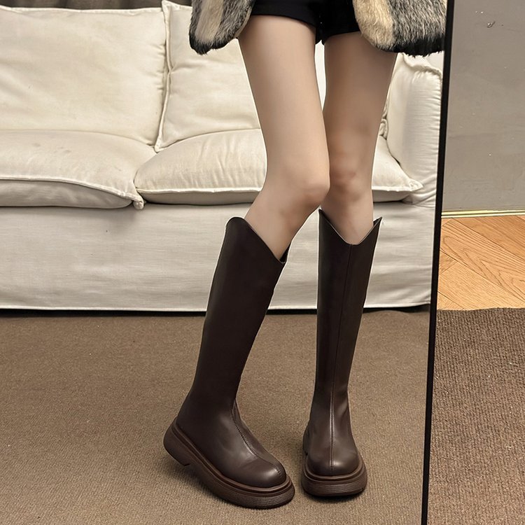 여성 롱 부츠 2024 년 가을과 겨울 새롭지 만 무릎 두꺼운 밑바닥 작은 두꺼운 다리 슬림 레트로 영국 스타일 기사 부츠스토어 가기