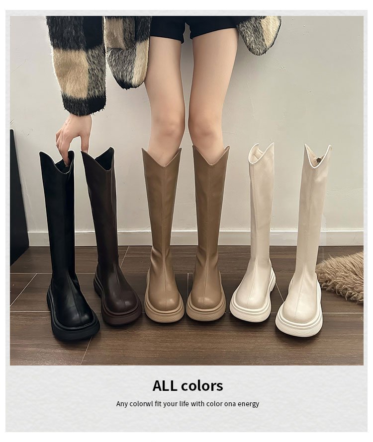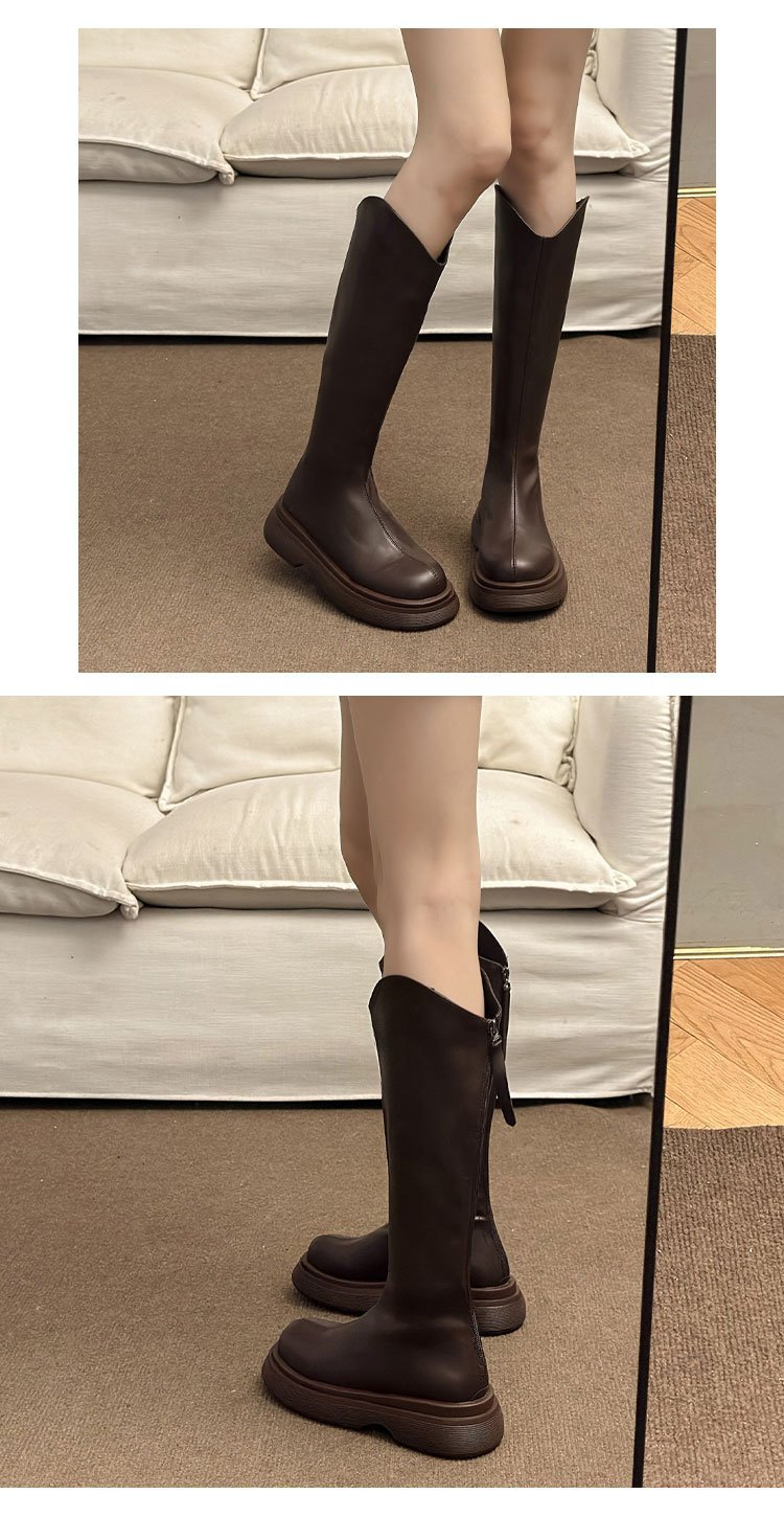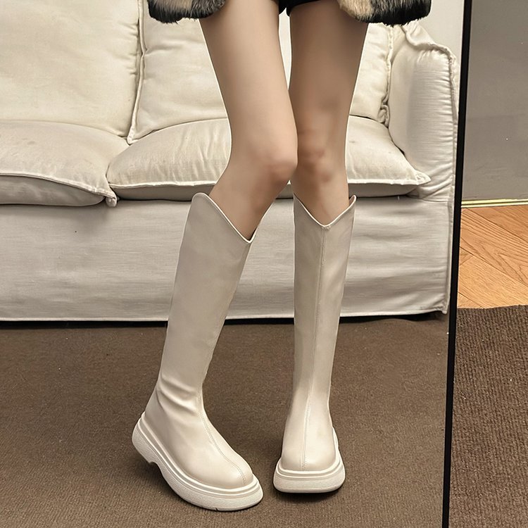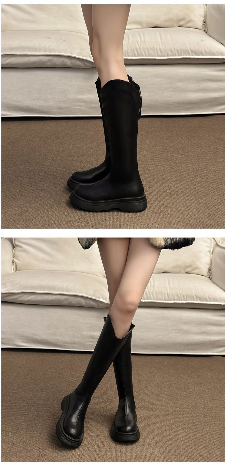 여성 롱 부츠 2024 년 가을과 겨울 새롭지 만 무릎 두꺼운 밑바닥 작은 두꺼운 다리 슬림 레트로 영국 스타일 기사 부츠스토어 가기