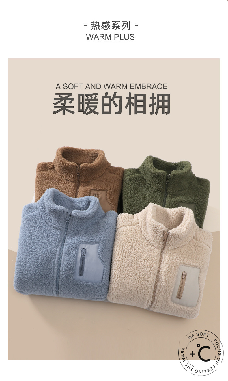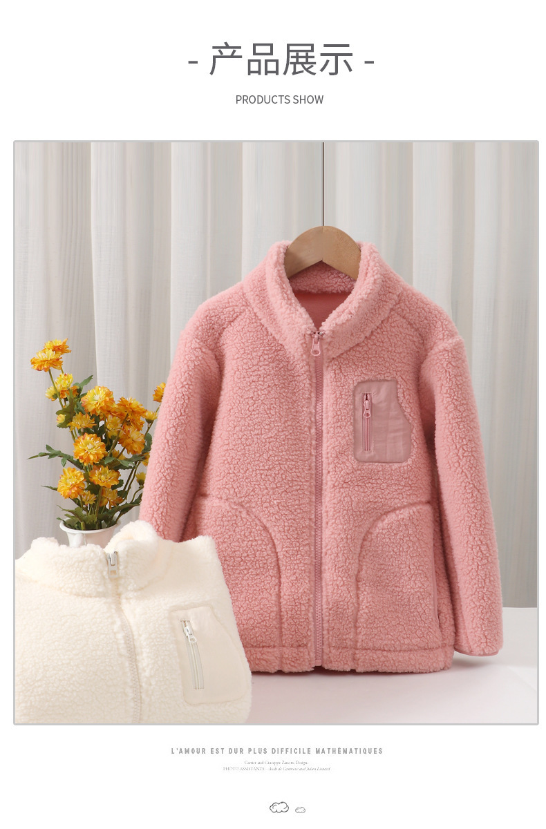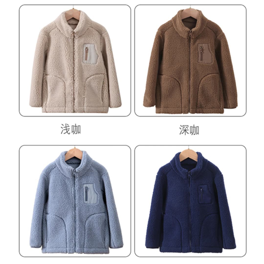 어린이 양고기 양털 가을과 겨울 기모 두꺼운 중대형 어린이 양털 따뜻한 부모-어린이 스타일 수직 칼라 따뜻한 재킷 새로운스토어 가기