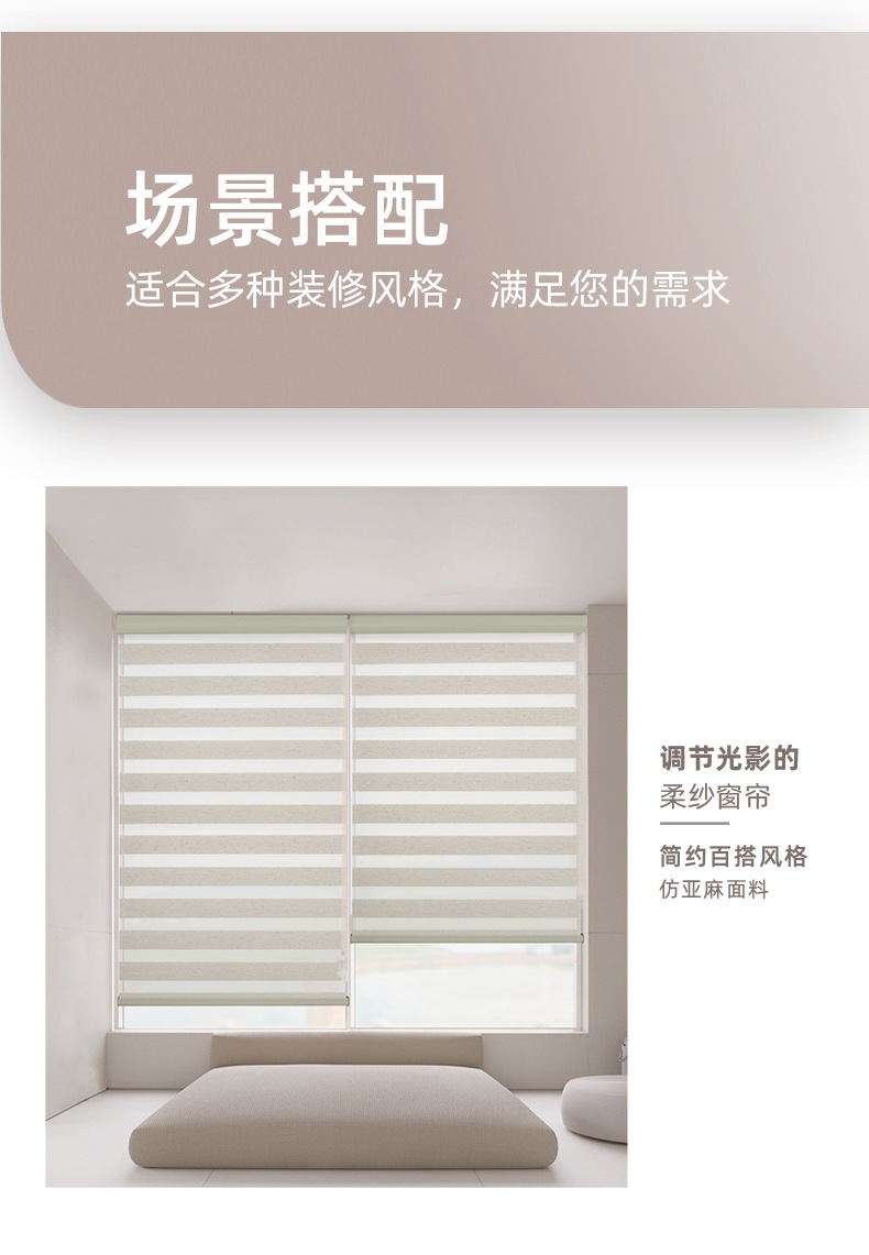 부드러운 거즈 커튼, 무타공 수동/전동 암막 커튼, 욕실/침실용 이중 방수 차양 롤스크린, 얼룩말 커튼스토어 가기