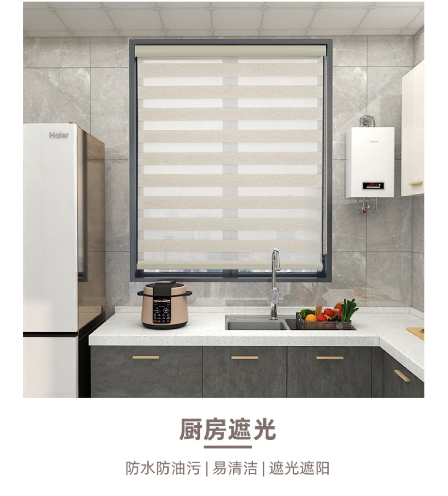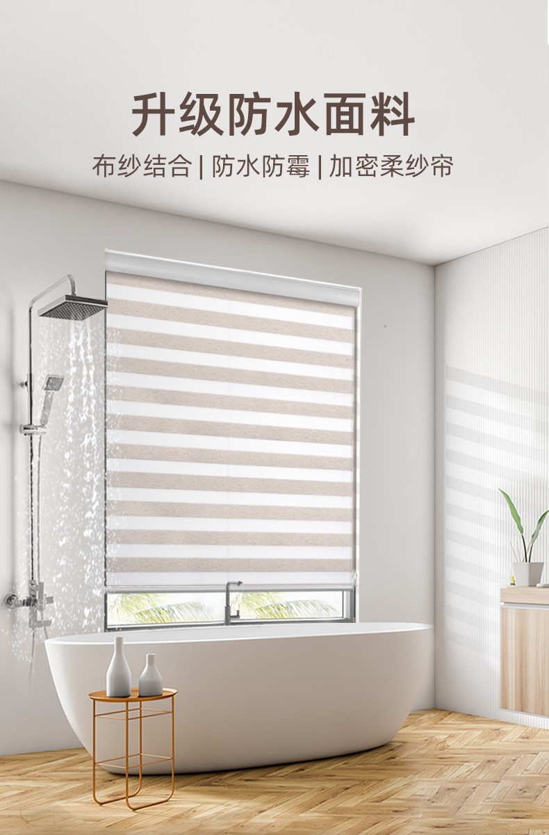 부드러운 거즈 커튼, 무타공 수동/전동 암막 커튼, 욕실/침실용 이중 방수 차양 롤스크린, 얼룩말 커튼