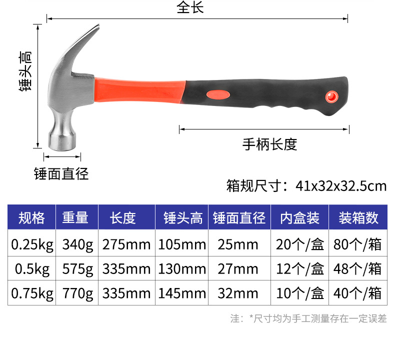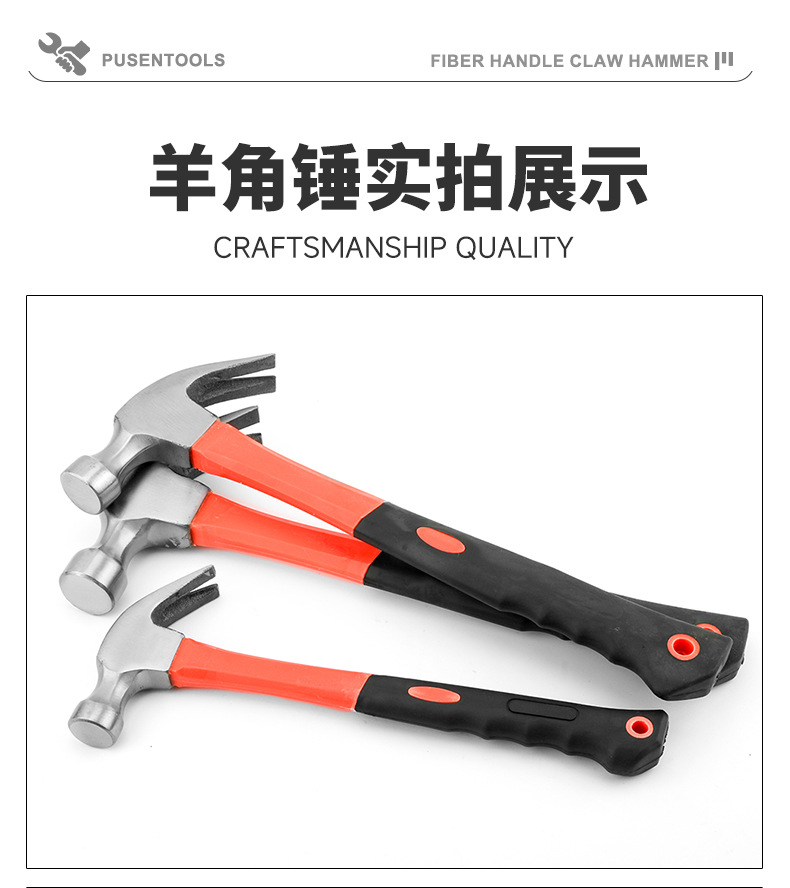 공장 도매 섬유 손잡이 플라스틱 코팅 쇠망치 가정용 목공 장식 못빼기 망치 건설 현장 망치 철못망치