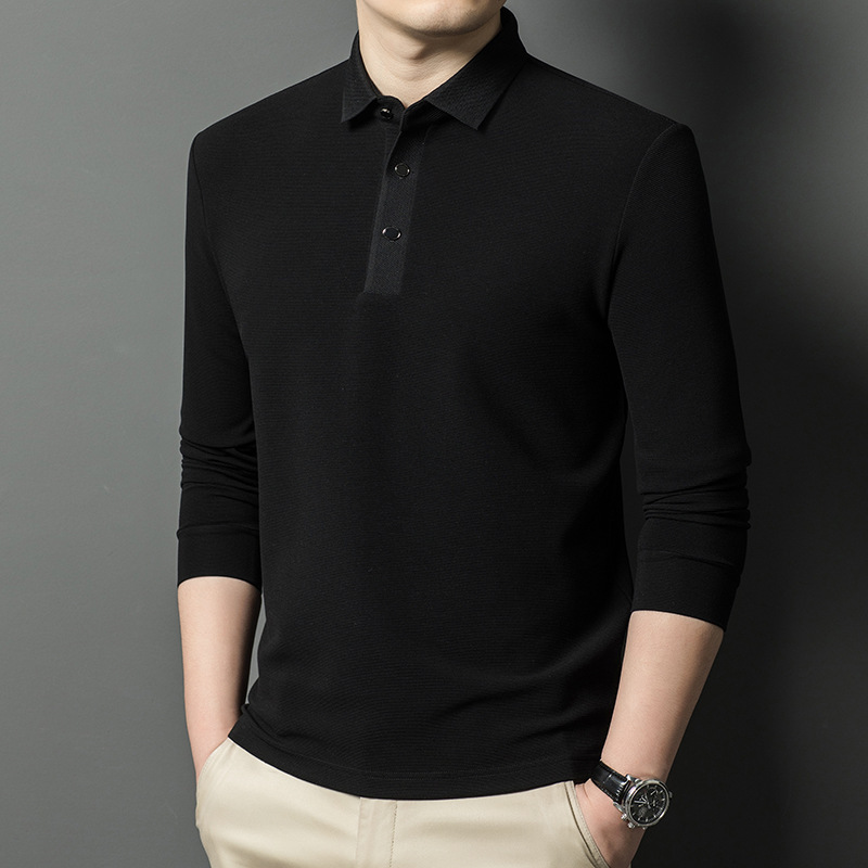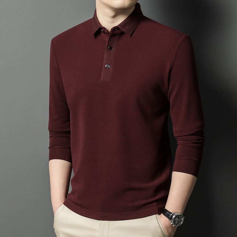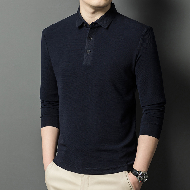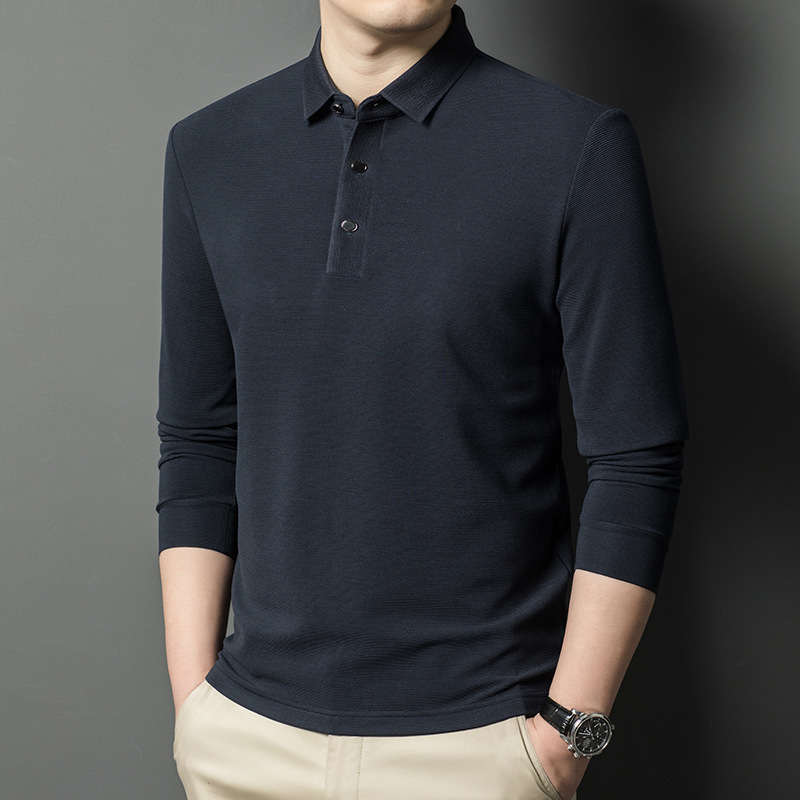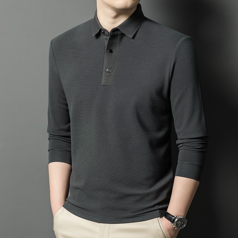 브랜드 고급 모직 스웨터 긴팔 남성 중년 옷깃베이스 비즈니스 캐주얼 비 다림질 얇은 티셔츠 트렌디 한 그레이 그린