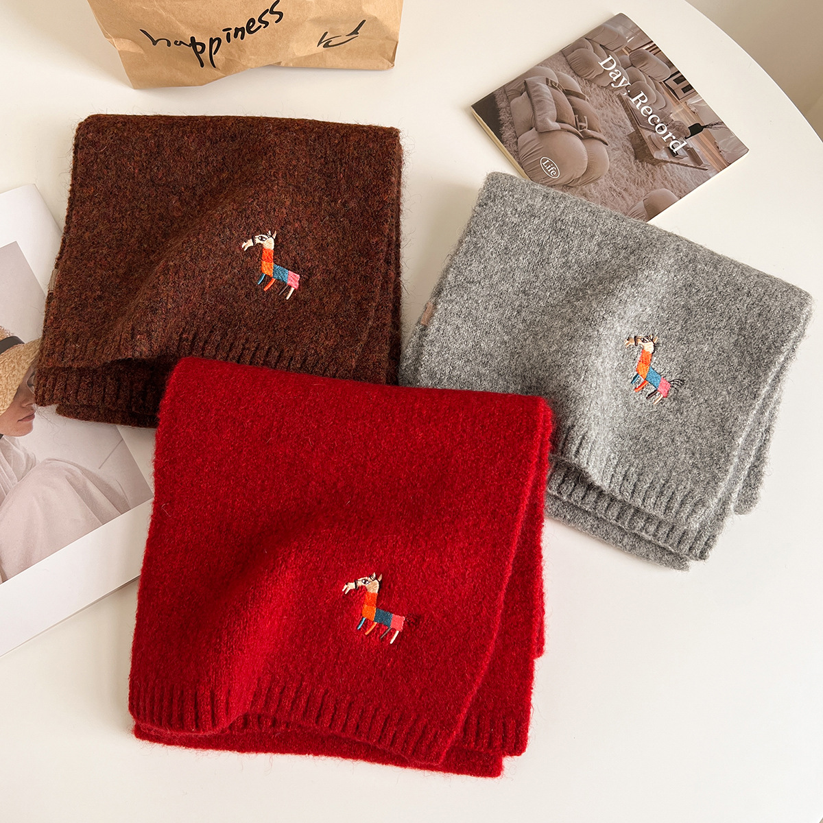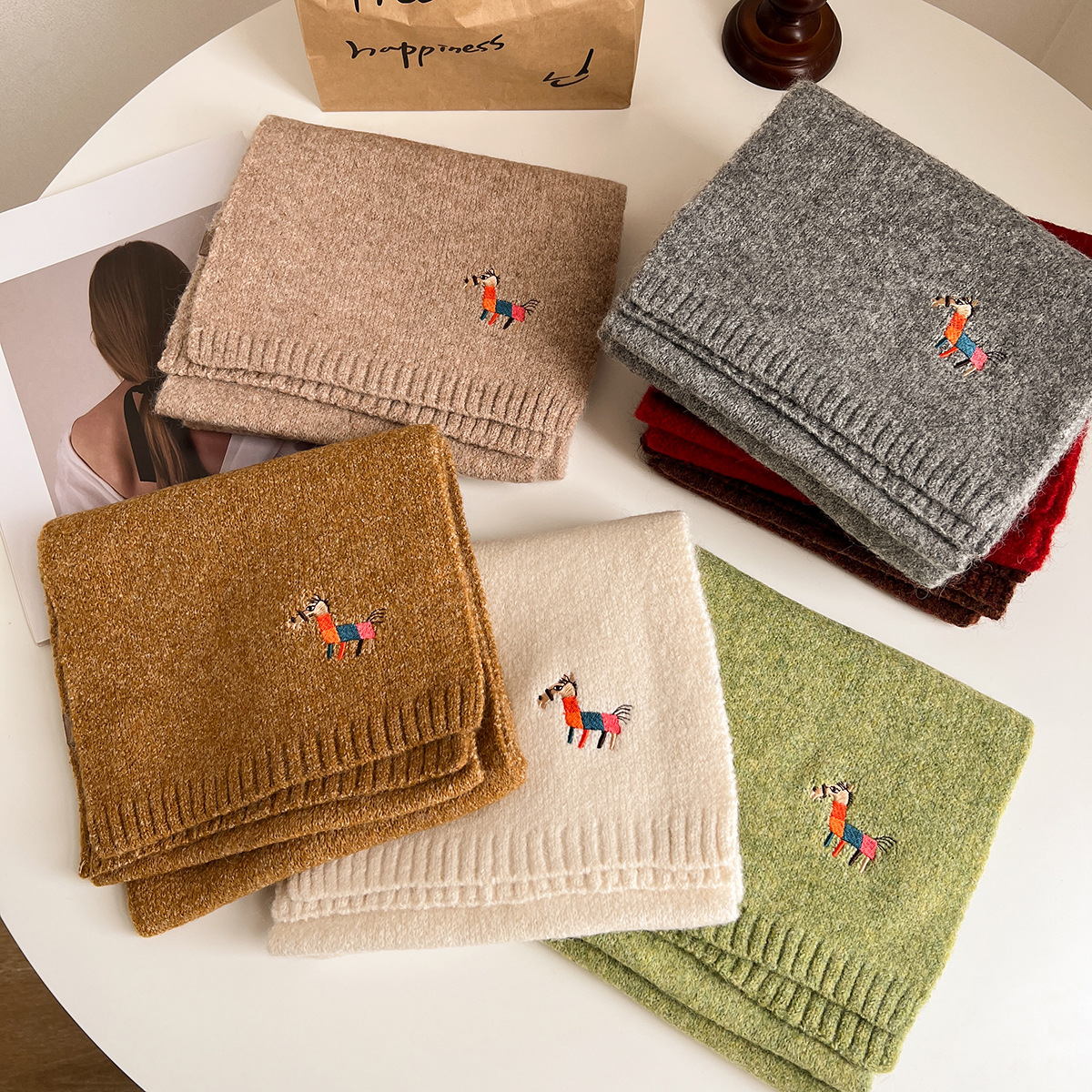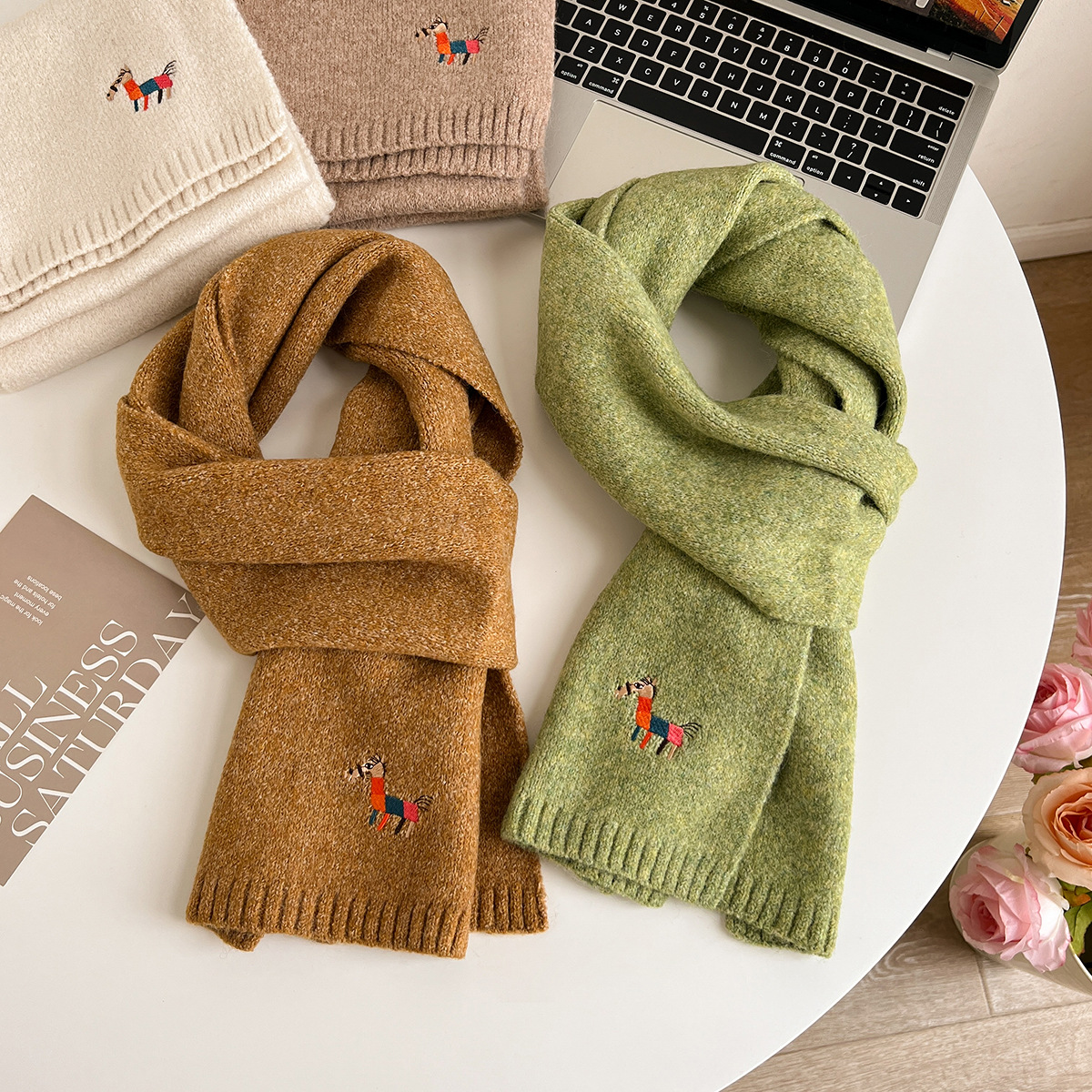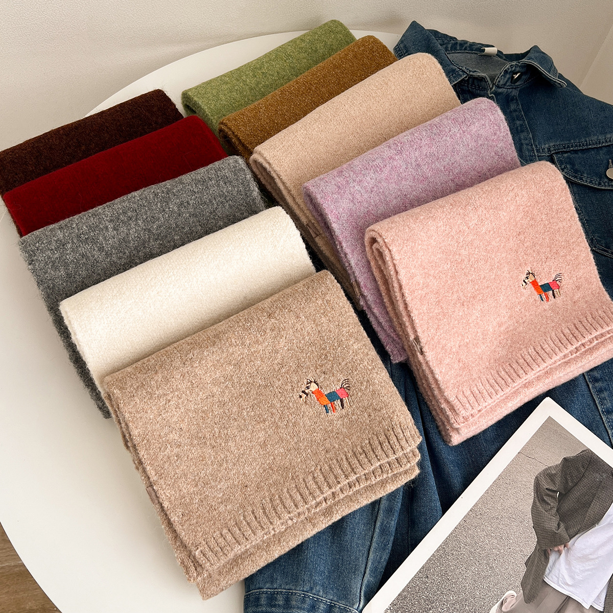 2026년 신상 가을 겨울 울 함유 한국 스타일 니트 포니 스카프 여성용 따뜻한 두꺼운 모직 스카프 개성 있는 자수 스카프스토어 가기