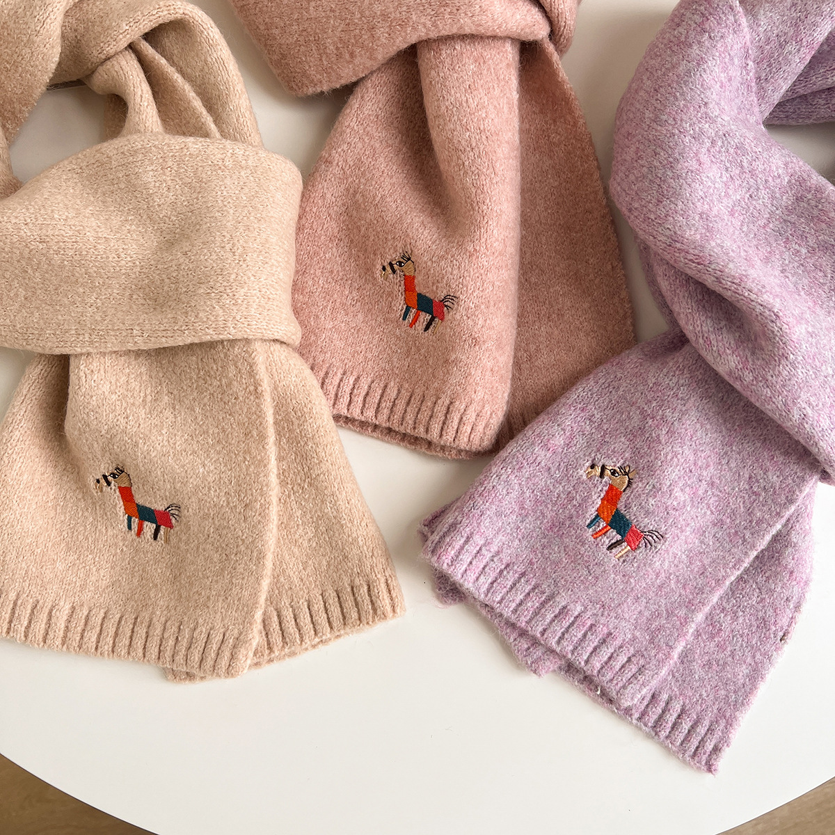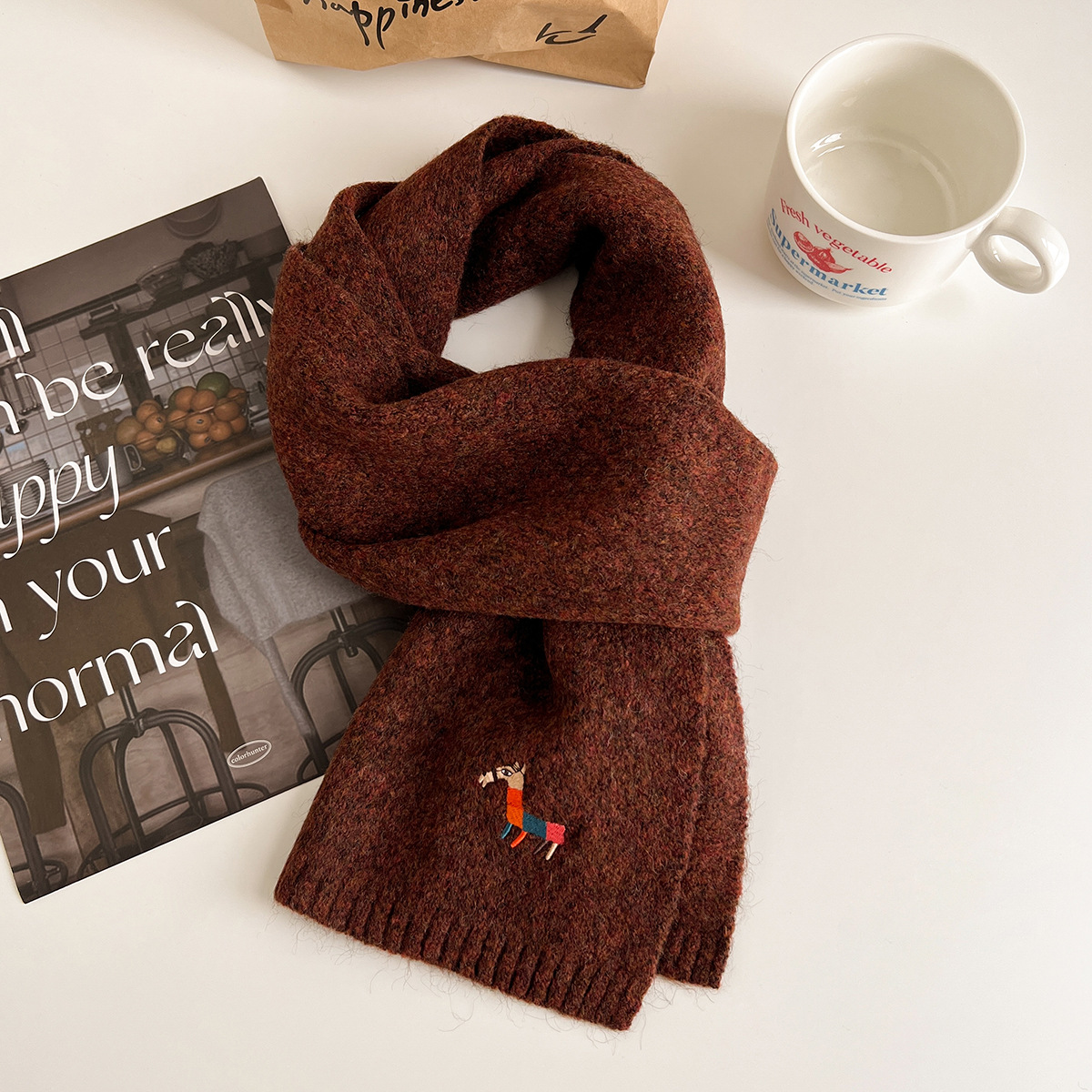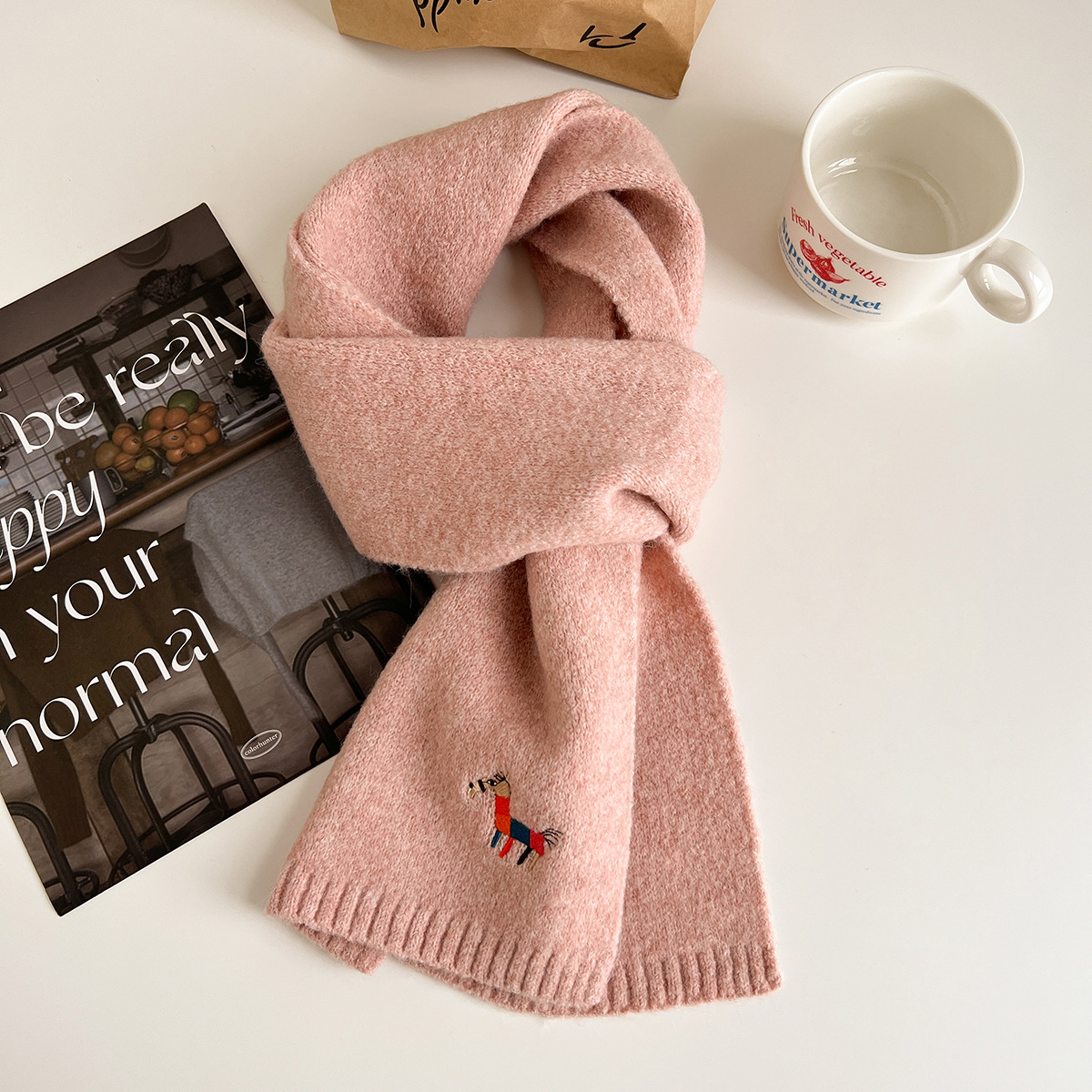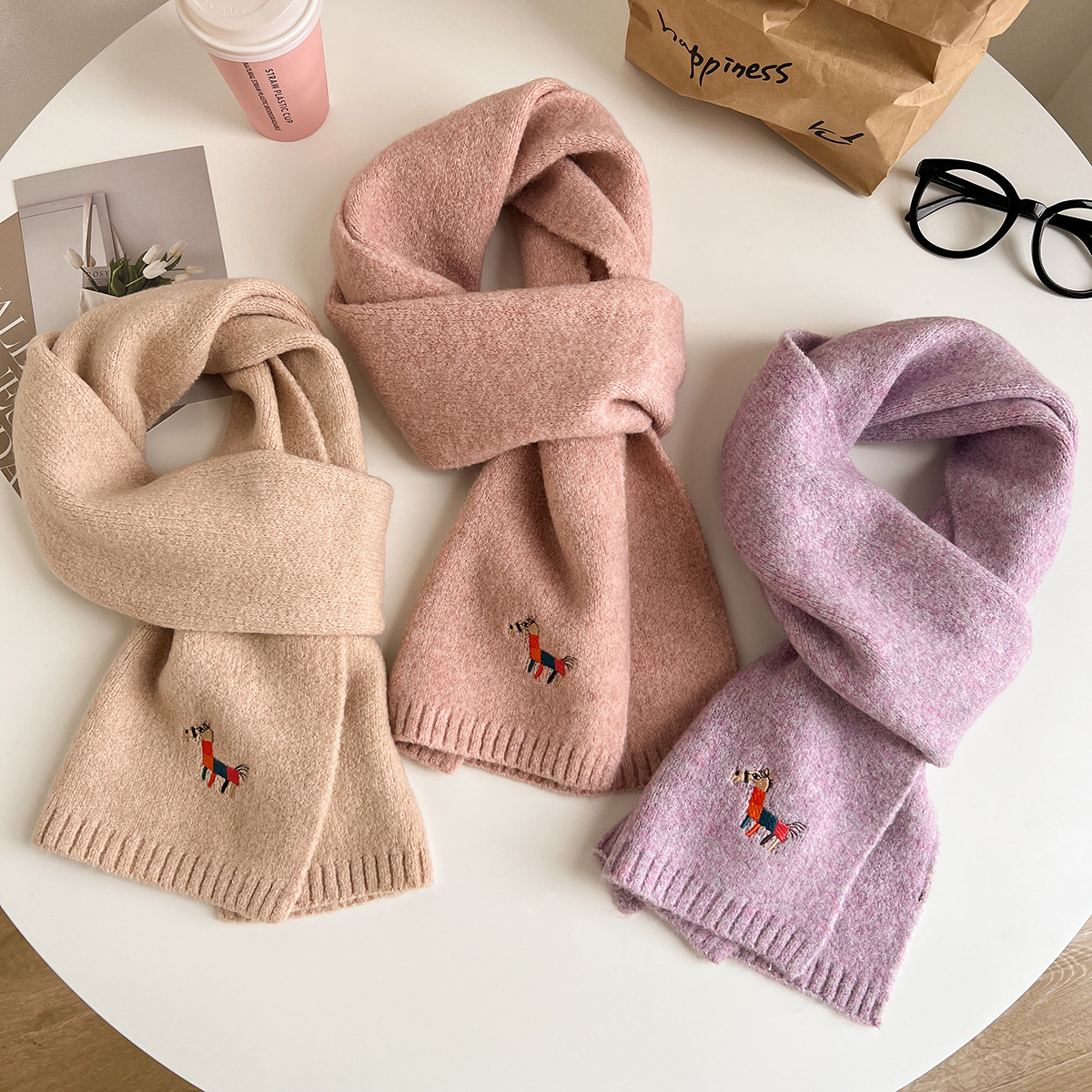 2026년 신상 가을 겨울 울 함유 한국 스타일 니트 포니 스카프 여성용 따뜻한 두꺼운 모직 스카프 개성 있는 자수 스카프스토어 가기