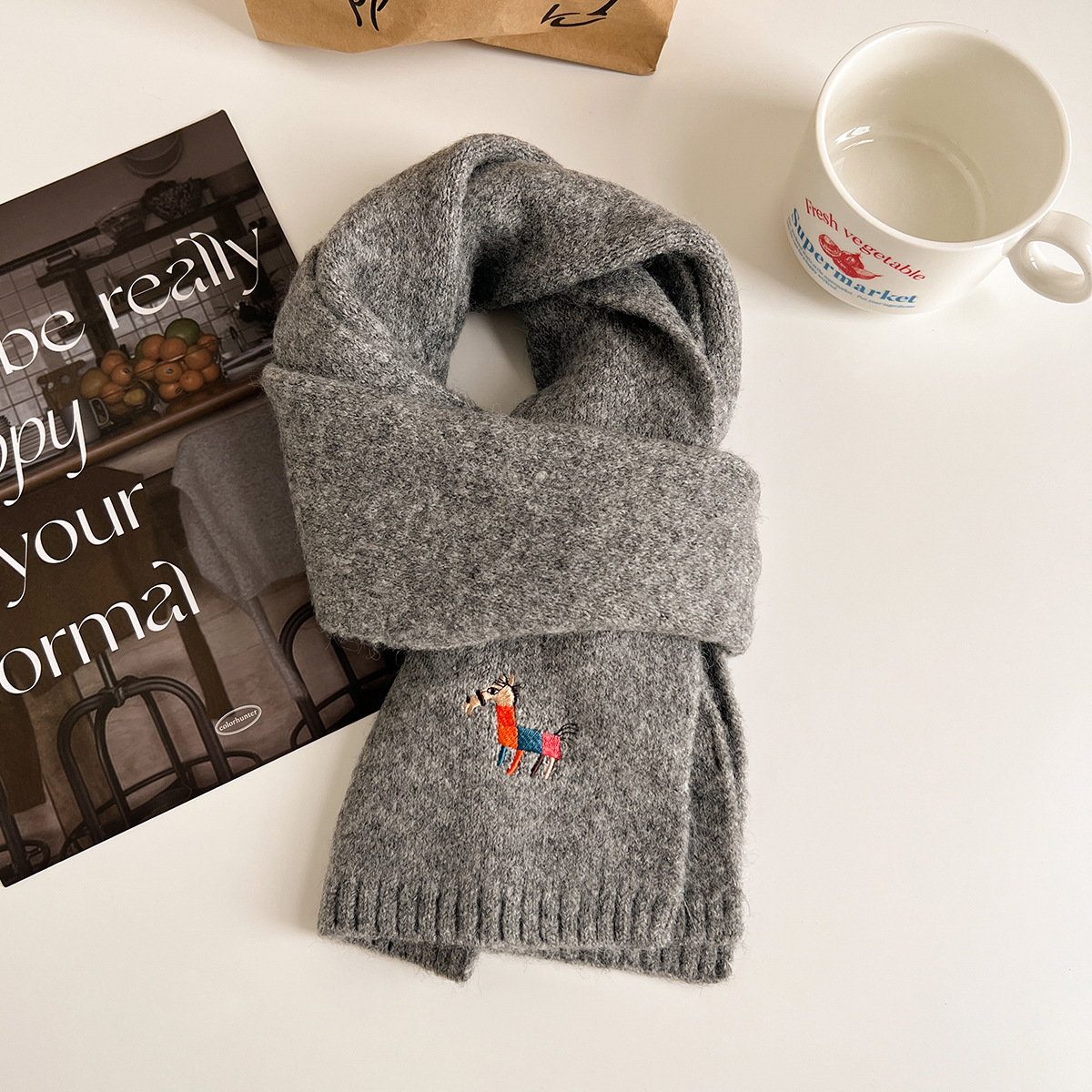 2026년 신상 가을 겨울 울 함유 한국 스타일 니트 포니 스카프 여성용 따뜻한 두꺼운 모직 스카프 개성 있는 자수 스카프