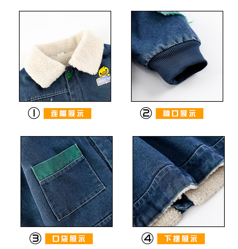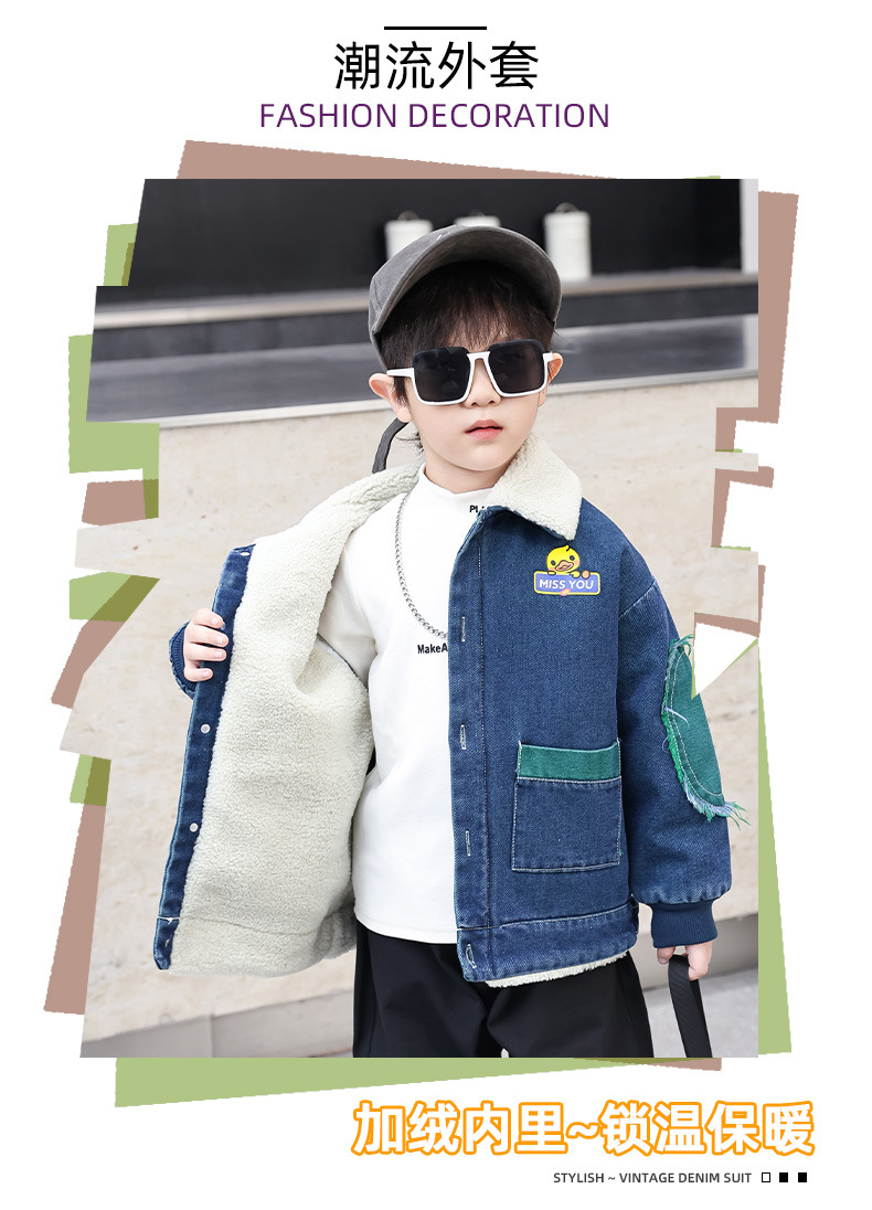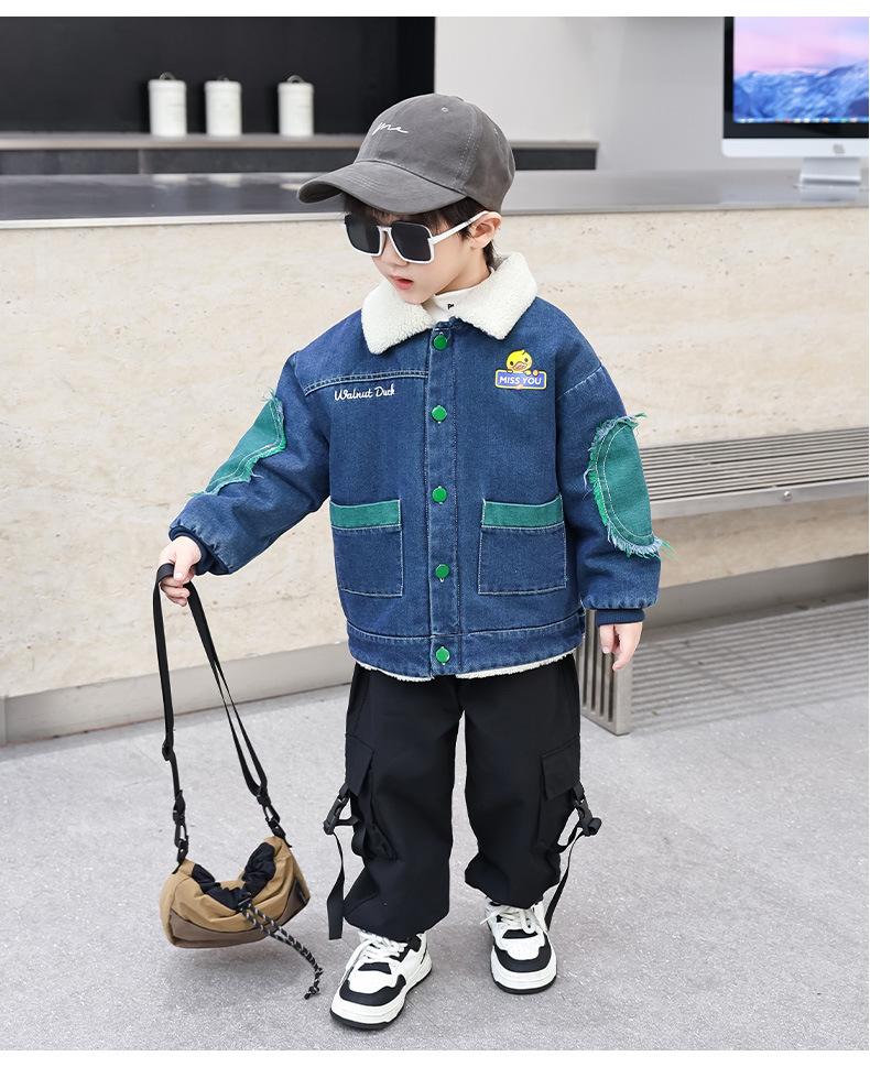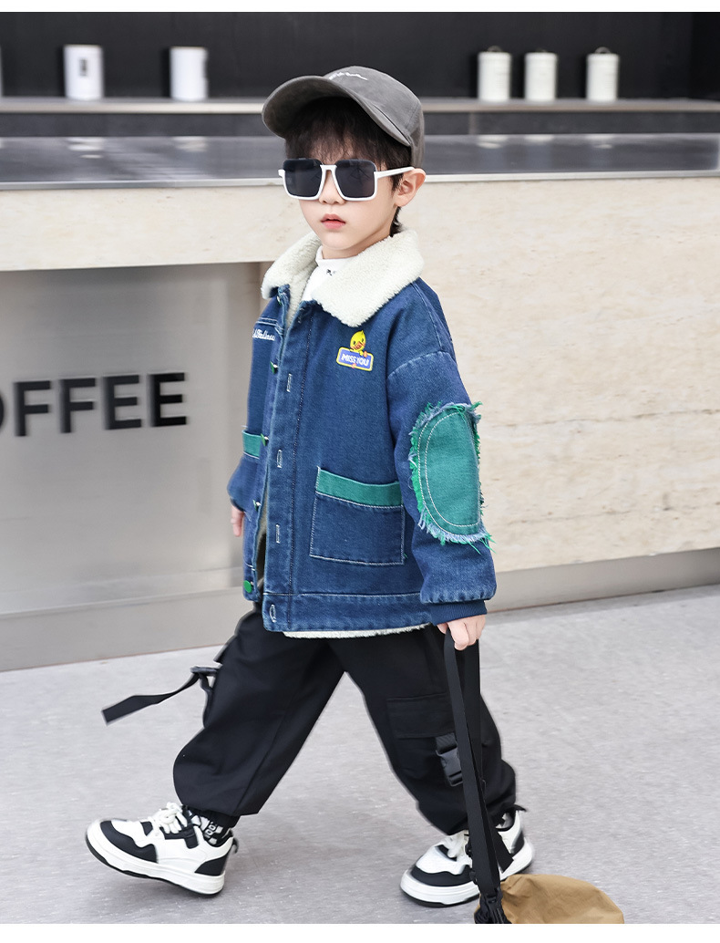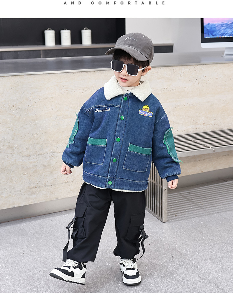 소년 코트 기모 두꺼운 겨울 새로운 아기의 가을과 겨울 데님 재킷 어린이 서양식 탑 겨울 아동복스토어 가기