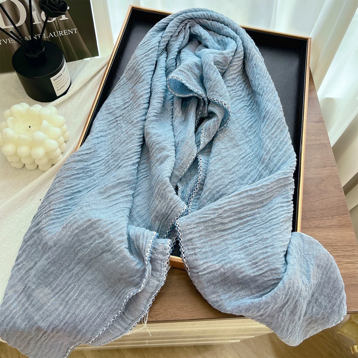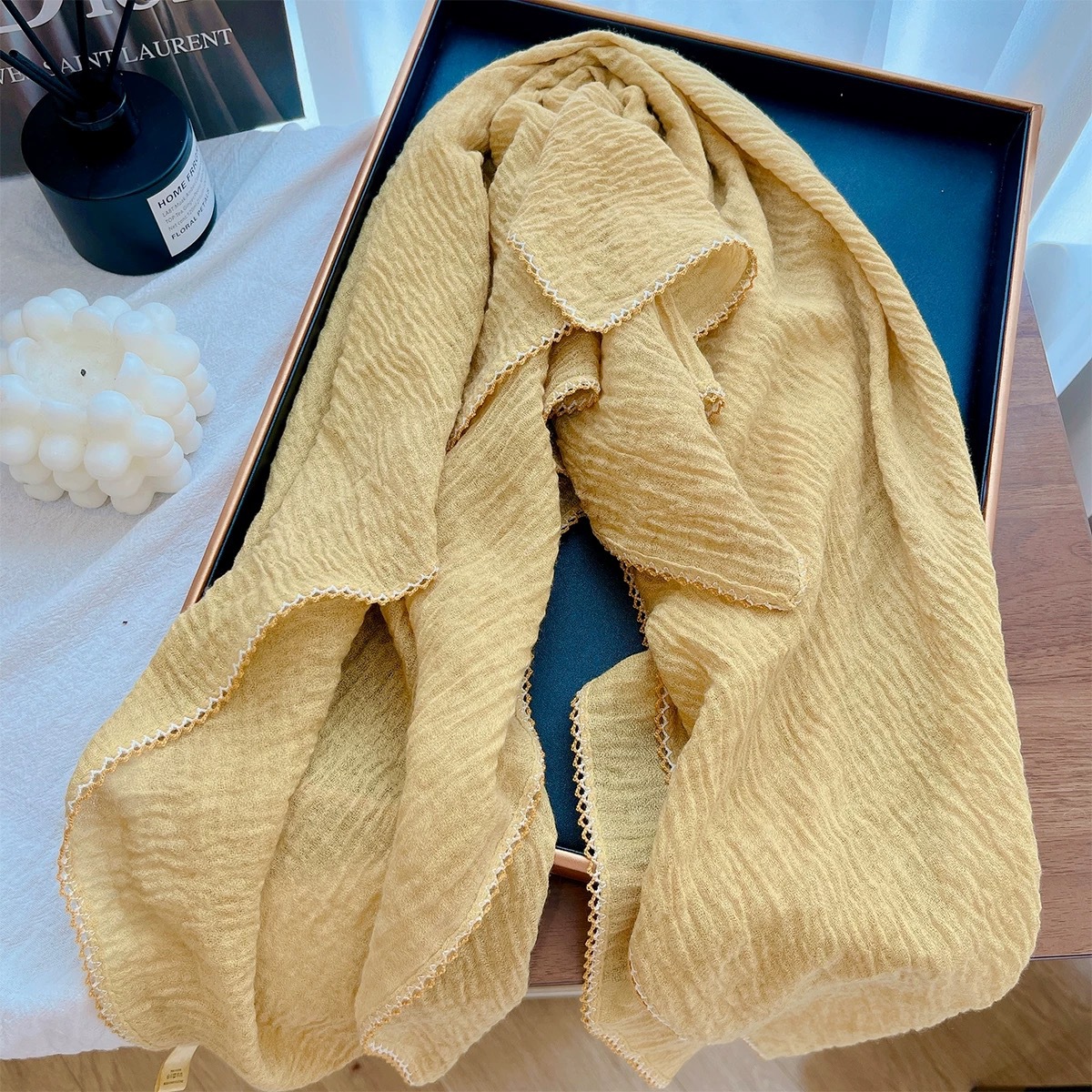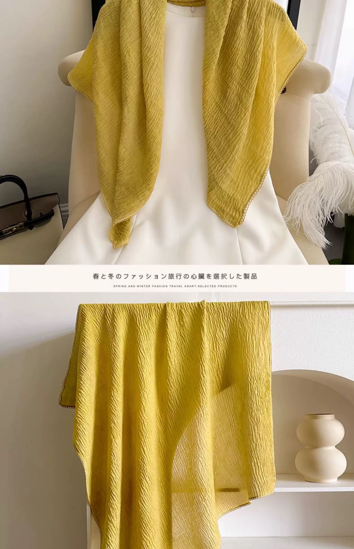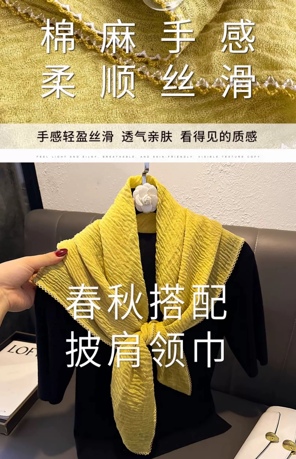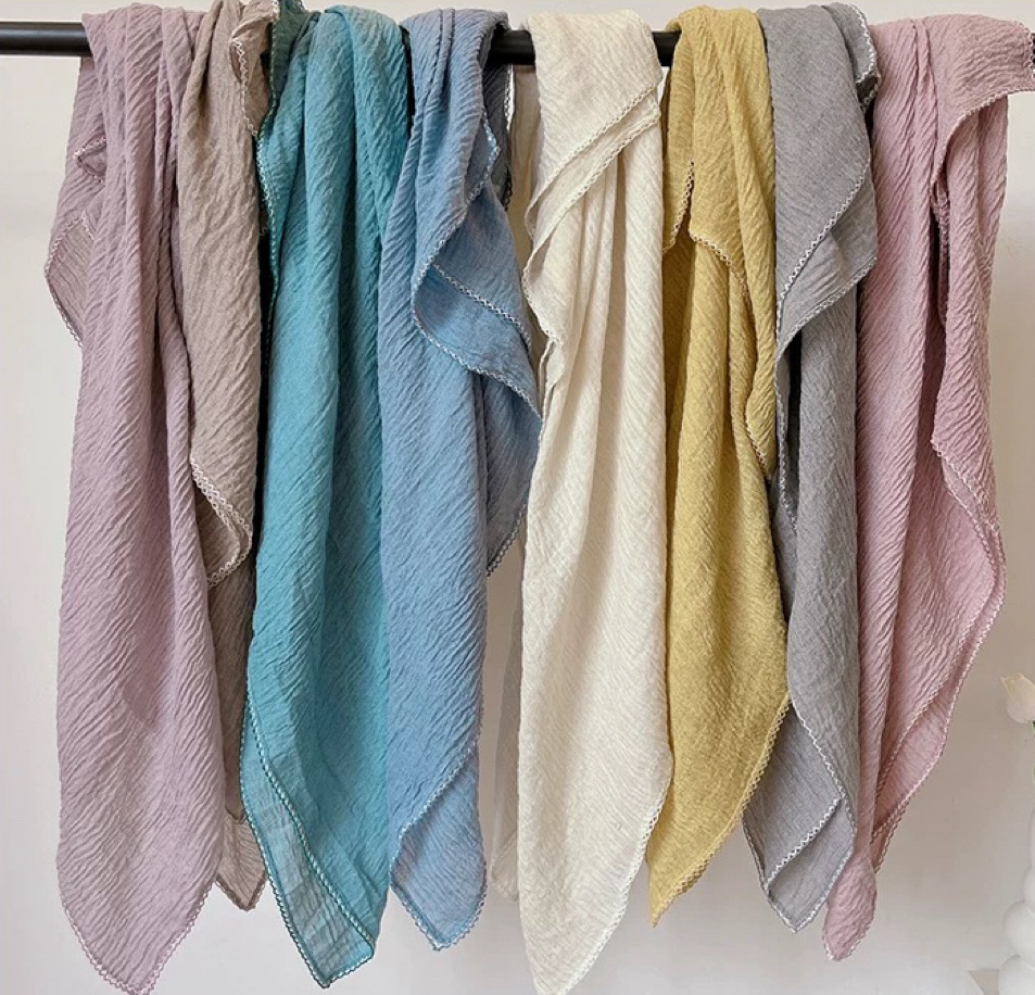 가을과 겨울 새로운 90cm 스퀘어 스카프 여성용 솔리드 컬러 코튼 및 리넨 텍스처 윙 작은 목도리 헤드 랩 목 보호 스카프스토어 가기