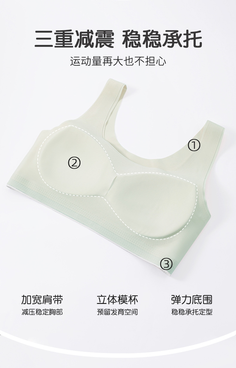 2 단계 개발 기간 소녀 속옷 중학교 고등학생 통합 원활한 조끼 스포츠 충격 흡수 통기성 브래지어
