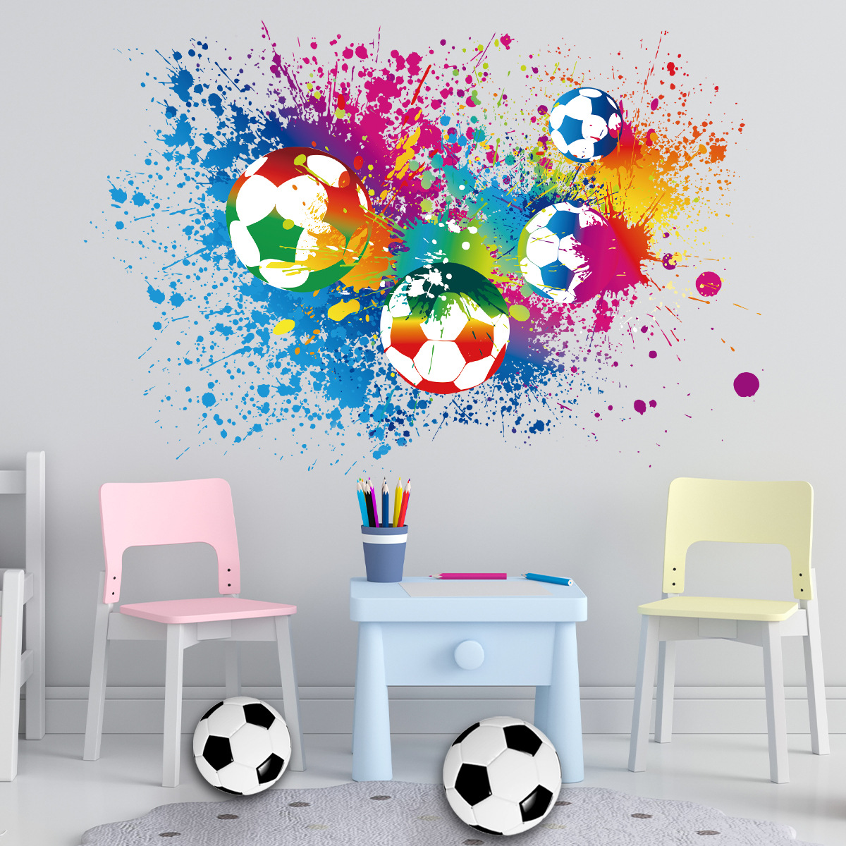 만화 컬러 안료 충돌 축구 자기 접착 벽 스티커 어린이 방 배경 벽 장식 스티커 ZN3021H