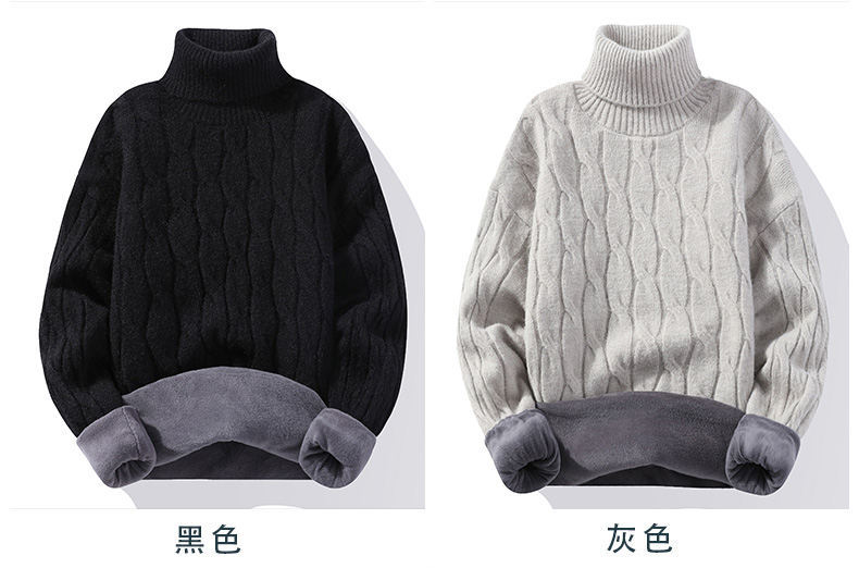 남성용 하이넥 기모 두꺼운 스웨터, 따뜻한 2025년 신상 가을 겨울 청소년용 긴팔 니트스토어 가기