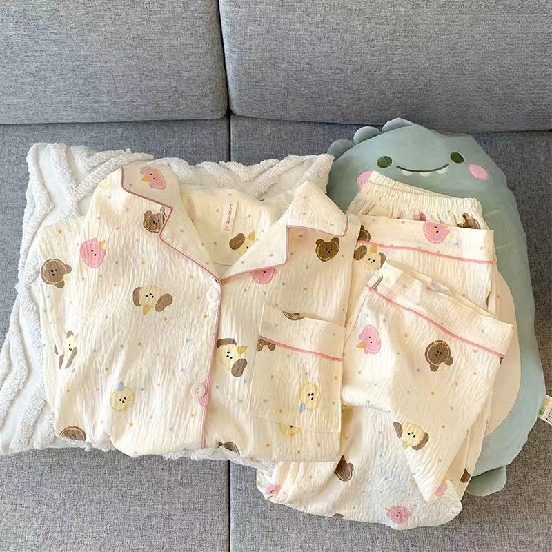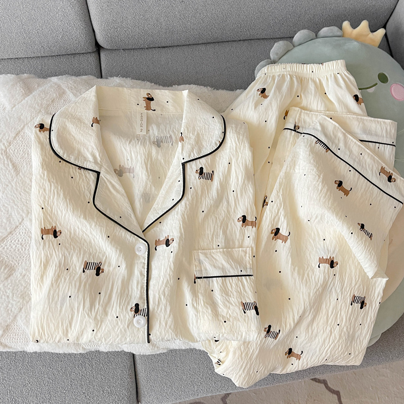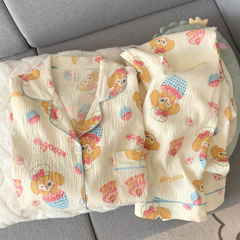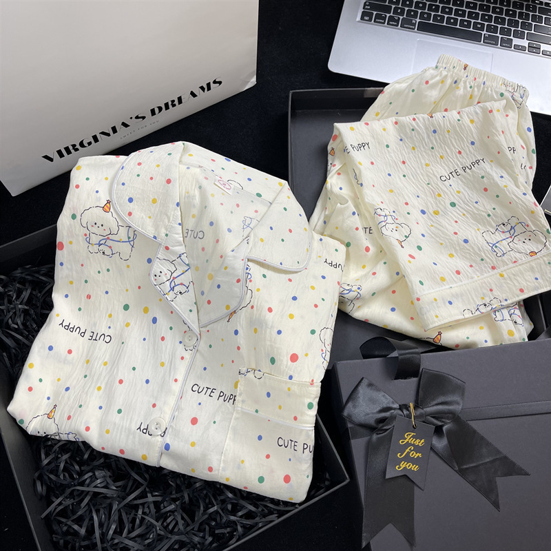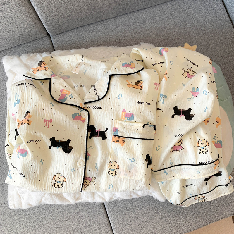 여성을위한 귀여운 강아지 잠옷 봄, 가을 순수 코튼 클라우드 코튼 원사 2025 새로운 카디건 여름 홈웨어 세트