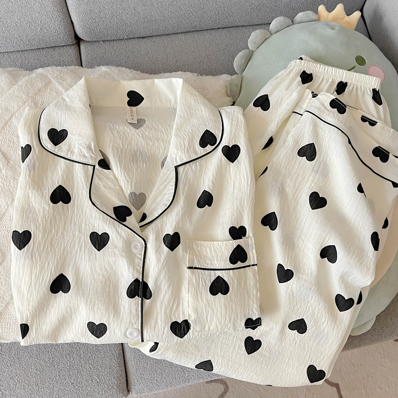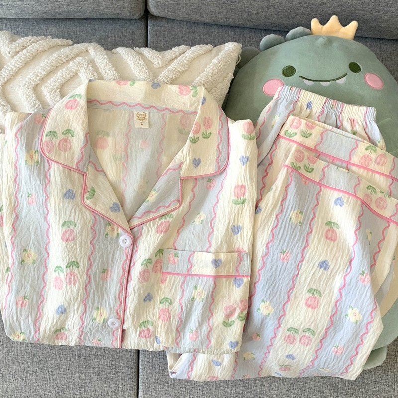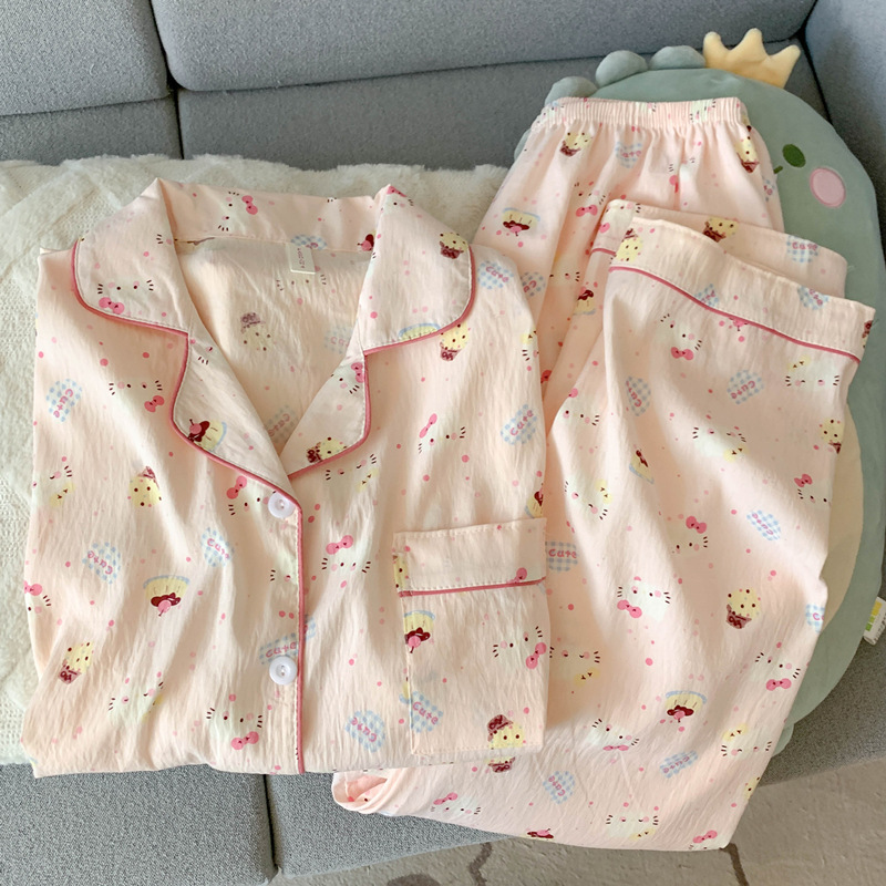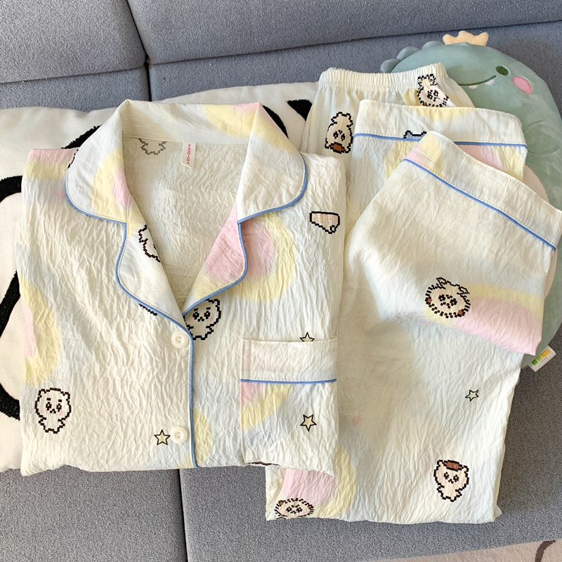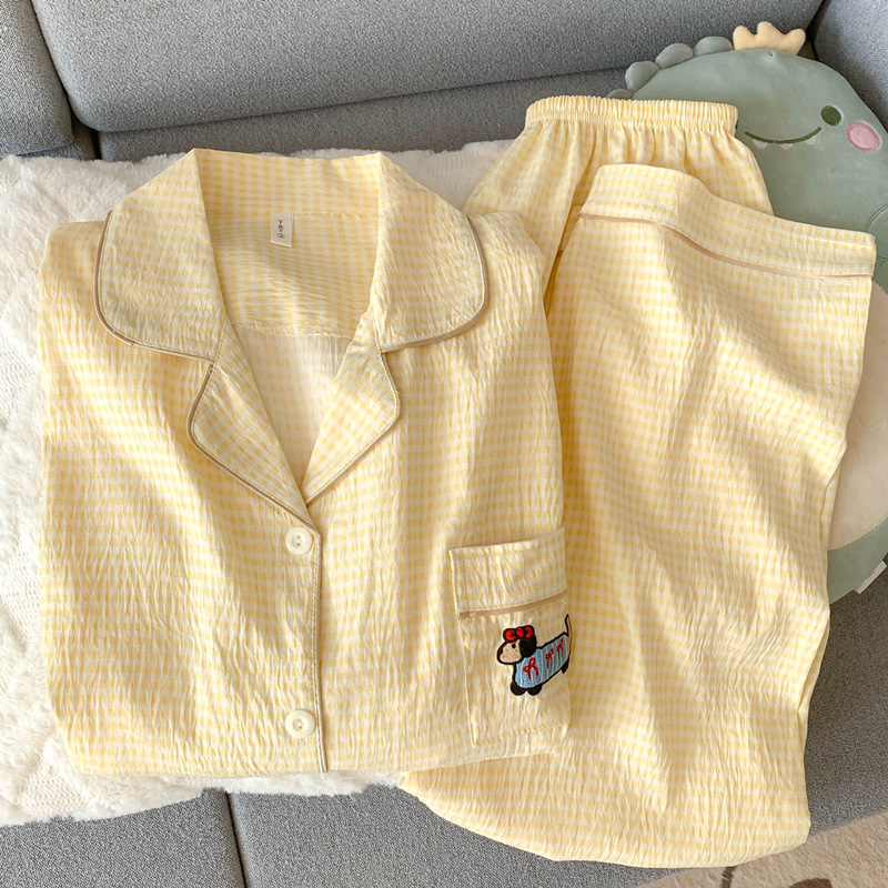 여성을위한 귀여운 강아지 잠옷 봄, 가을 순수 코튼 클라우드 코튼 원사 2025 새로운 카디건 여름 홈웨어 세트