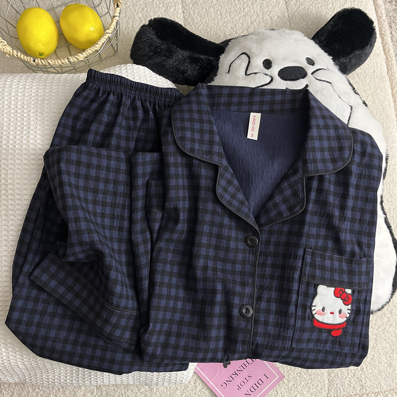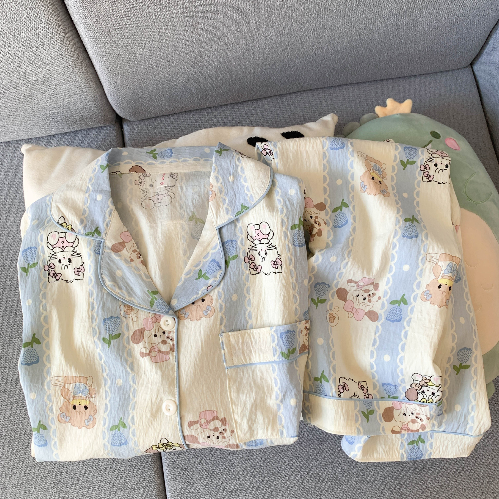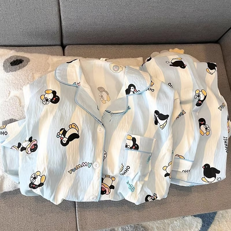 여성을위한 귀여운 강아지 잠옷 봄, 가을 순수 코튼 클라우드 코튼 원사 2025 새로운 카디건 여름 홈웨어 세트스토어 가기