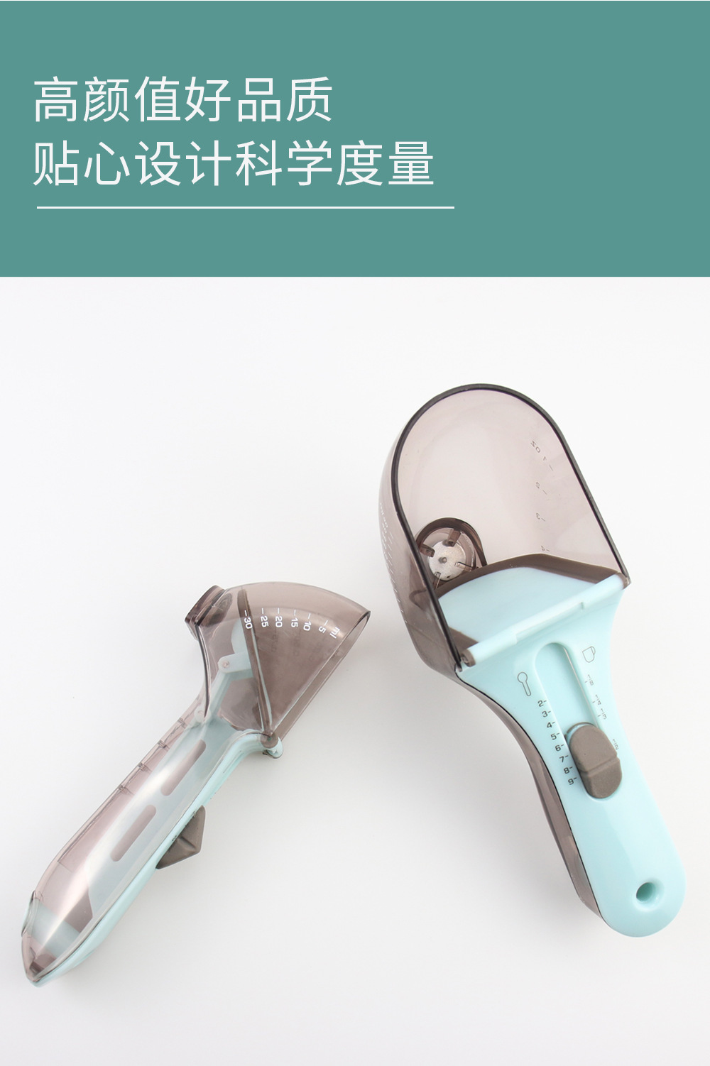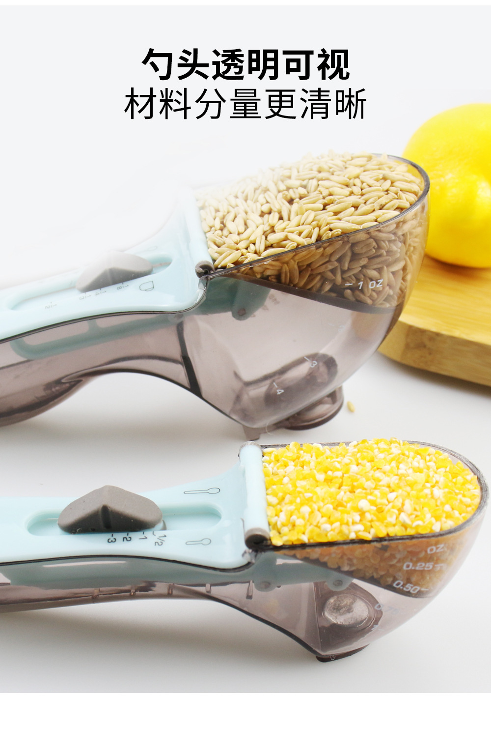 플라스틱 측정 숟가락 2 개 세트 조정 가능한 측정 숟가락 측정 컵 스케일 플라스틱 측정 숟가락 측정 컵 세트 주방 도구