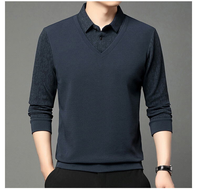 가을과 겨울 새로운 가짜 두 긴팔 티셔츠 POLO 셔츠 남성 비즈니스 캐주얼 풀오버 셔츠 셔츠 한 세대 머리카락