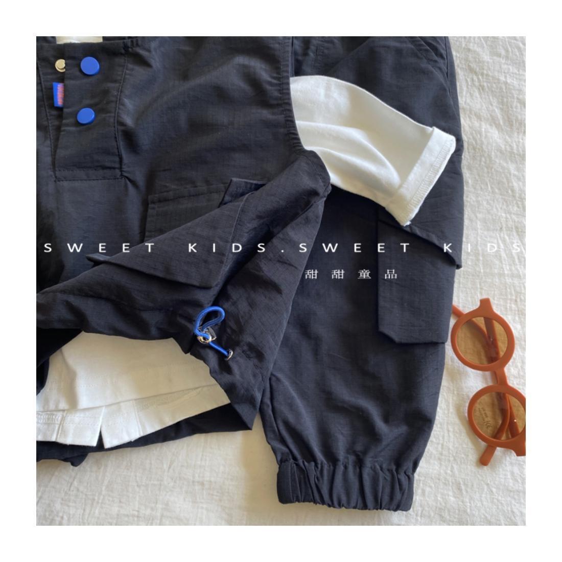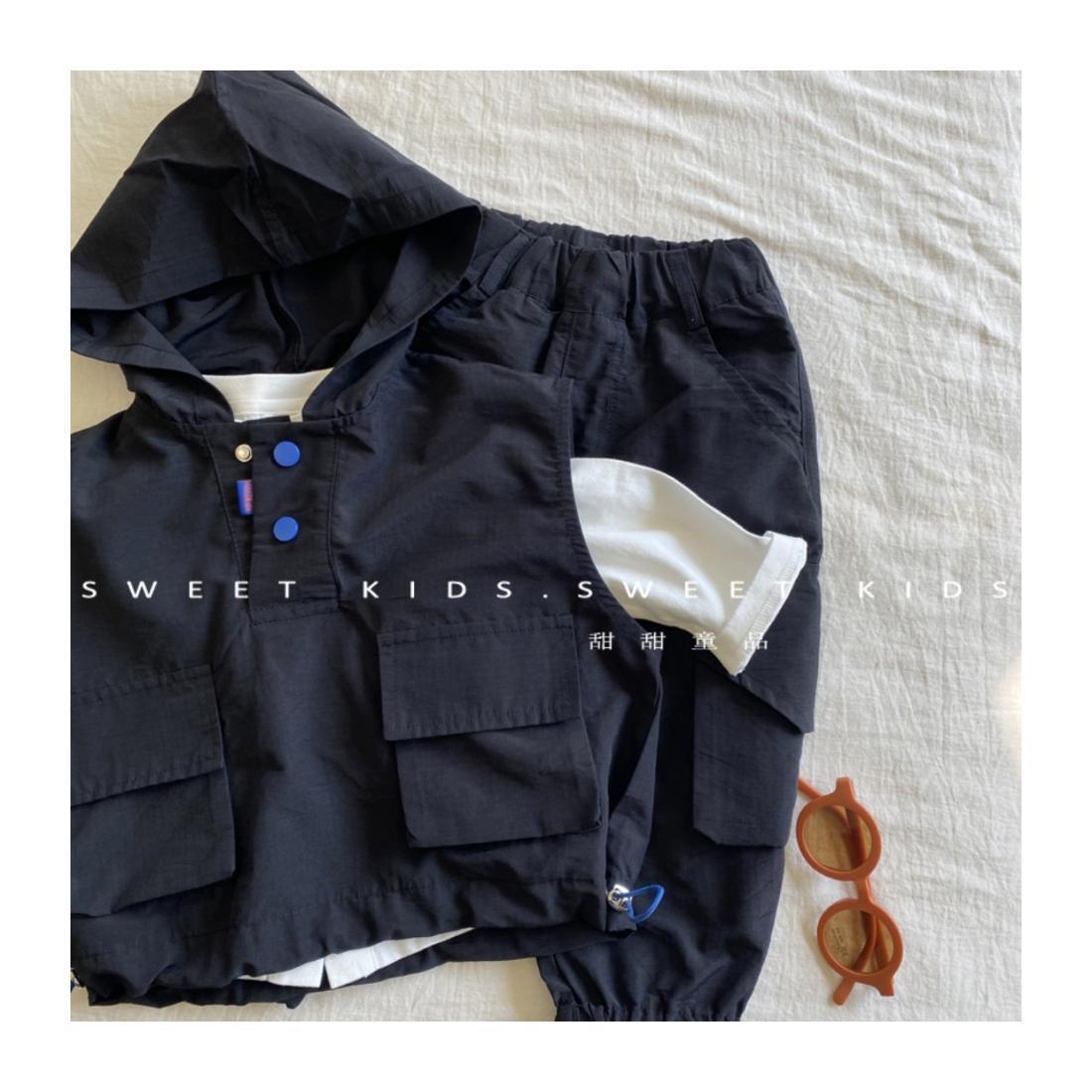 2024 새로운 스타일의 아기 소년 후드 조끼 바닥 셔츠 작업 바지 3 피스 트렌디 한 소년 가을 세트스토어 가기