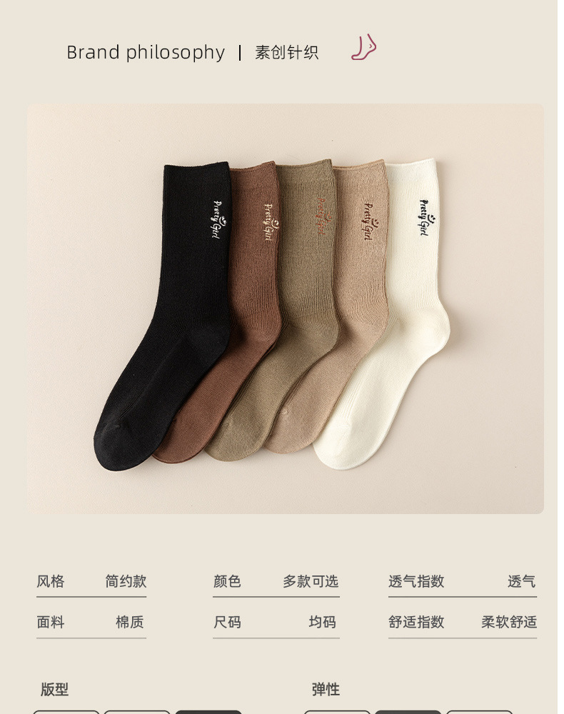 양말 여성의 가을 및 겨울 더블 바늘 중간 길이 양말 Maillard 컬러 땀 흡수 통기성 항균 캐주얼 스포츠 스타킹