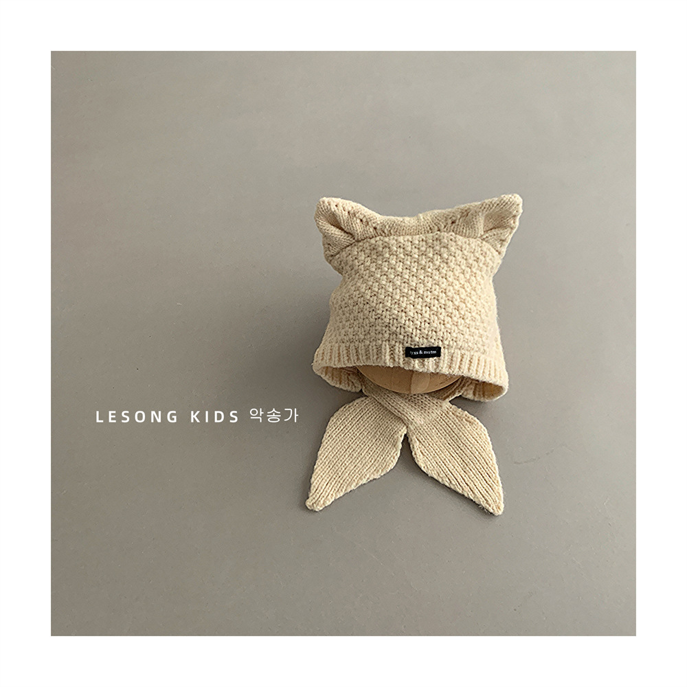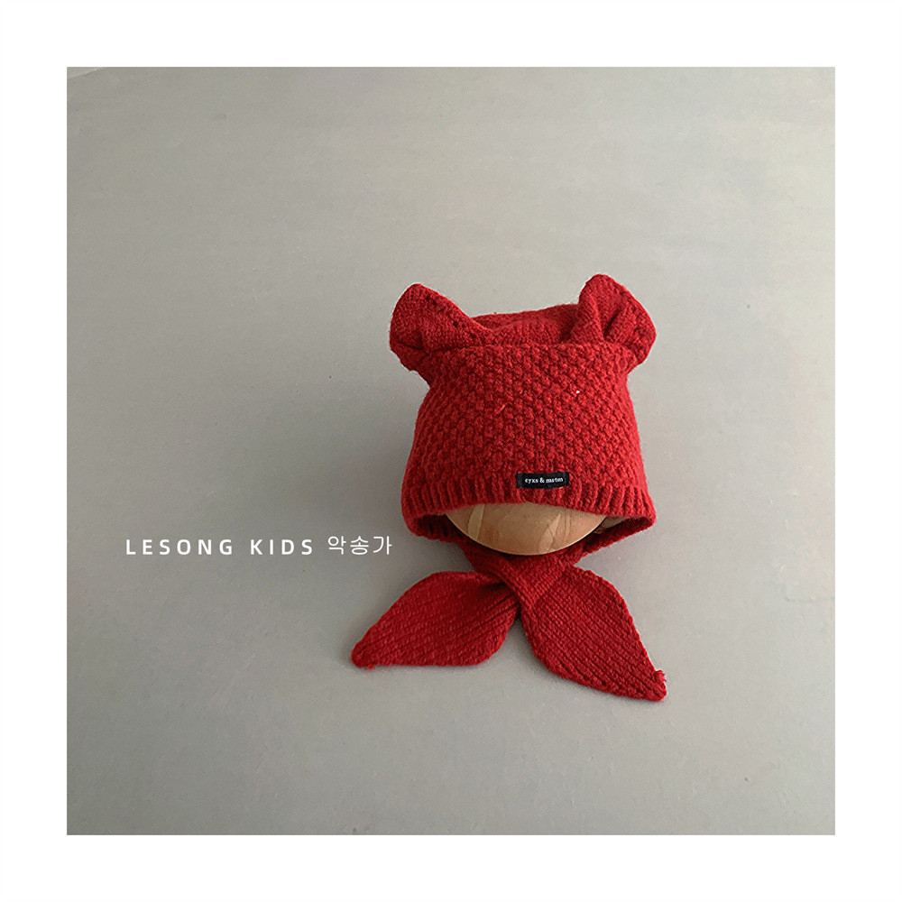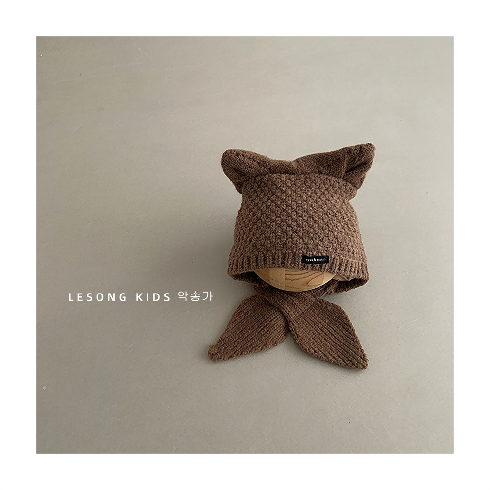 한국 스타일 유행 독특한 귀 어린이 니트 원피스 모자 아기 소년과 소녀 겨울 스카프 목 보호