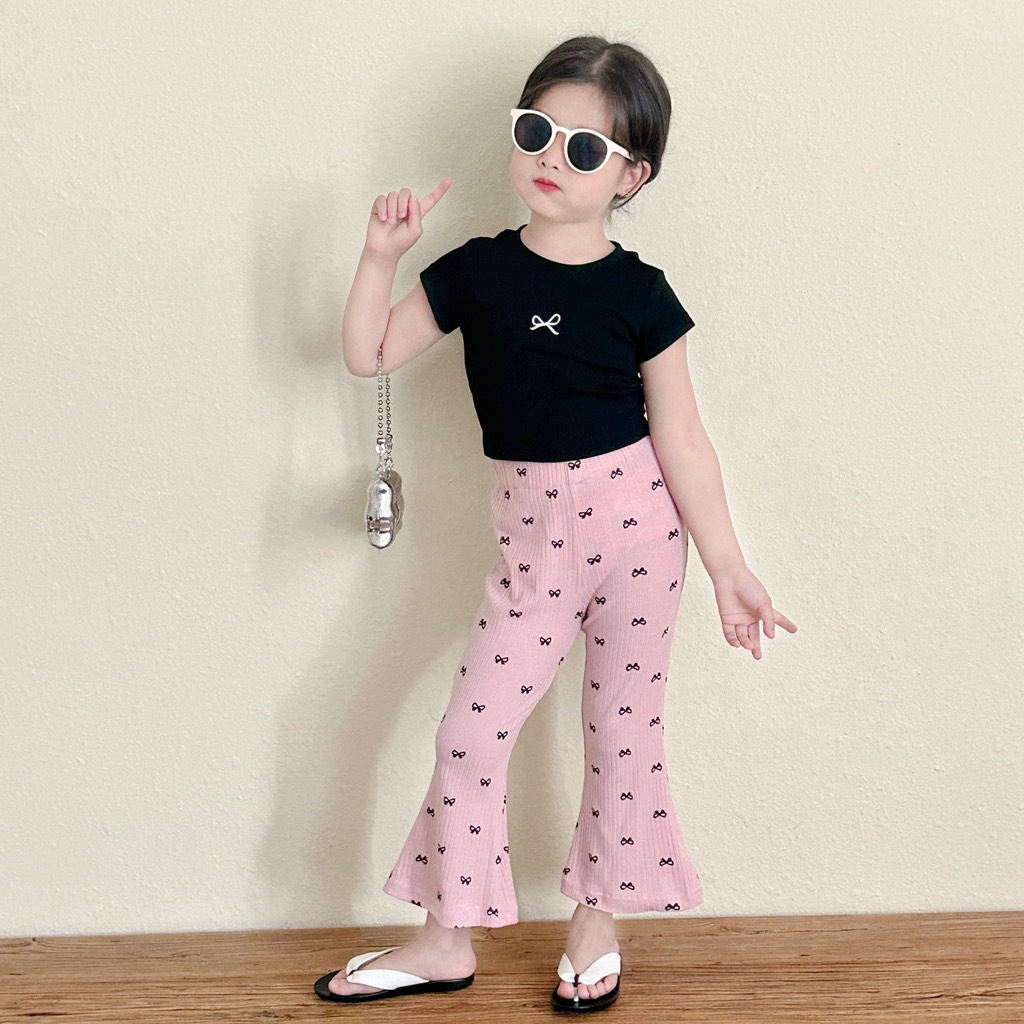 소녀 투피스 여름 새로운 도착 귀여운 활 반팔 티셔츠 여성의 회색 귀 가장자리 탑 바지스토어 가기