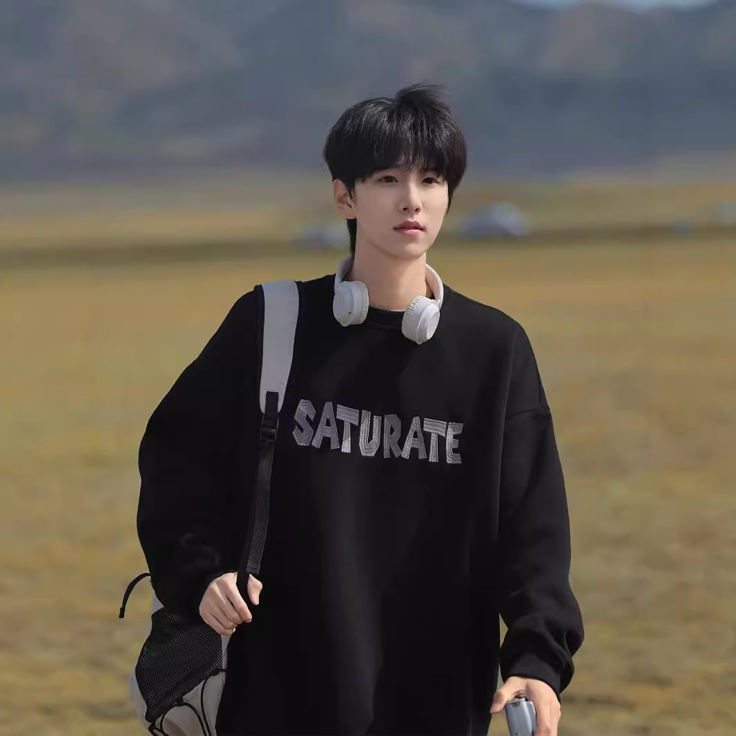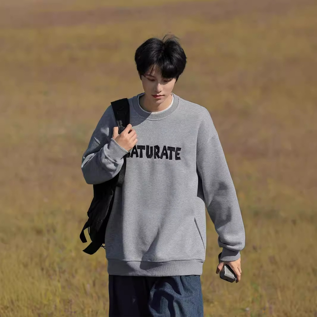 인쇄 된 250g 무거운 둥근 목 스웨터 남성용 이른 가을 기모 hoodless 느슨한 소년 청소년 풀오버 재킷스토어 가기