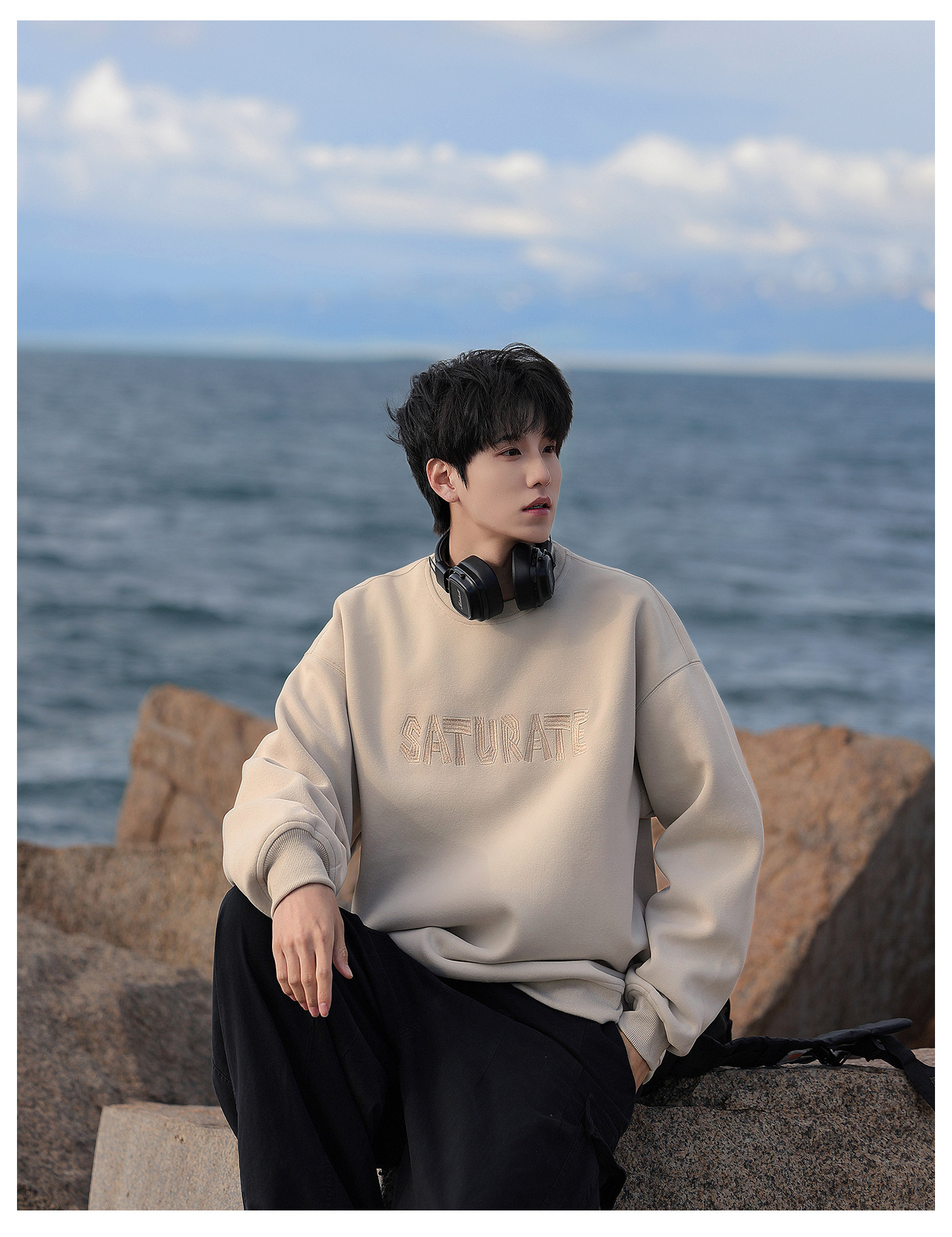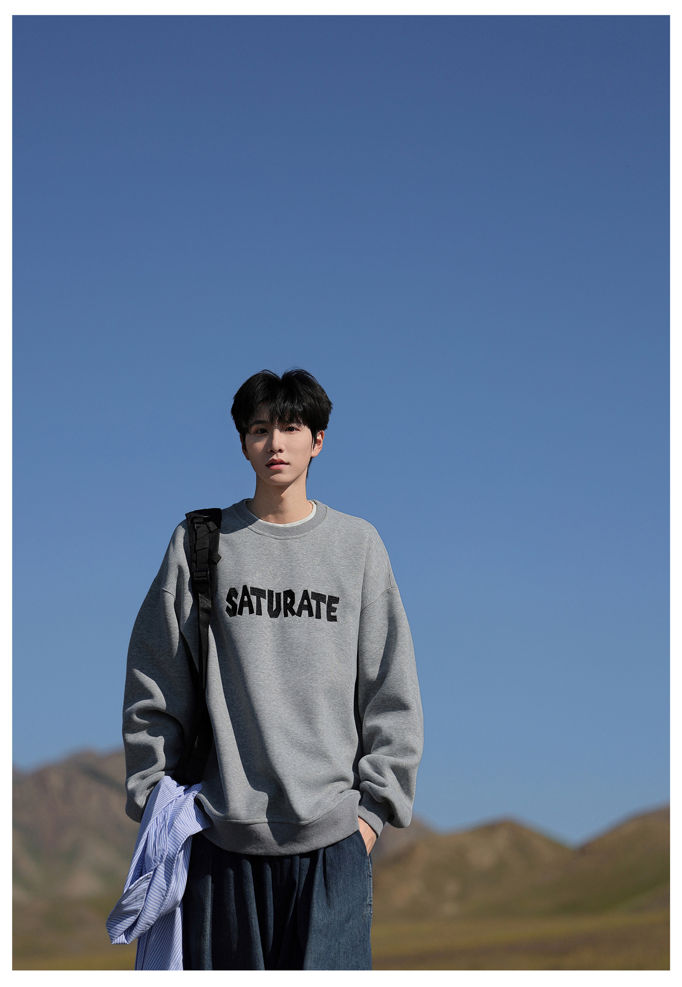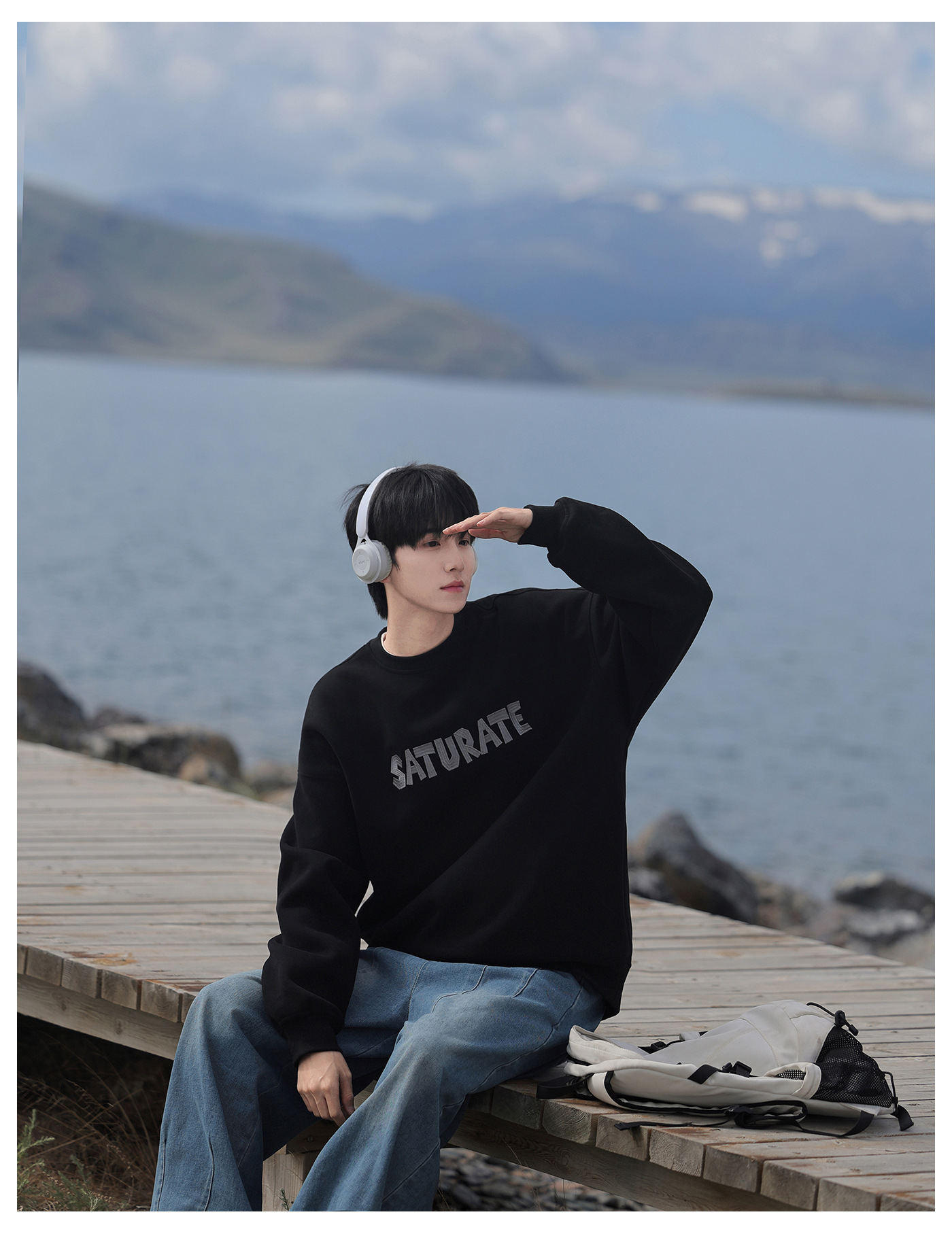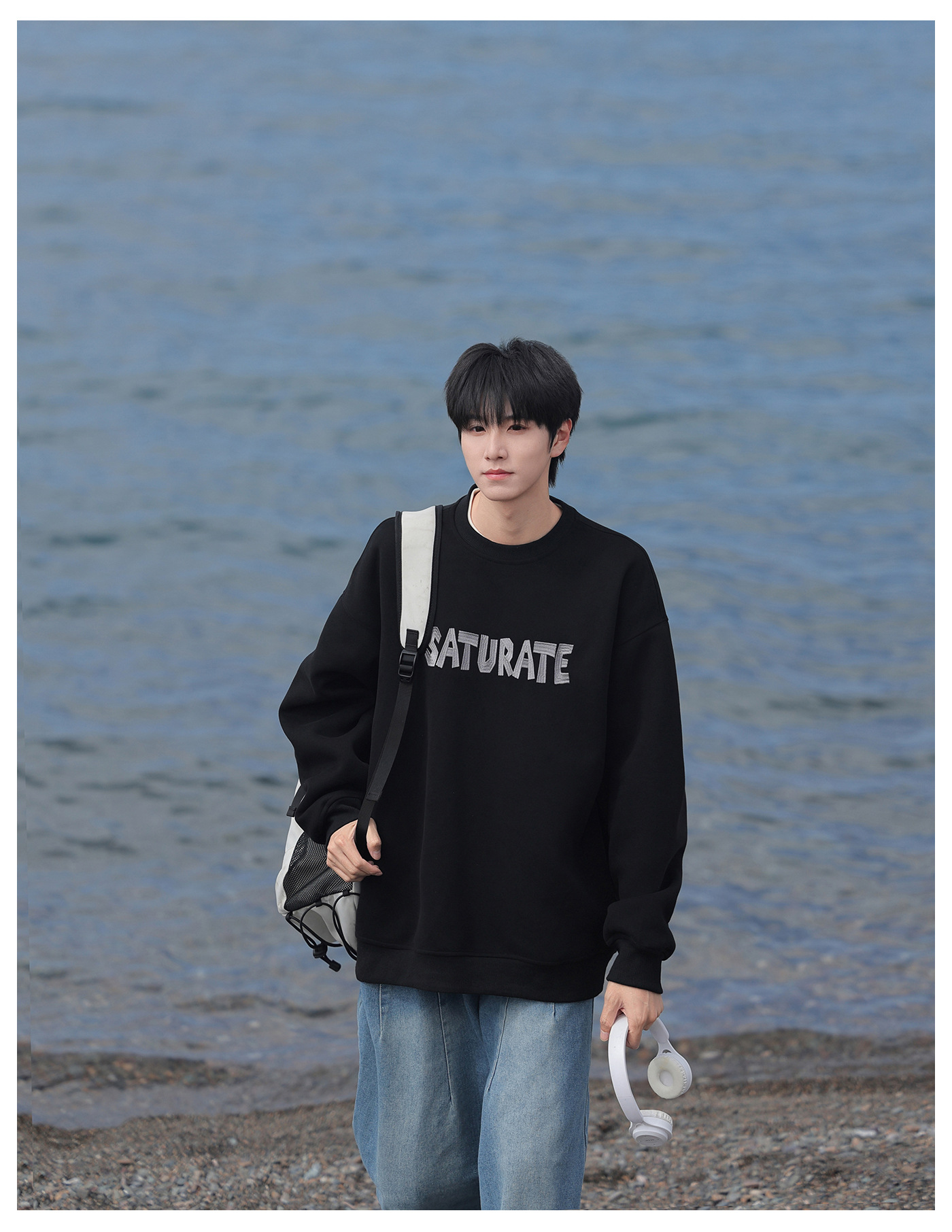 인쇄 된 250g 무거운 둥근 목 스웨터 남성용 이른 가을 기모 hoodless 느슨한 소년 청소년 풀오버 재킷