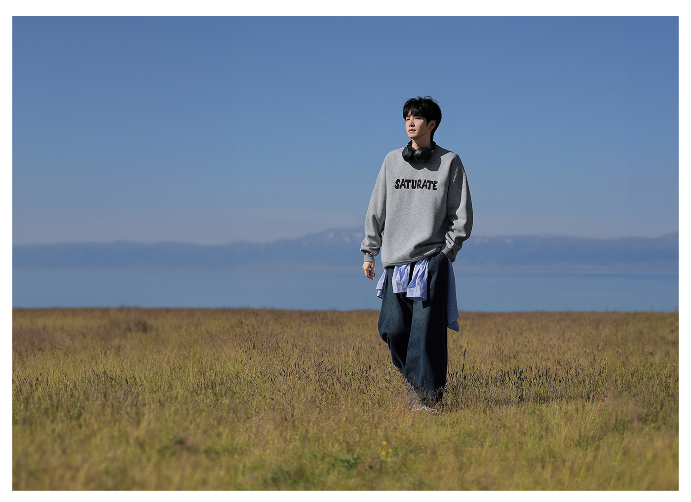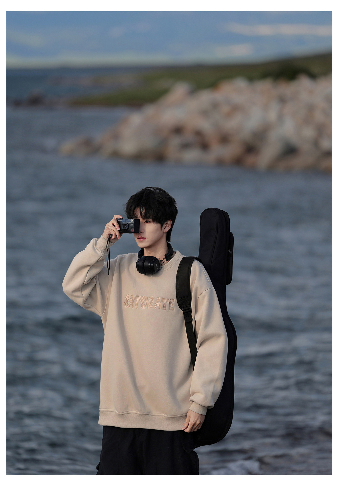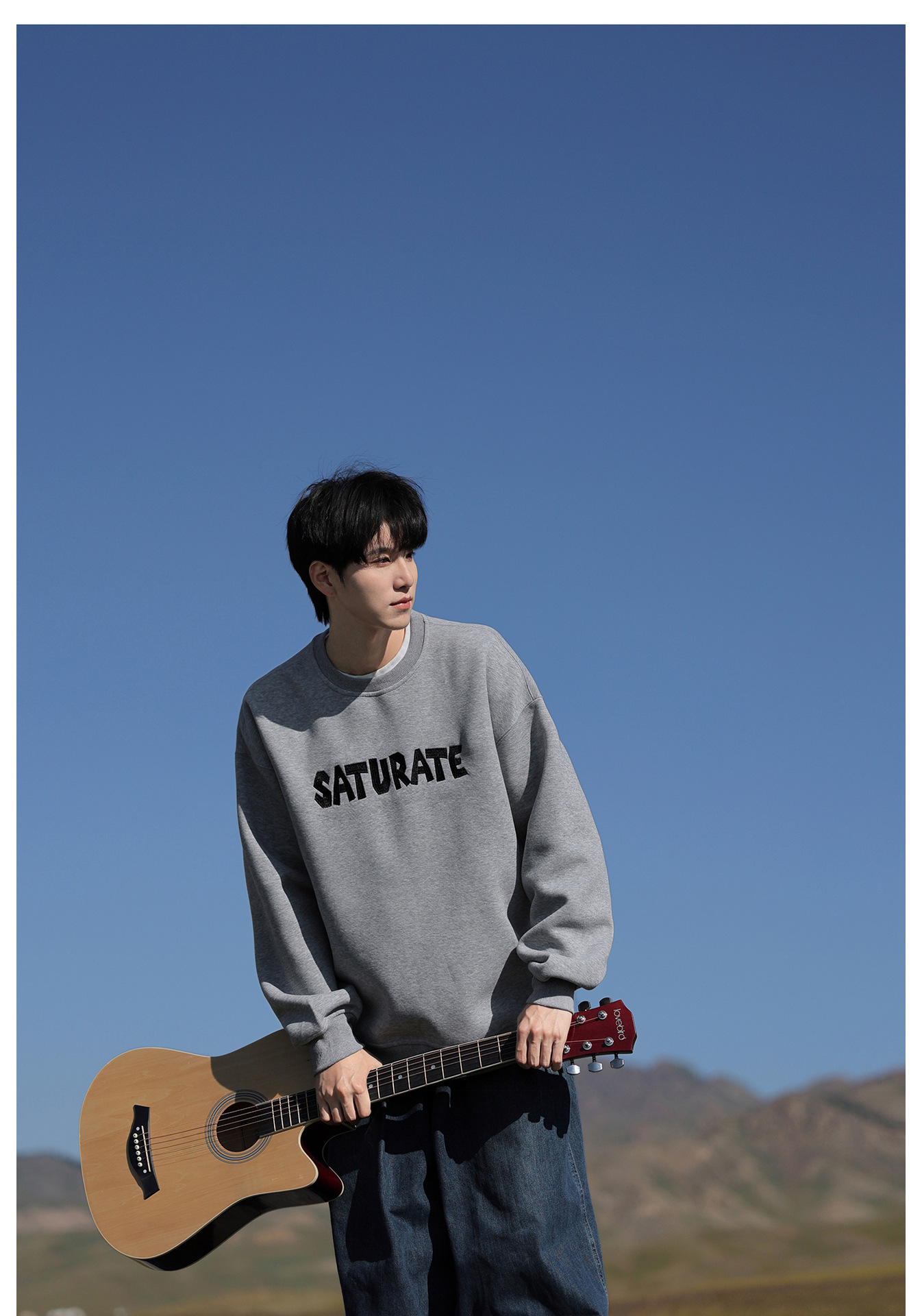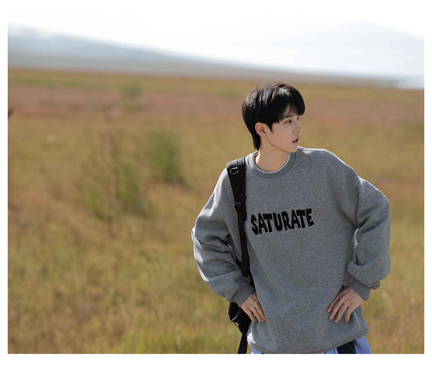인쇄 된 250g 무거운 둥근 목 스웨터 남성용 이른 가을 기모 hoodless 느슨한 소년 청소년 풀오버 재킷