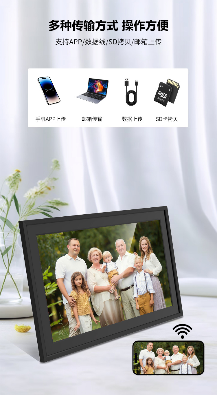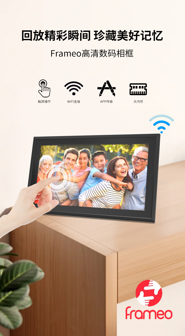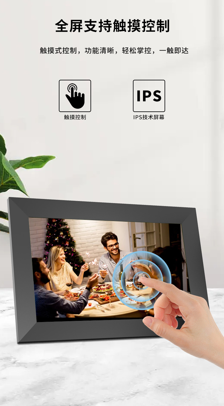 국경 10.1 인치 디지털 사진 프레임 와이파이 스마트 클라우드 사진 프레임 IPS 터치 좁은 측면 전자 사진 앨범 비디오 재생