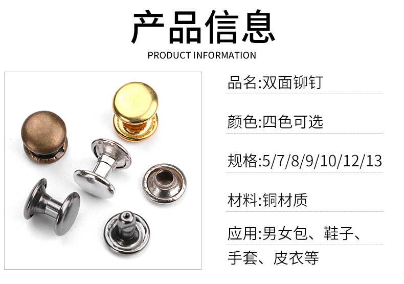 모든 구리 양면 리벳 작은 버튼 금속 고정 라운드 버튼 스냅 버클 벨트 가방 장식 신발 액세서리 모자 스터드