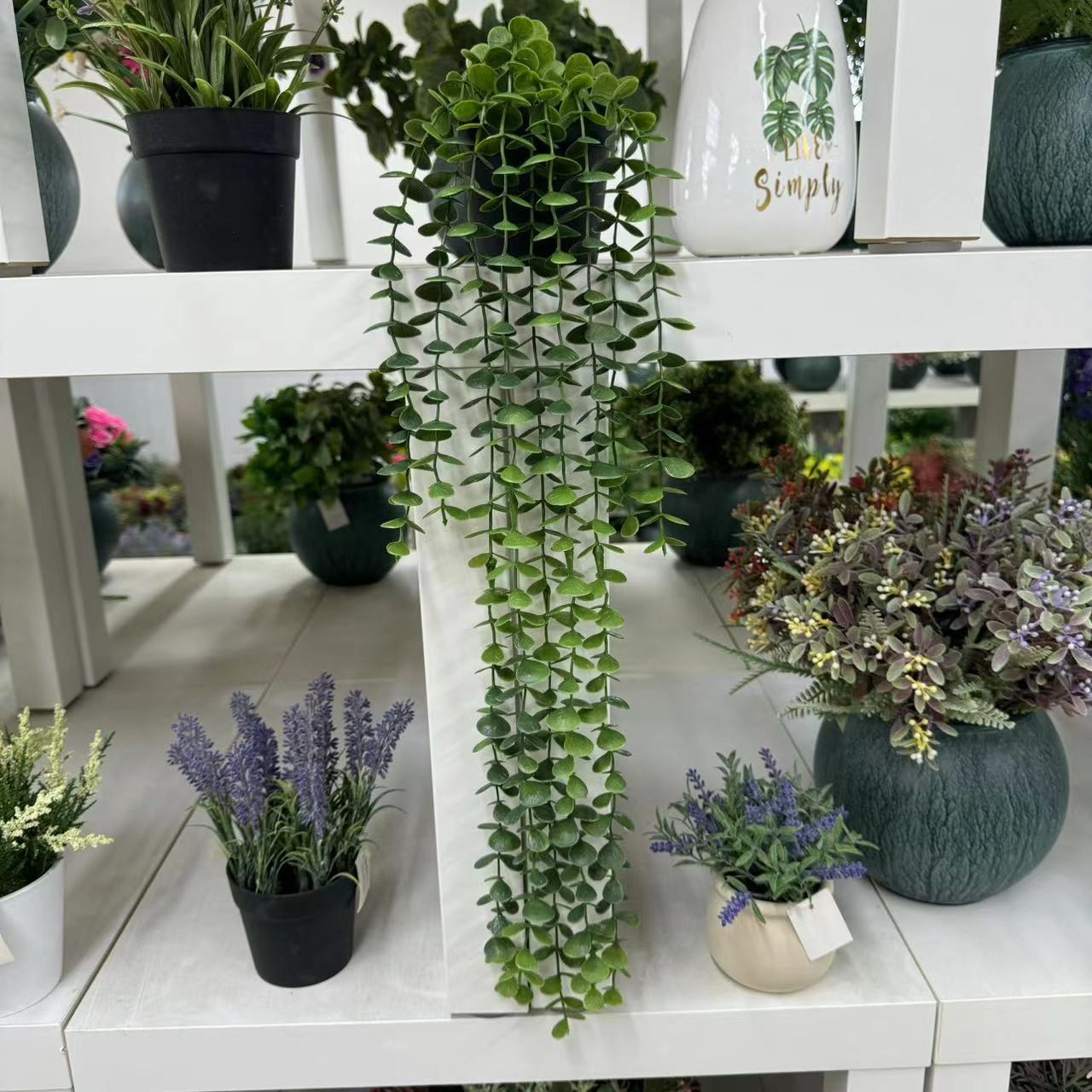 국경 간 시뮬레이션 화분 조합 유칼립투스 분재 녹색 식물 교수형 스트립 서리 검은 분지 장식 교수형 화분스토어 가기