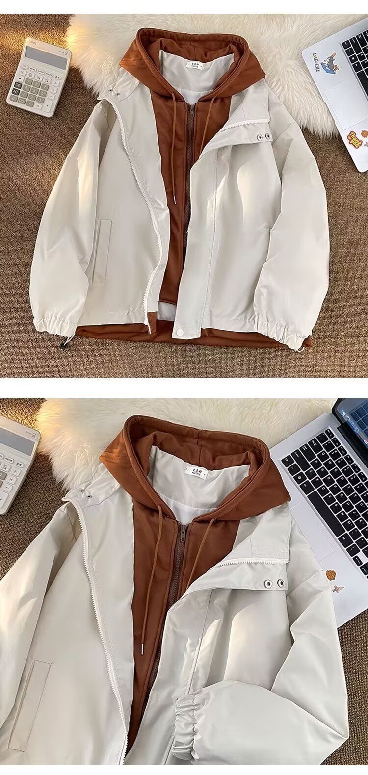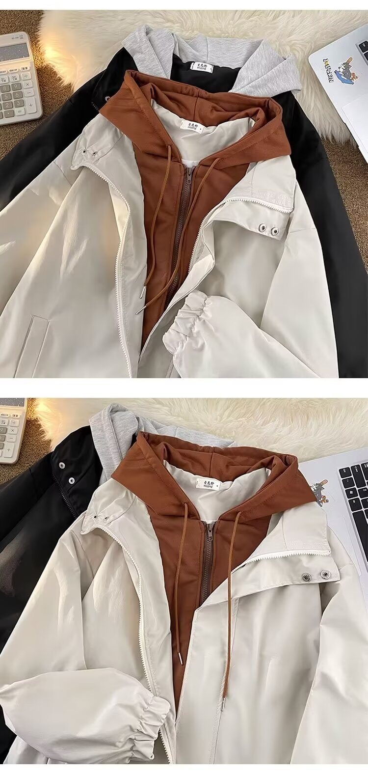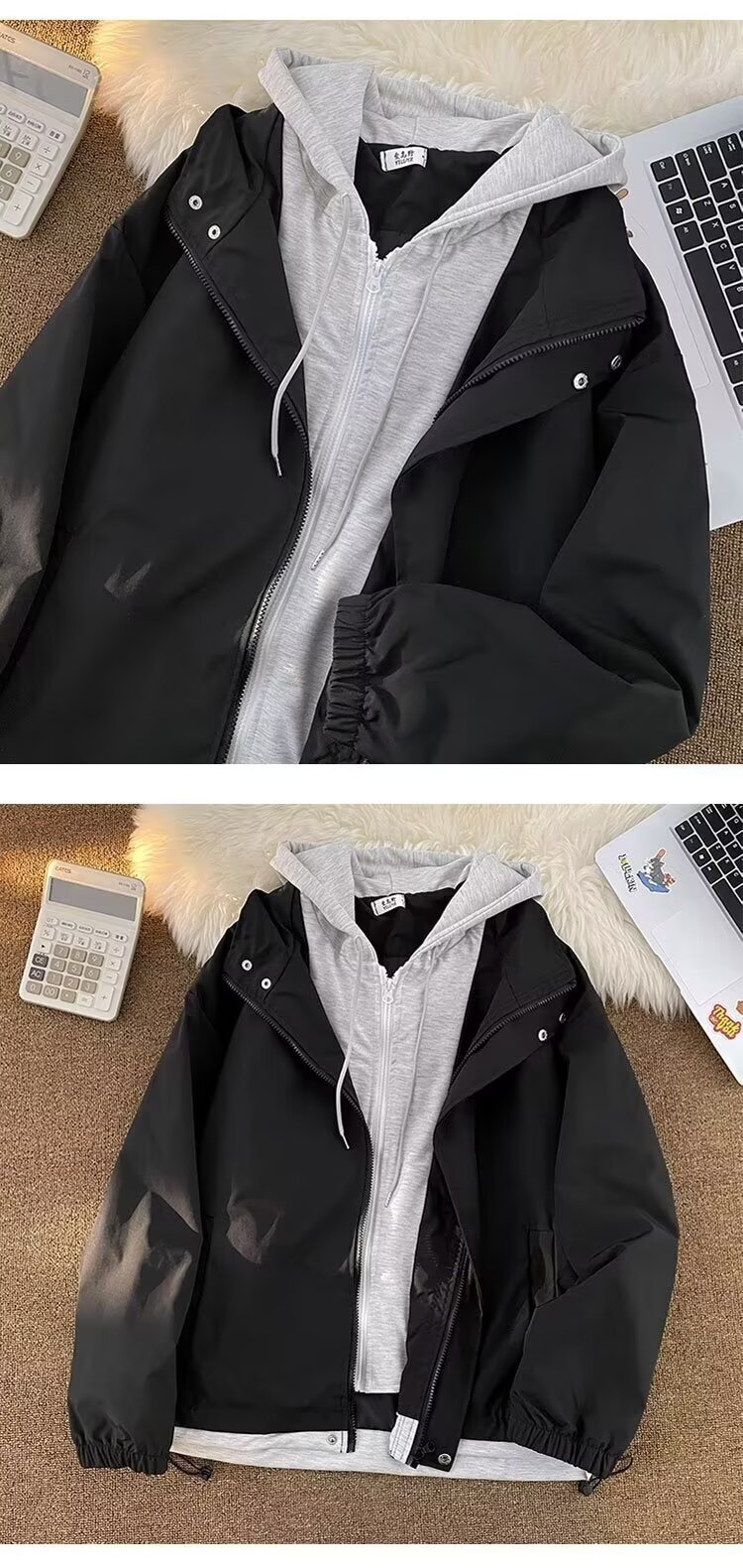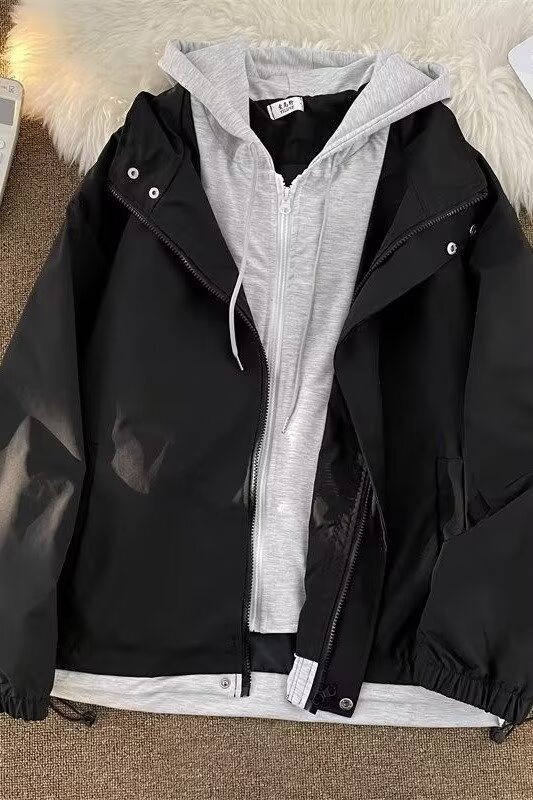 긴 소매 표준 러시 옷 가을 2024 새로운 패션 가짜 투피스 후드 재킷 작업 코트 재킷스토어 가기