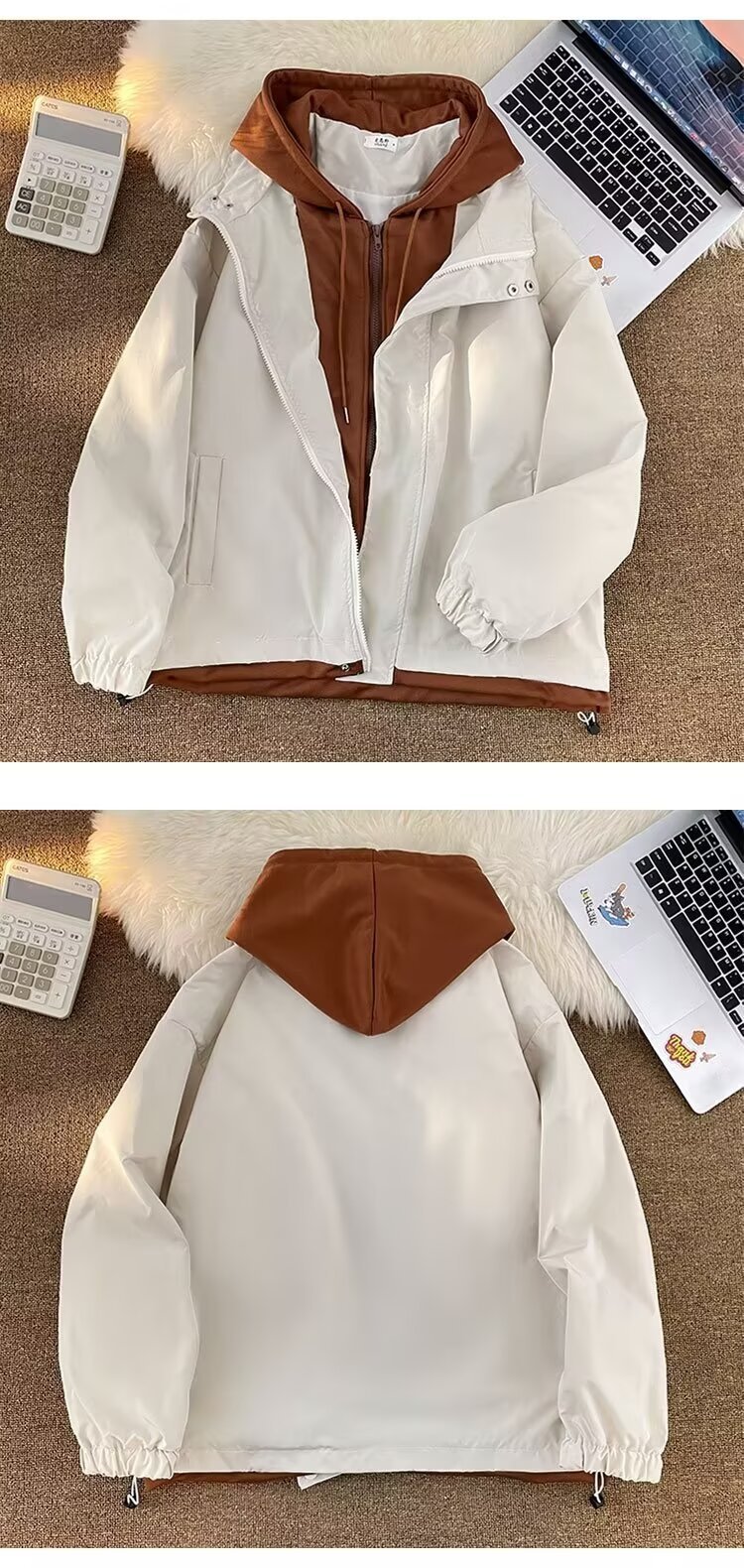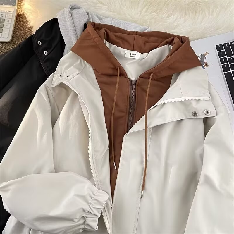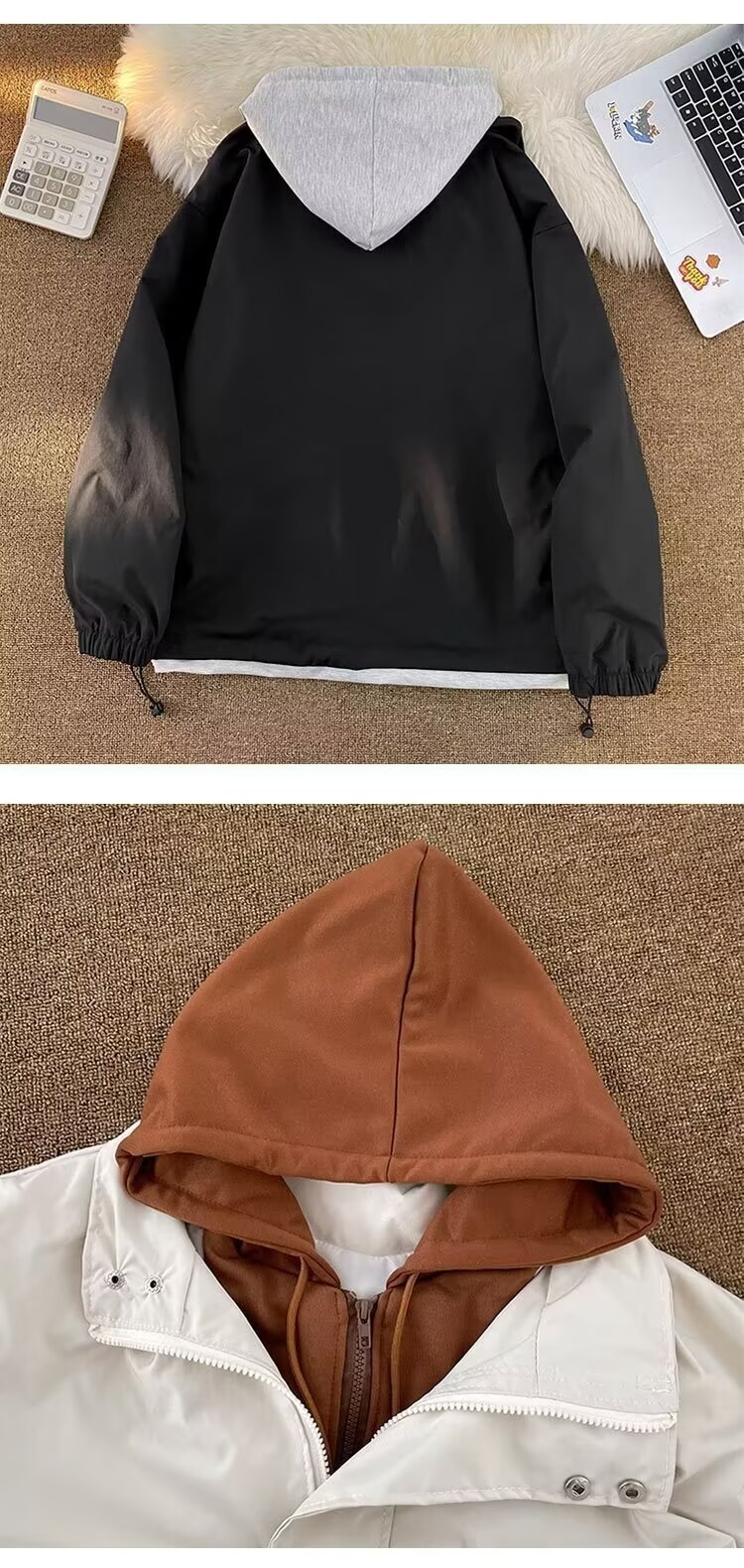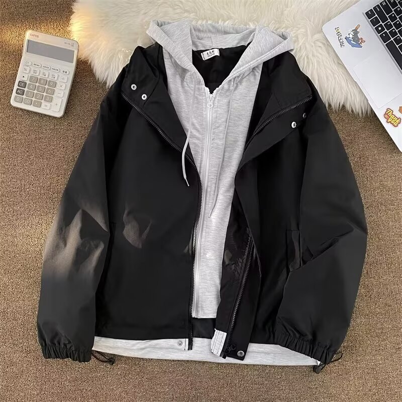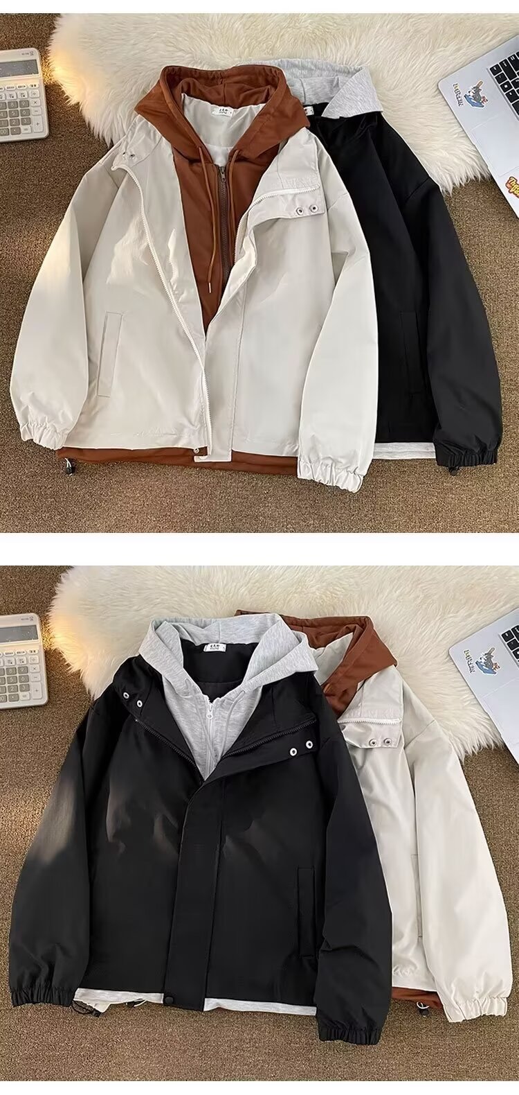 긴 소매 표준 러시 옷 가을 2024 새로운 패션 가짜 투피스 후드 재킷 작업 코트 재킷스토어 가기