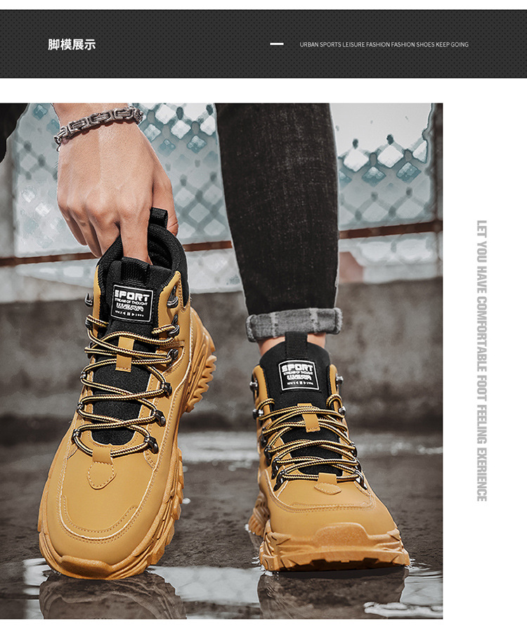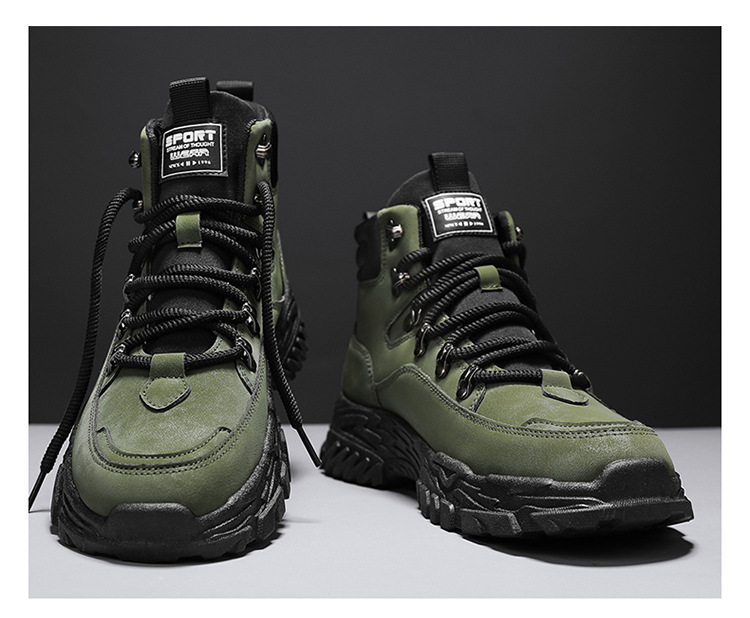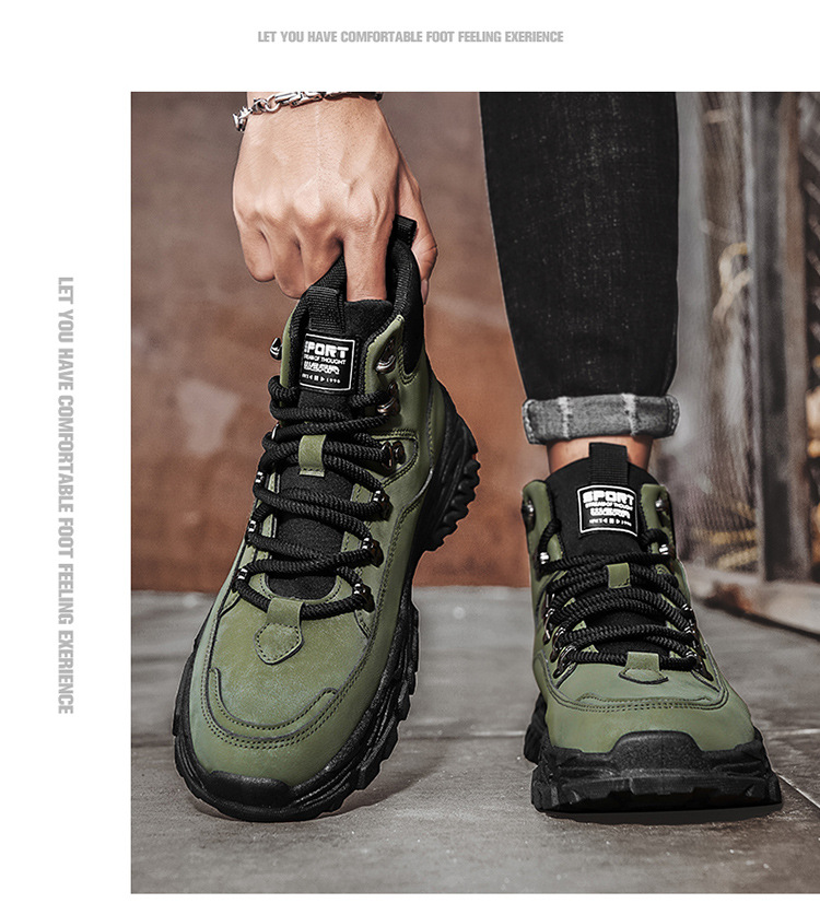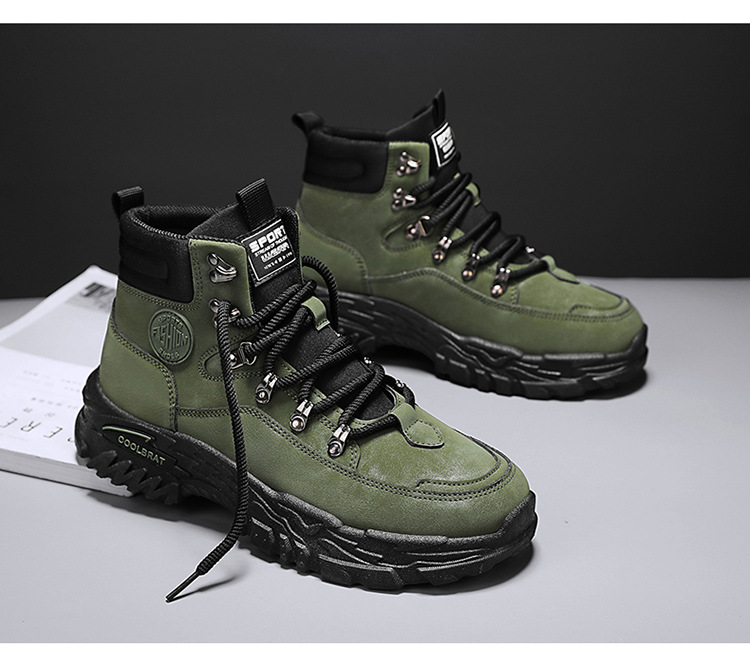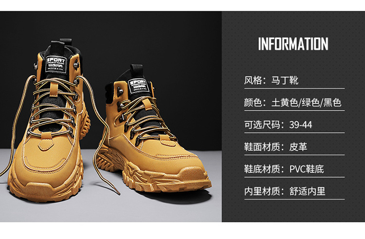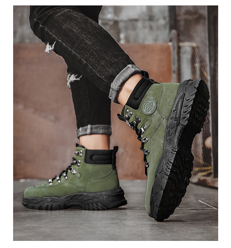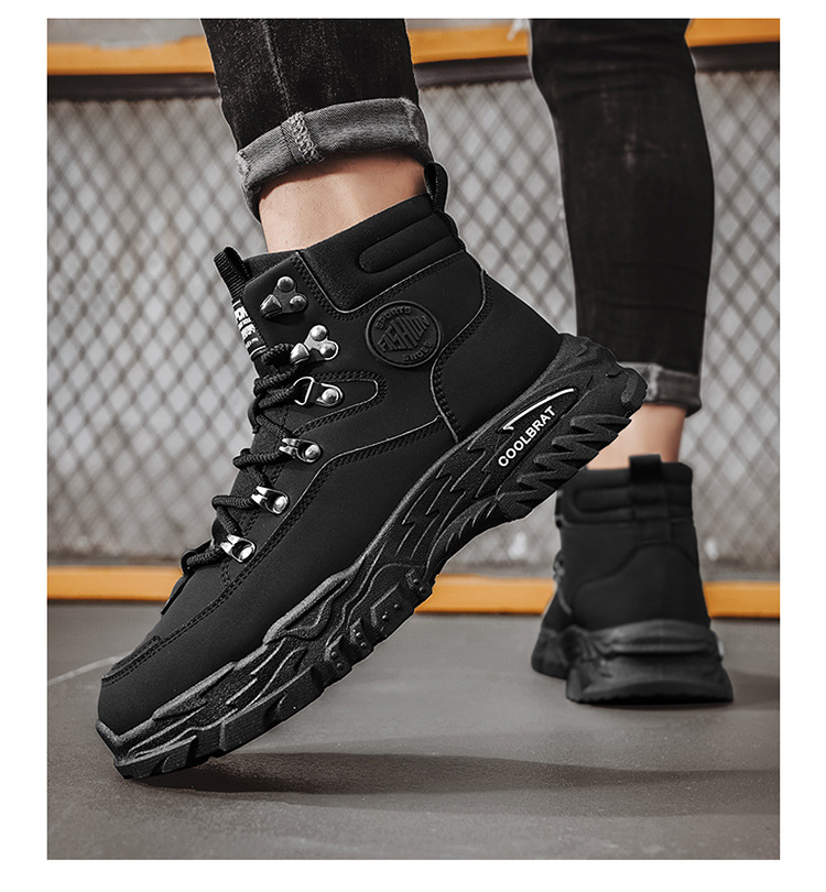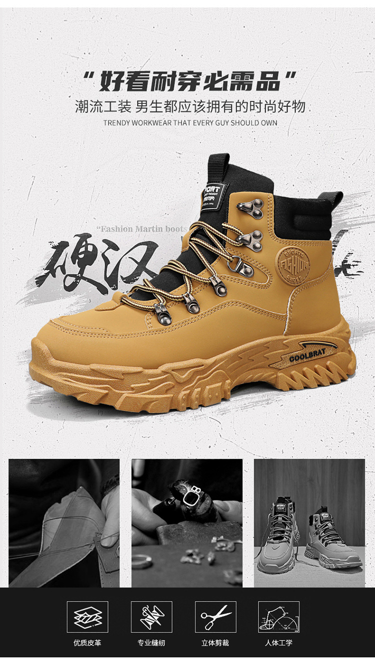 남성용 하이 탑 신발 가을 새로운 미끄럼 방지 작업복 신발 캐주얼 마틴 부츠 남성 야외 스포츠 하이킹 부츠