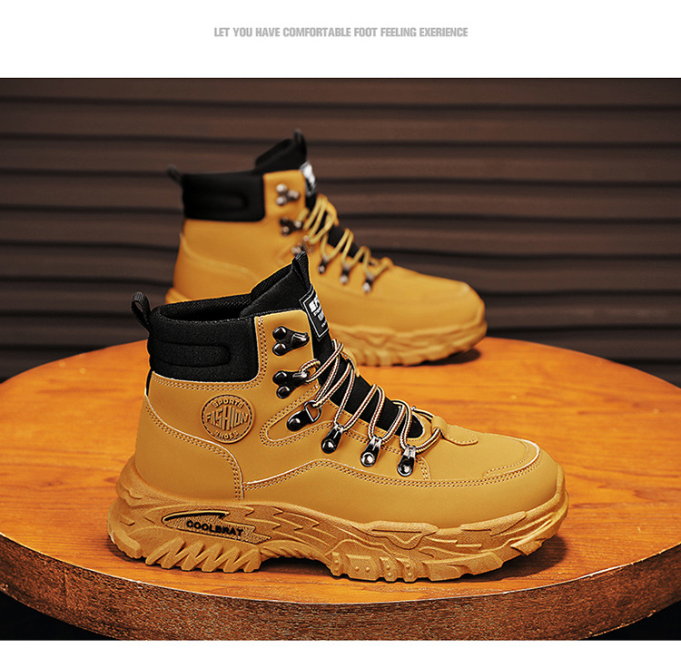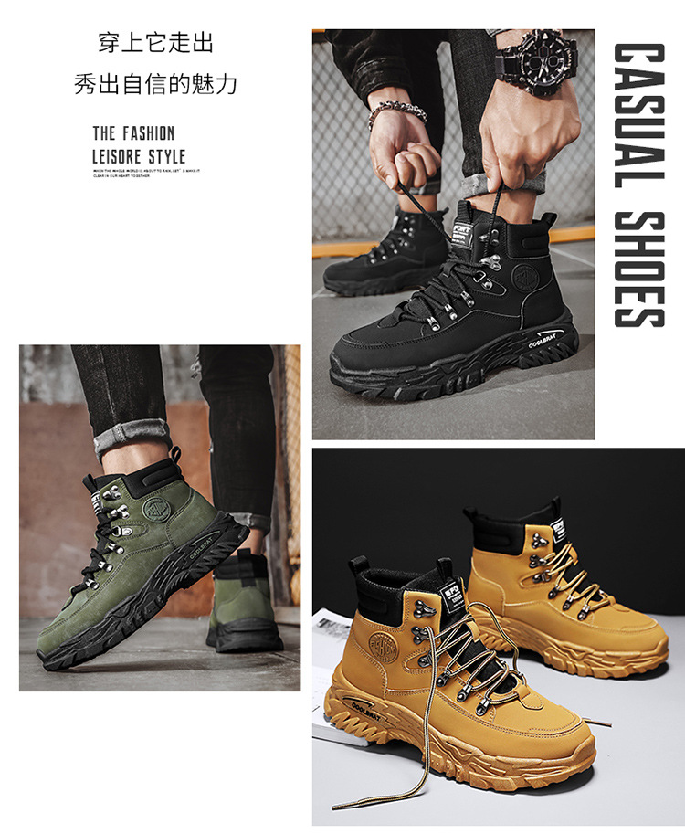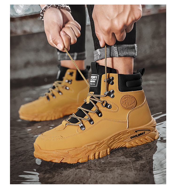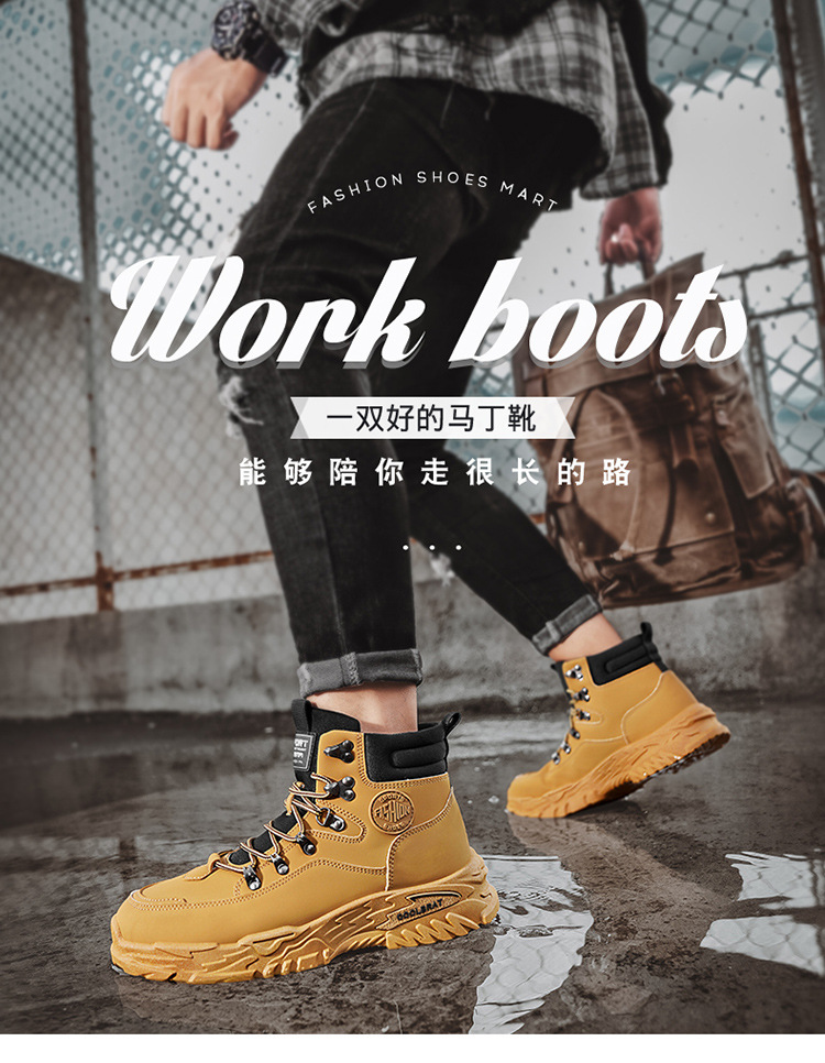 남성용 하이 탑 신발 가을 새로운 미끄럼 방지 작업복 신발 캐주얼 마틴 부츠 남성 야외 스포츠 하이킹 부츠스토어 가기