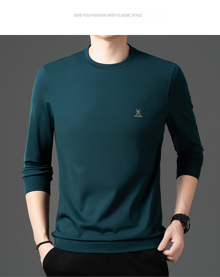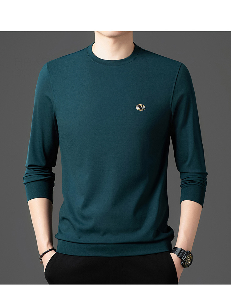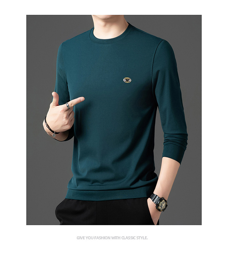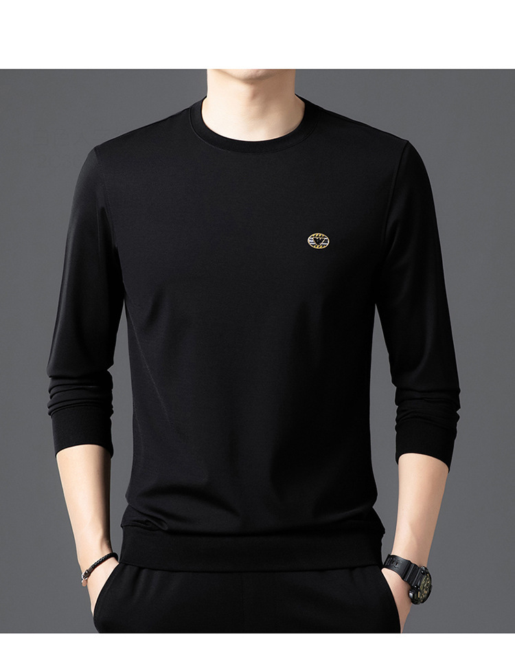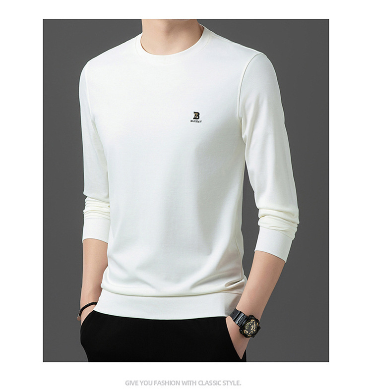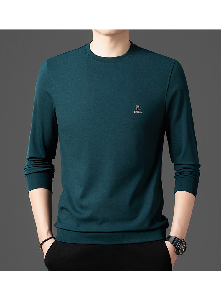 남자 티셔츠 크루 넥 가을 고급 캐주얼 올 매치베이스 셔츠 남자 긴팔 유행 스웨터 부티크 남성 의류