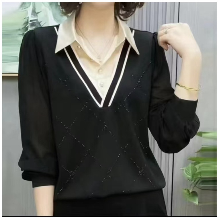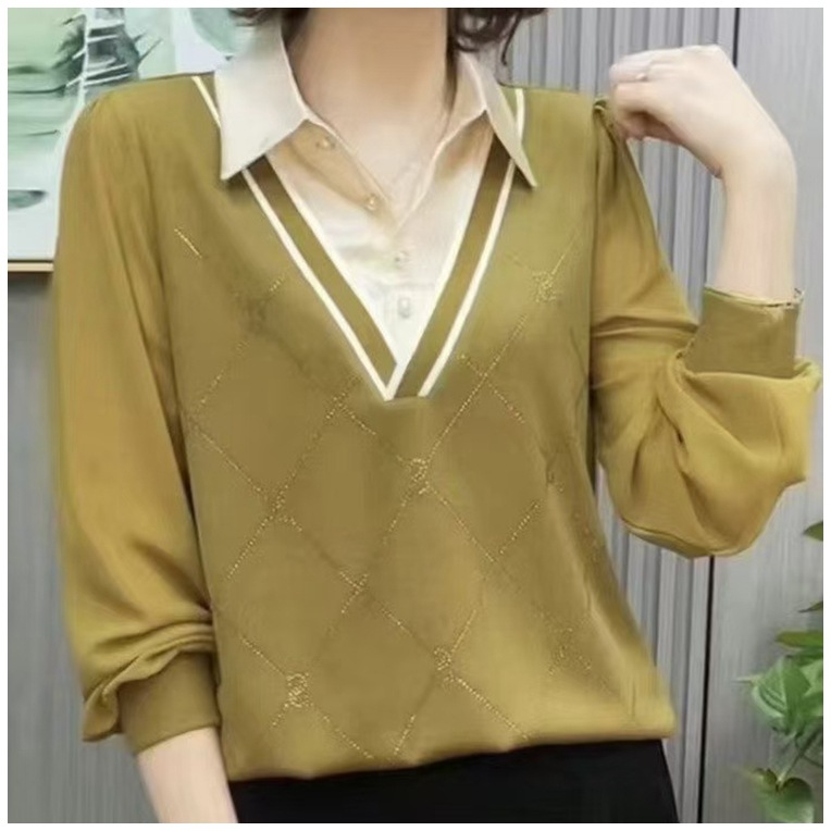 어머니의 패션 서양식 긴 소매 탑 작은 셔츠 가을 2024 어린이 플러스 사이즈 슬림 탄성베이스 셔츠스토어 가기