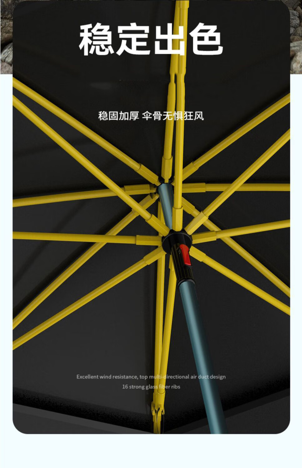 Jiazhi 낚시 우산 지팡이 낚시 우산 매화 꽃 가장자리 새로운 야외 검은 고무 우산 비바람 방지 검은 고무 햇빛스토어 가기