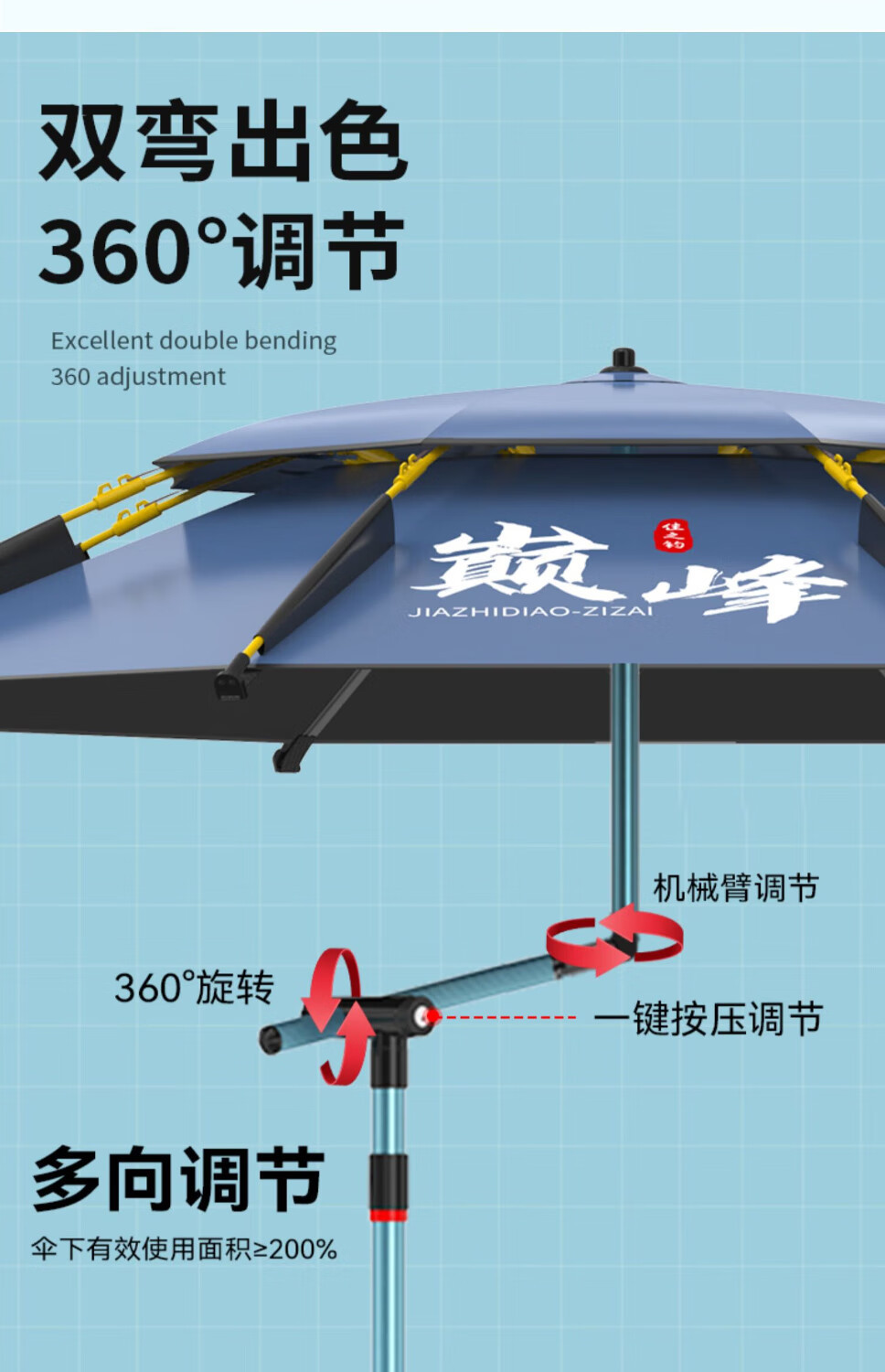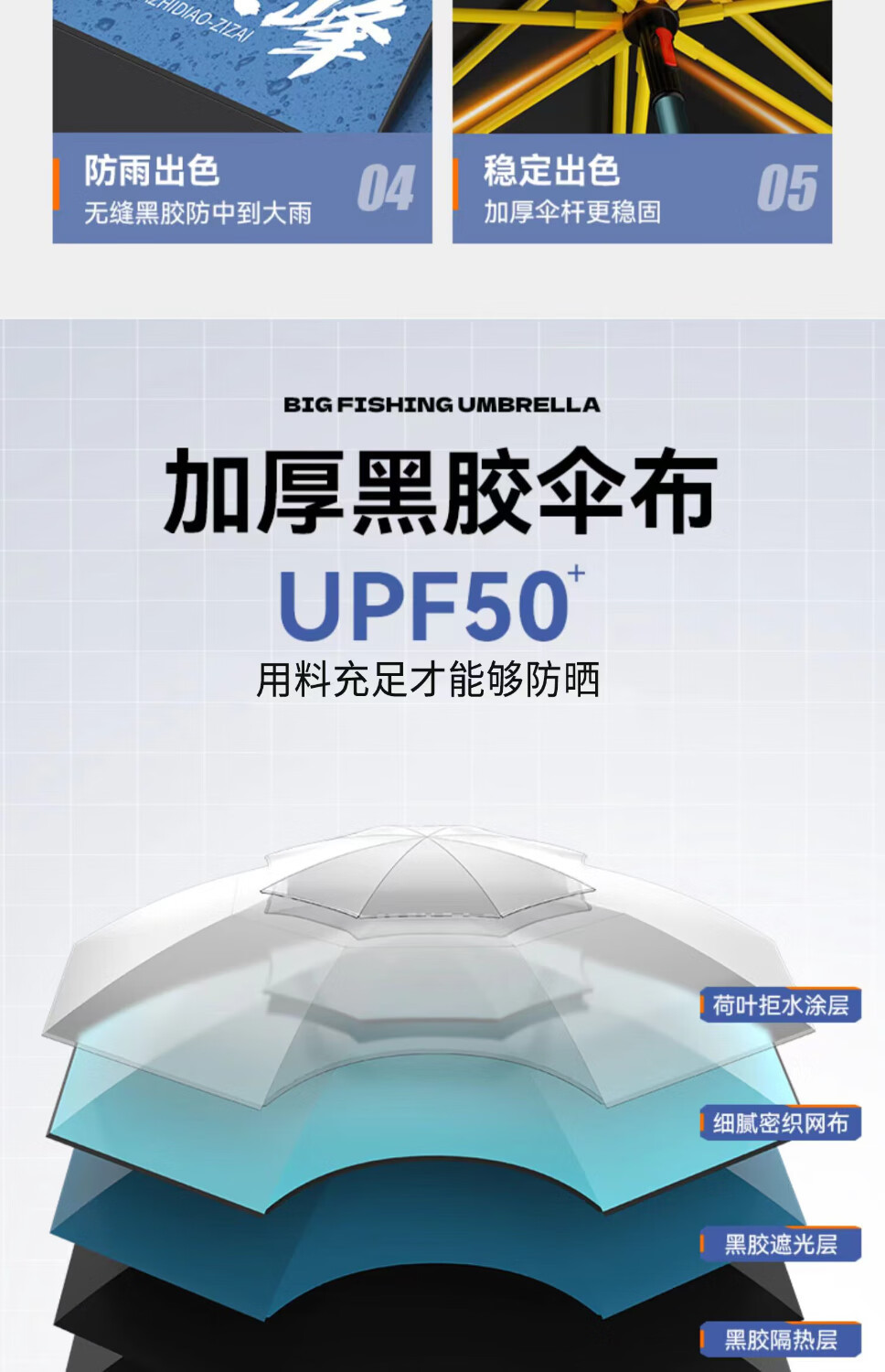 Jiazhi 낚시 우산 지팡이 낚시 우산 매화 꽃 가장자리 새로운 야외 검은 고무 우산 비바람 방지 검은 고무 햇빛