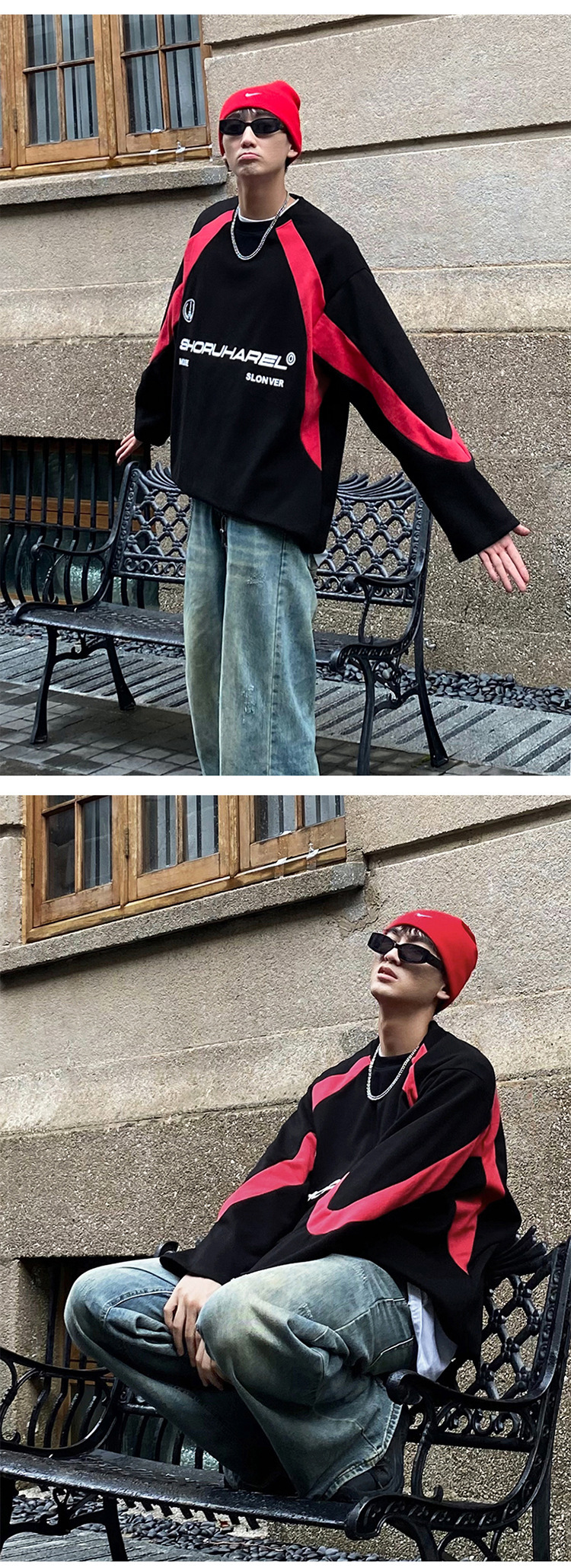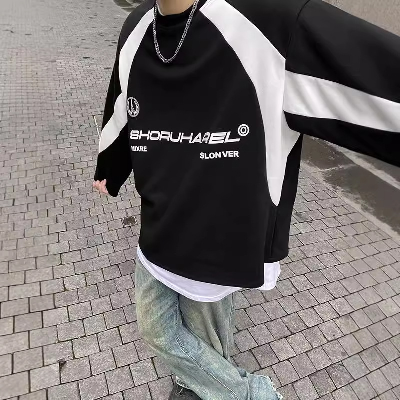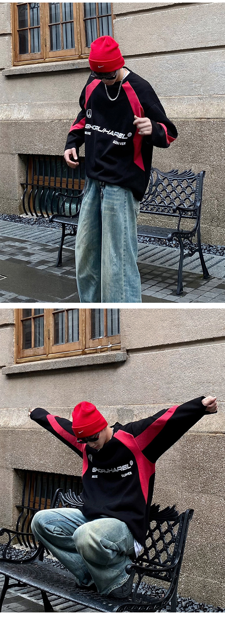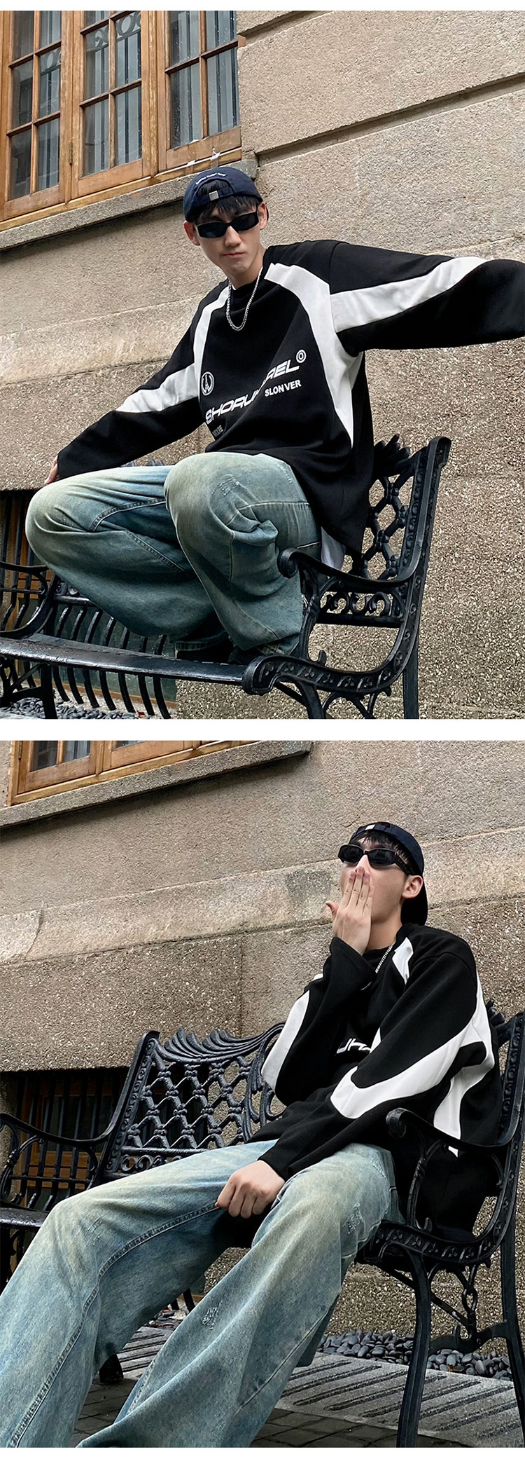 스웨트 셔츠 남자 2024 새로운 봄과 가을 미국 스타일 하이 스트리트 헤비 웨이트 루즈 캐주얼 오토바이 자켓스토어 가기