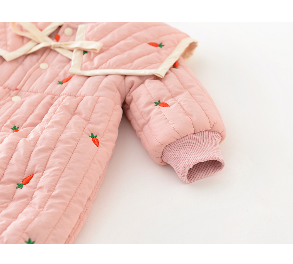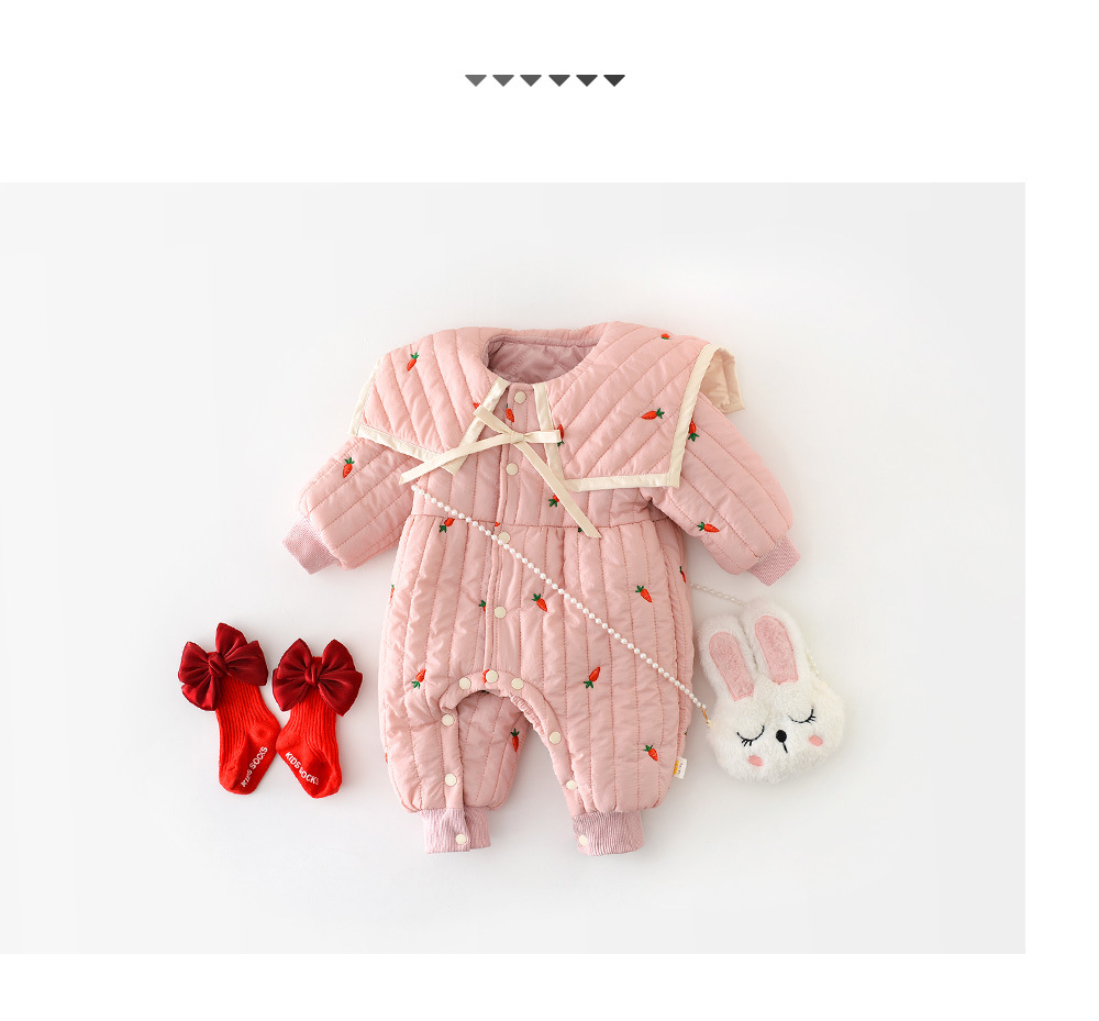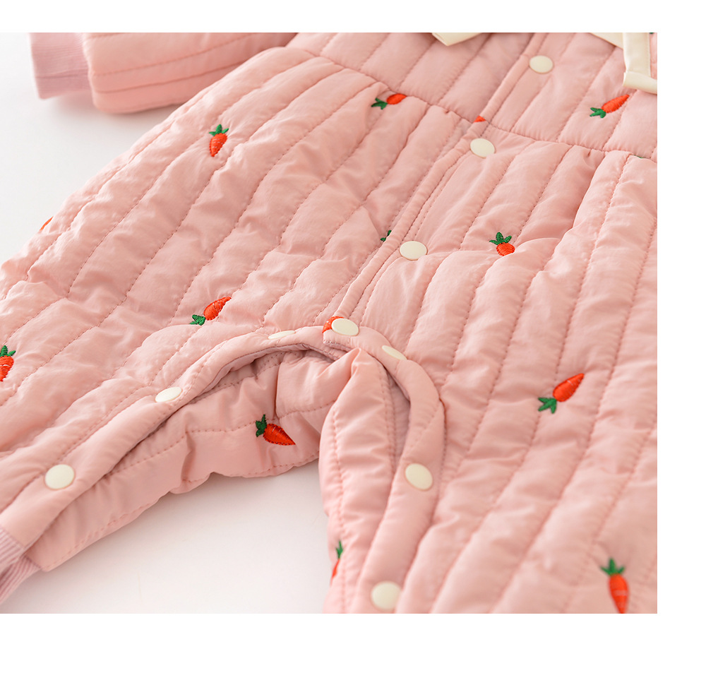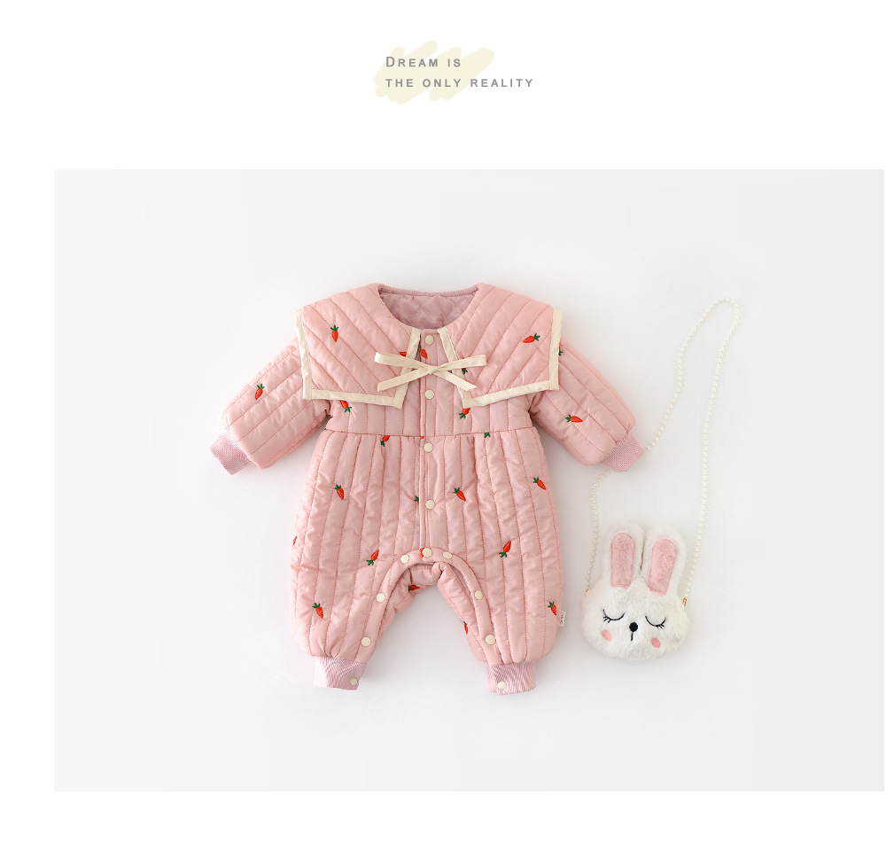 新生儿手塞棉长爬婴儿秋冬季连体衣爬服女宝甜美加绒外出保暖棉袄