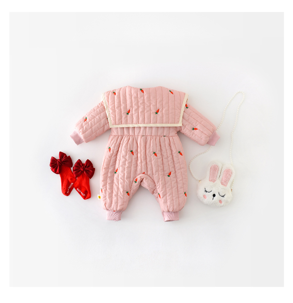 여아 겨울 점프수트 어린이용 달콤한 대형 칼라 퀼트 면 보온 아기 롬퍼 액세서리 포함 95670